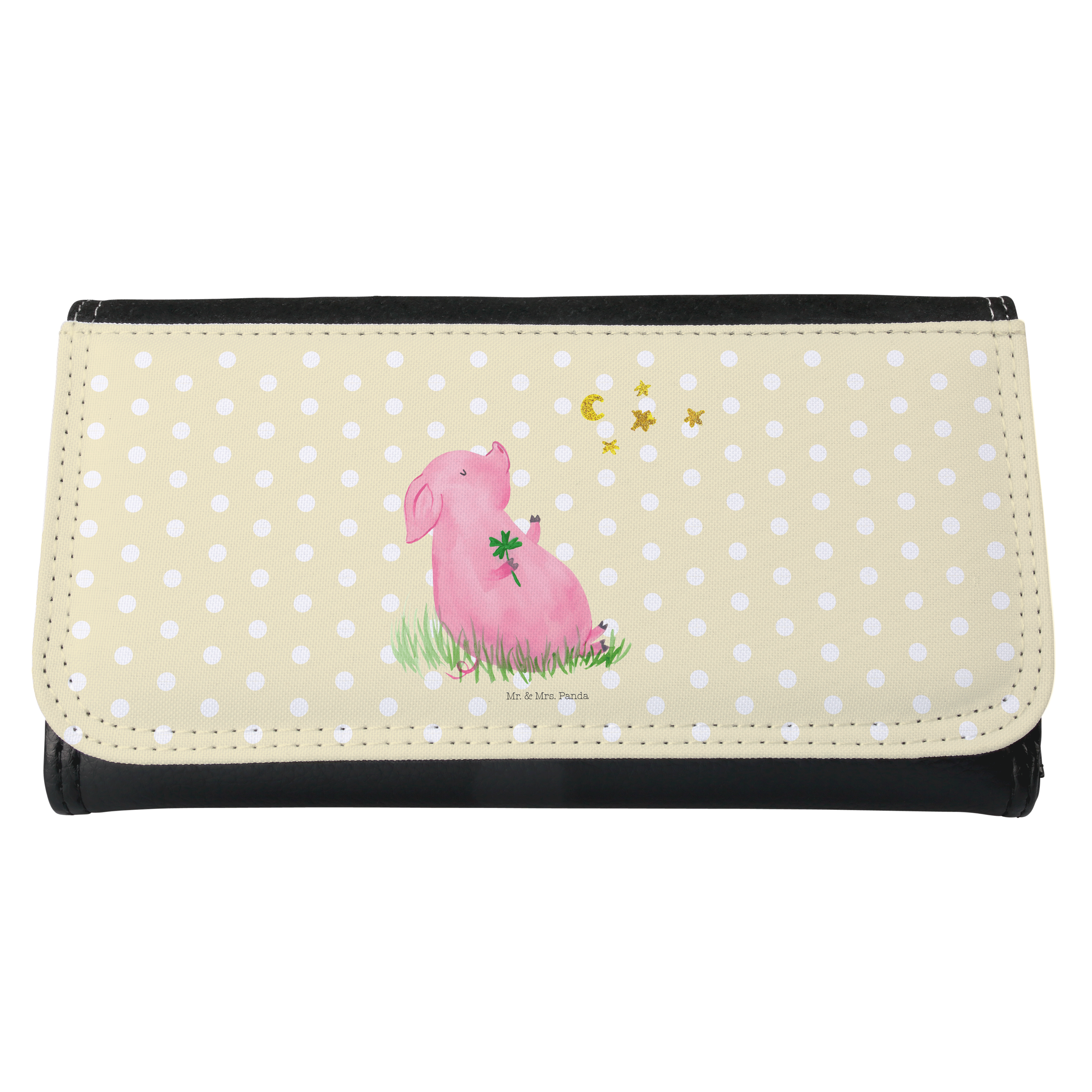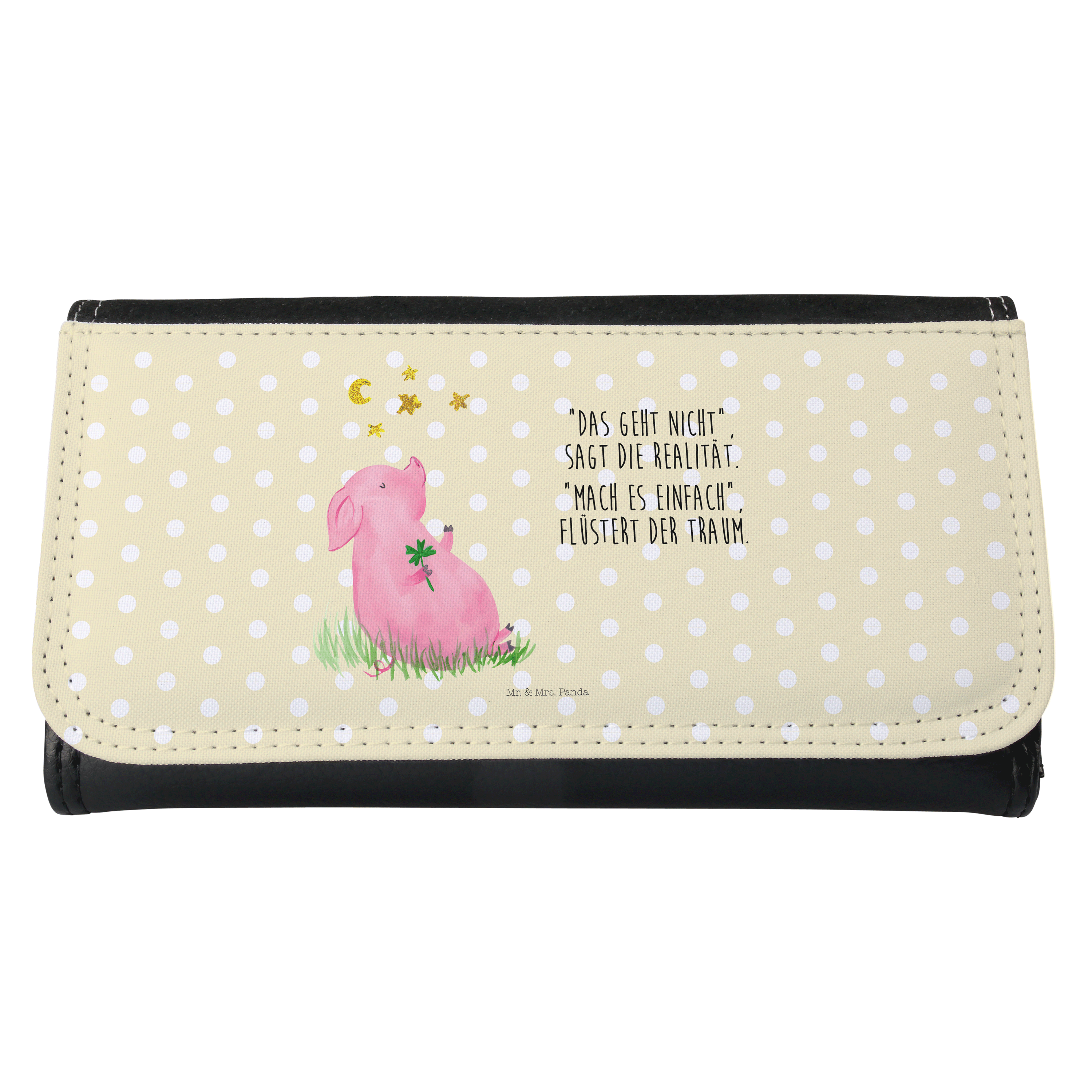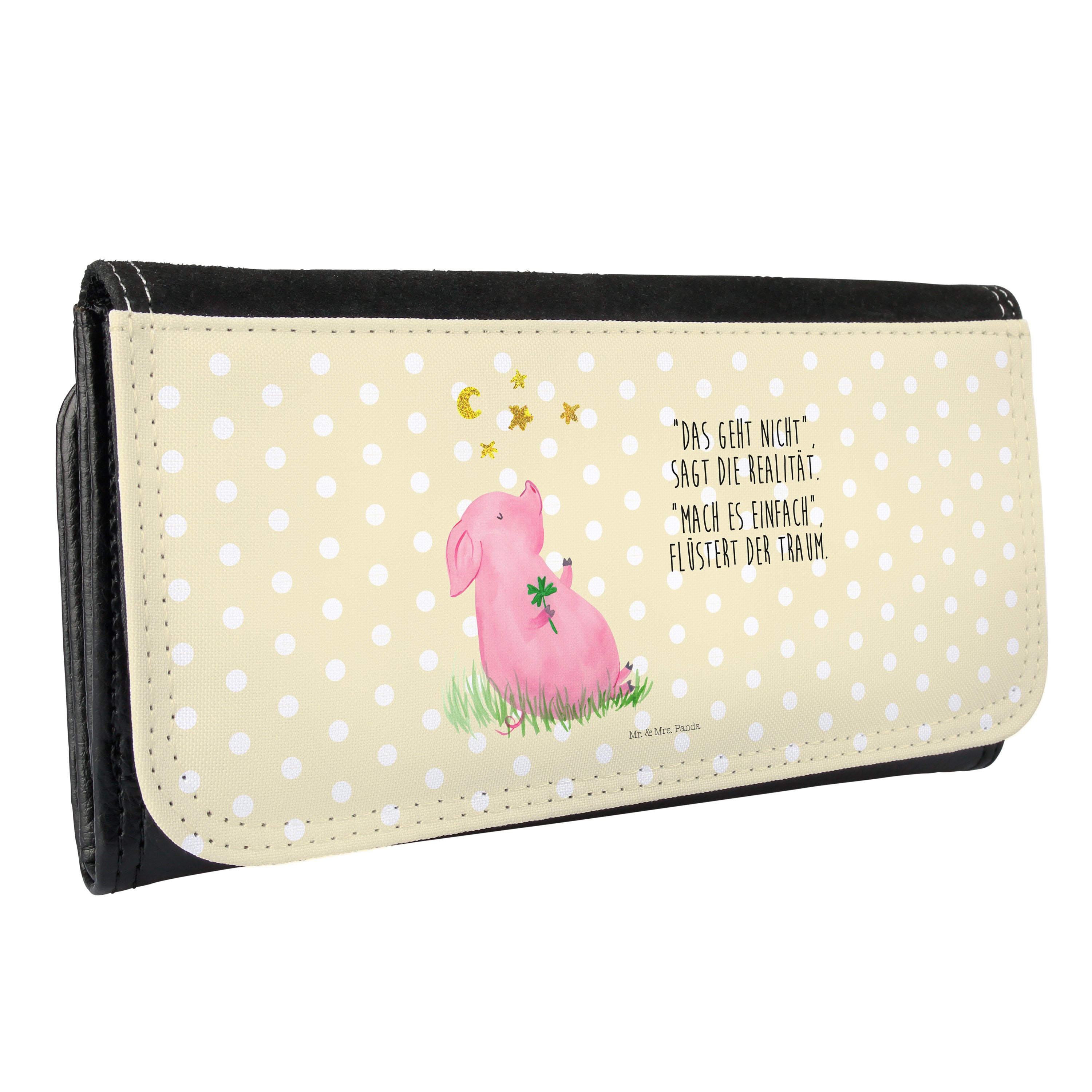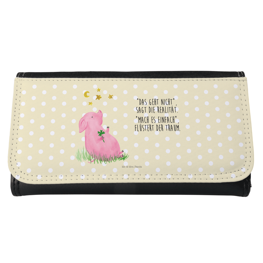 Damen Portemonnaie Glücksschwein - mit Spruch - Gelb Pastell