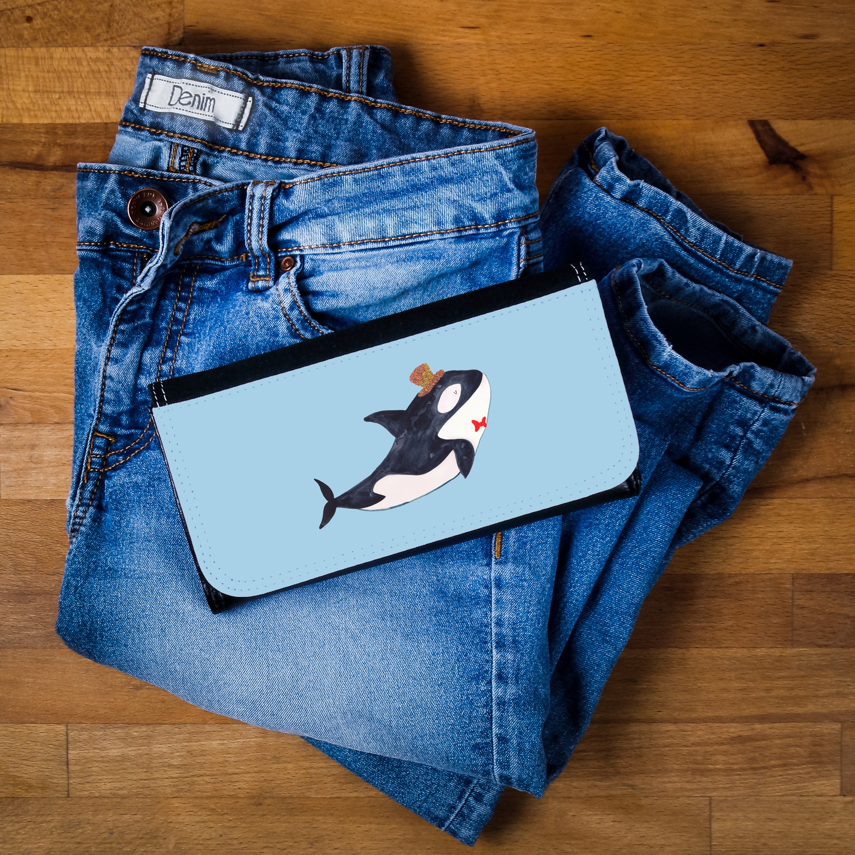 Damen Portemonnaie Orca Zylinder - mit Spruch - Blau Pastell