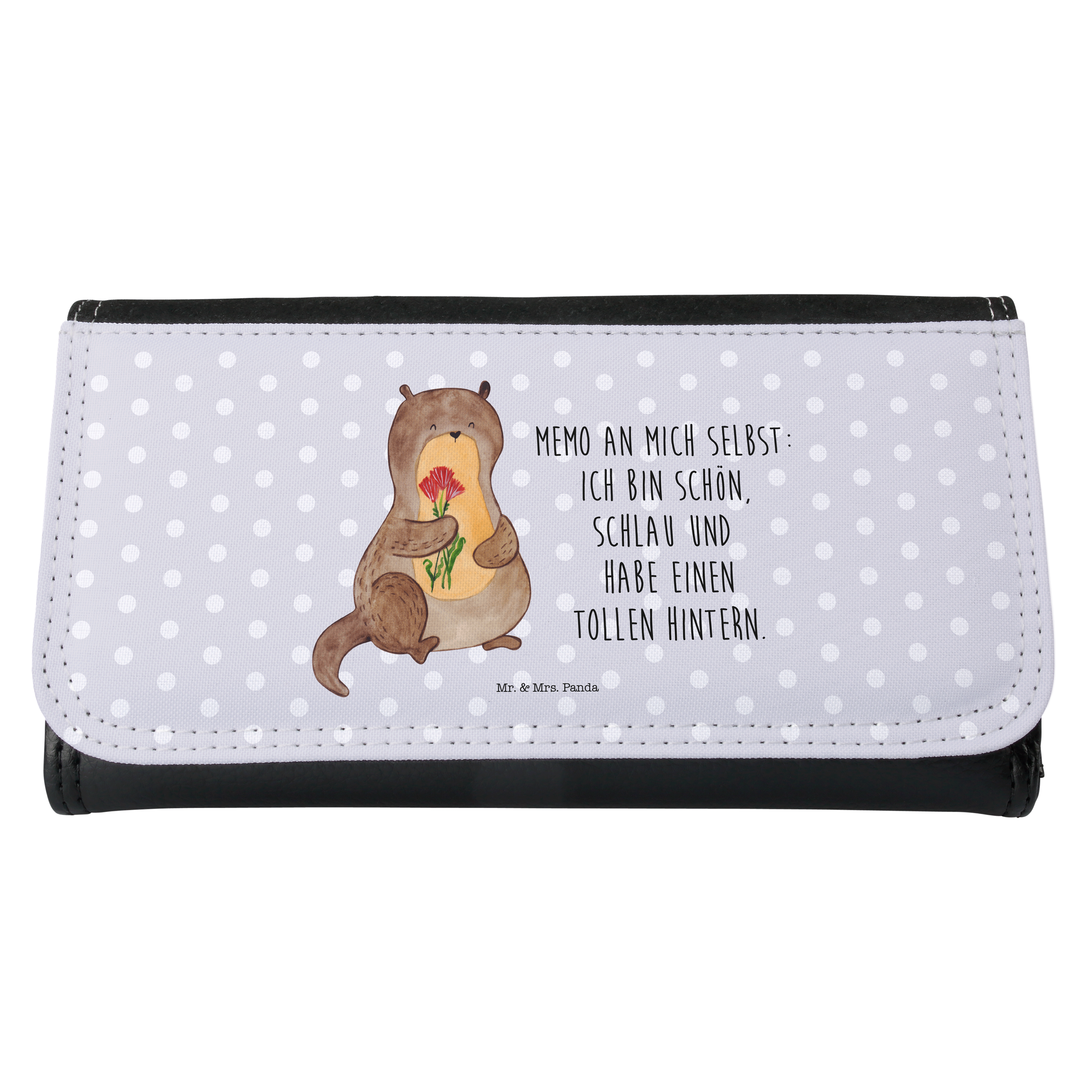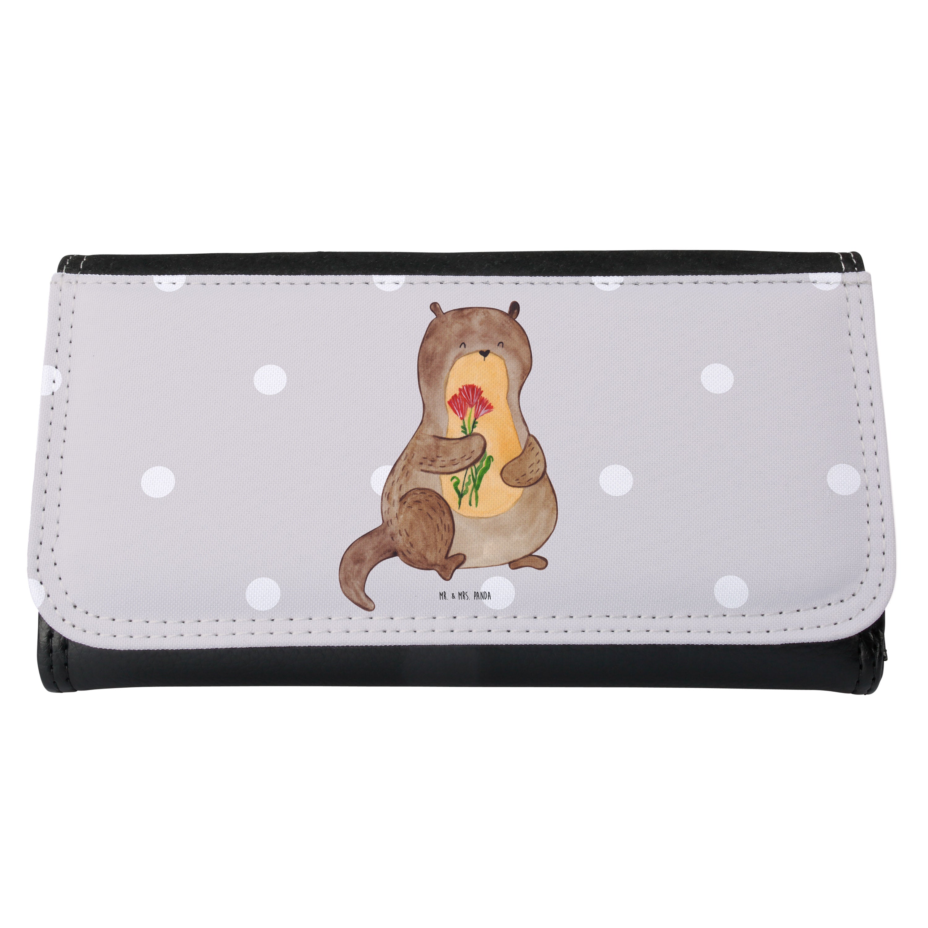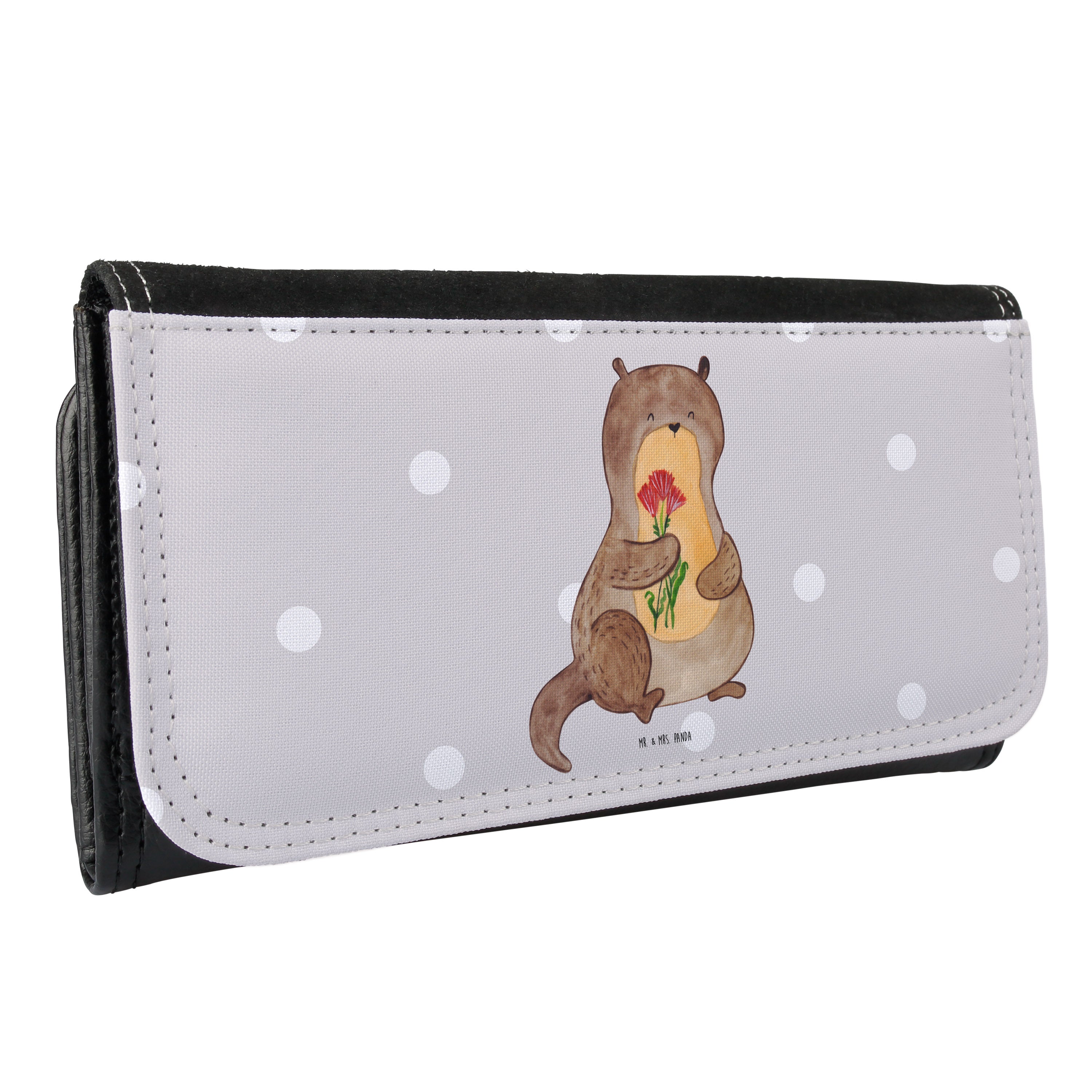 Damen Portemonnaie Otter Blumenstrauß - mit Spruch - Grau Pastell