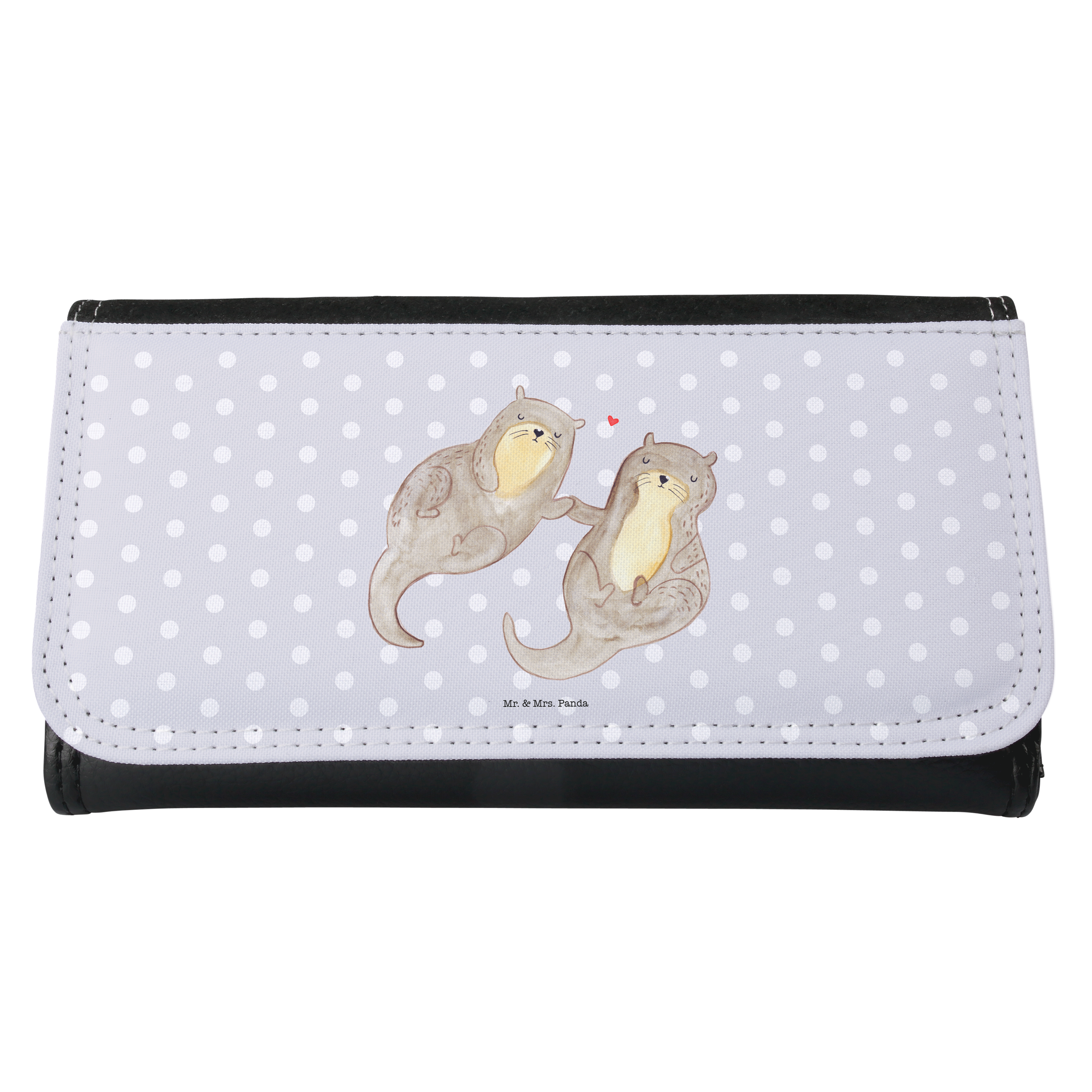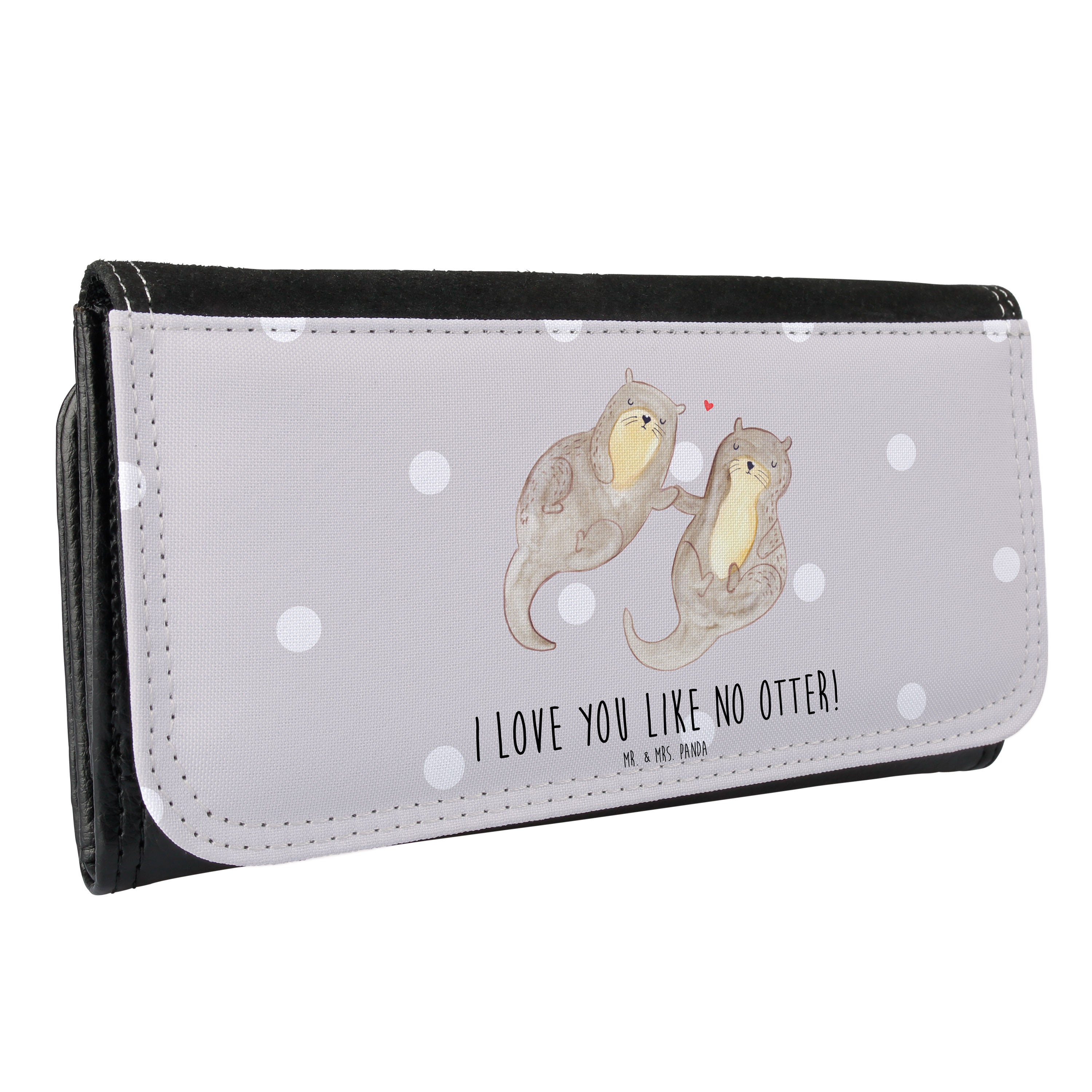 Damen Portemonnaie Otter händchenhaltend - mit Spruch - Grau Pastell