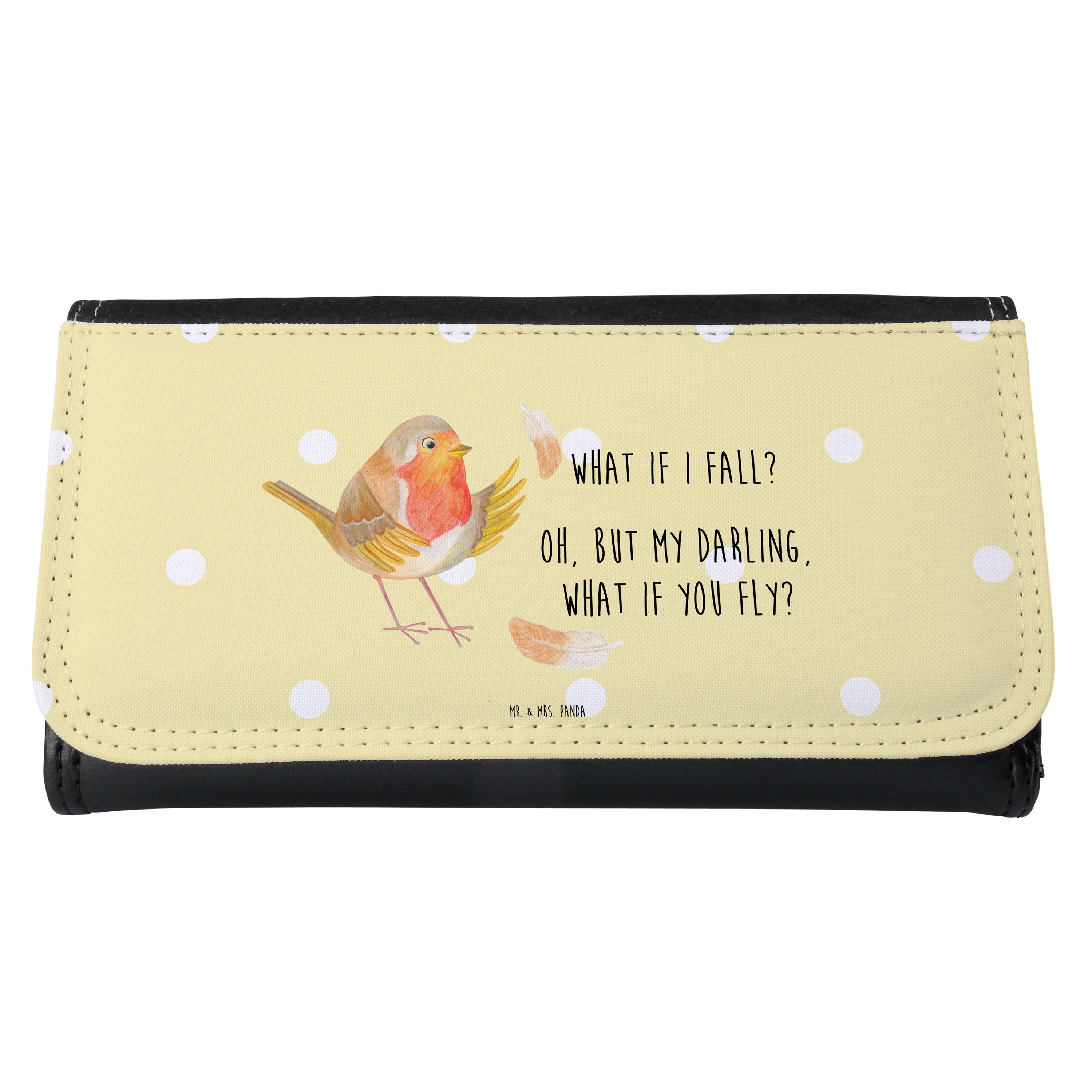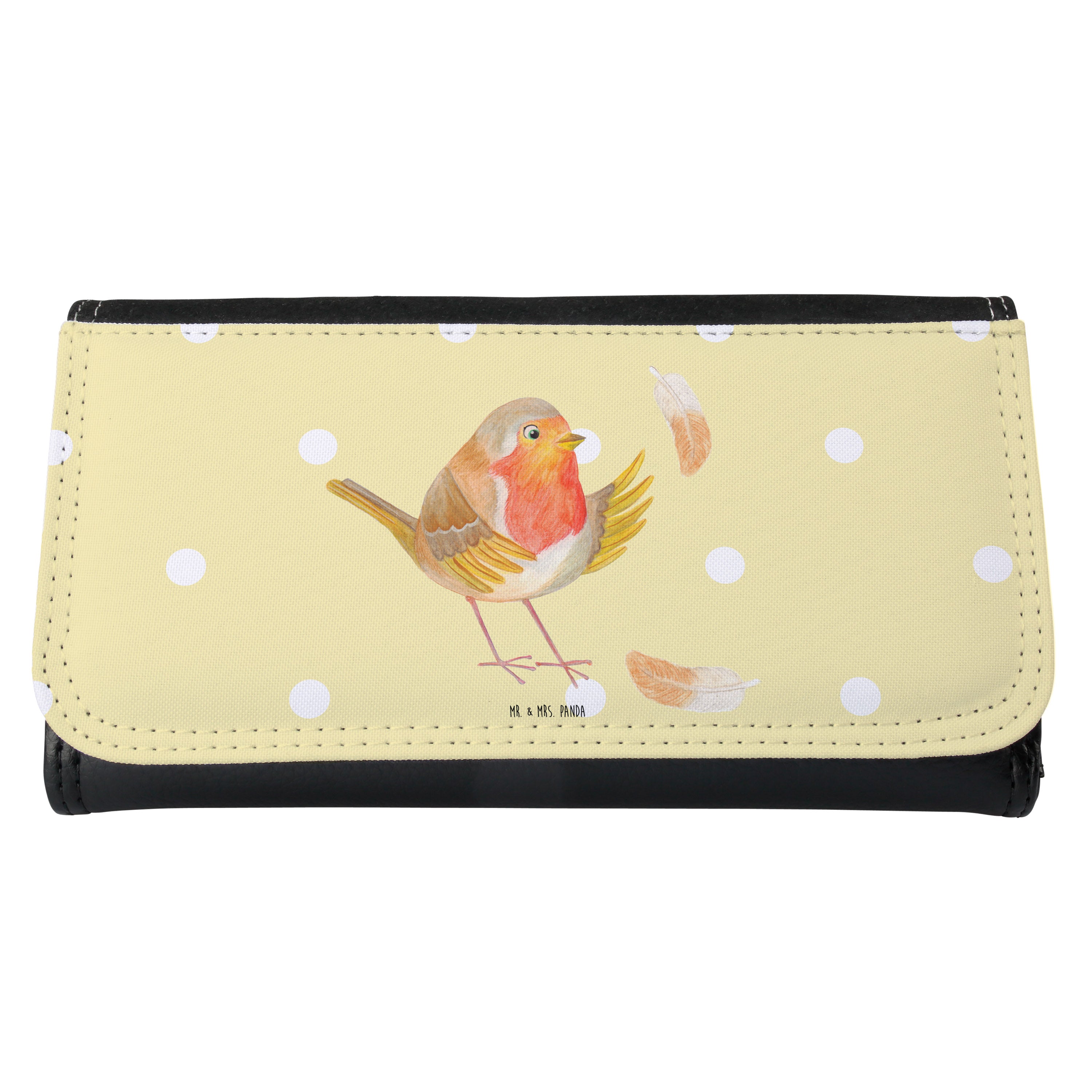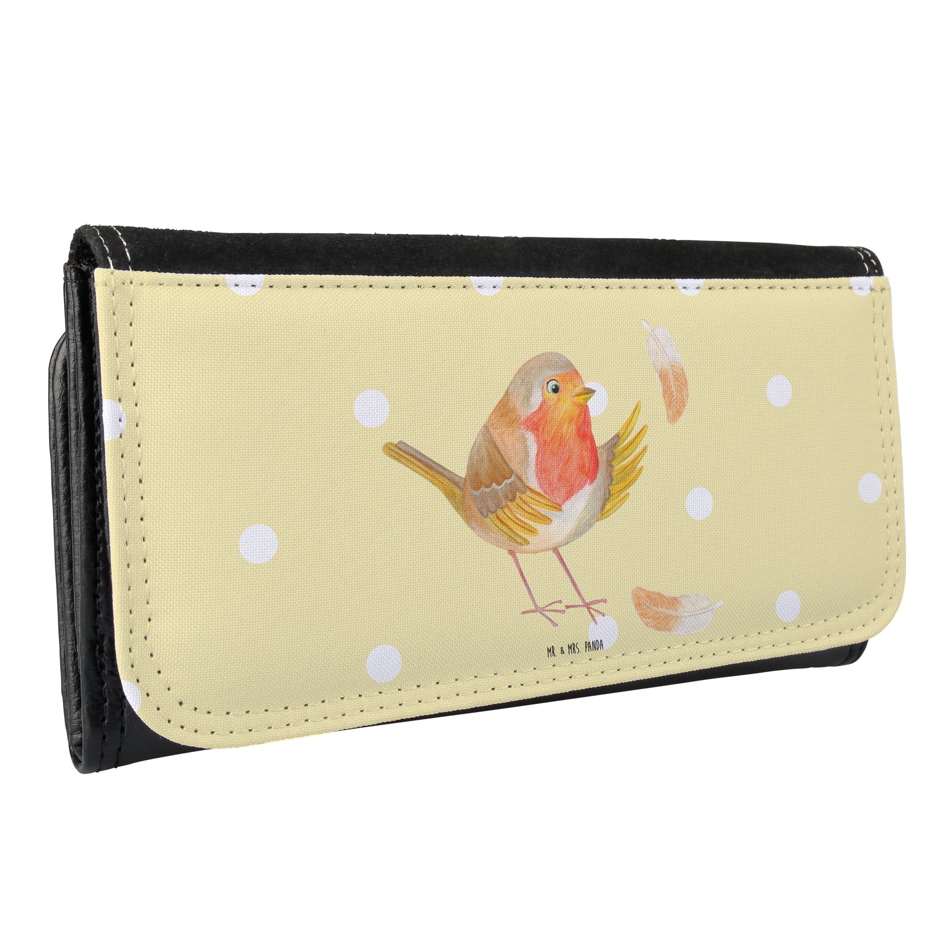 Damen Portemonnaie Rotkehlchen mit Federn - mit Spruch - Gelb Pastell