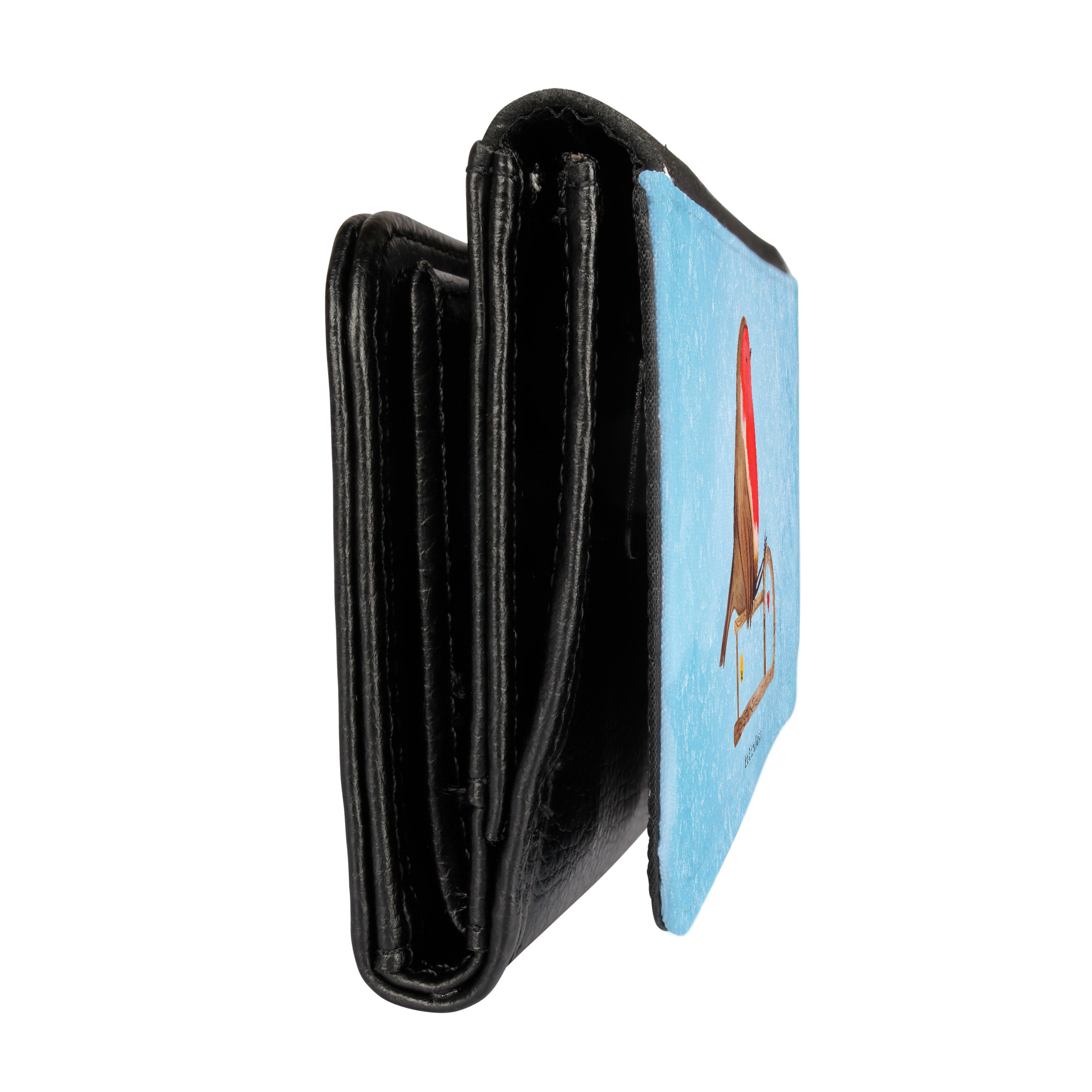 Damen Portemonnaie Rotkehlchen Schlitten - mit Spruch - Eisblau