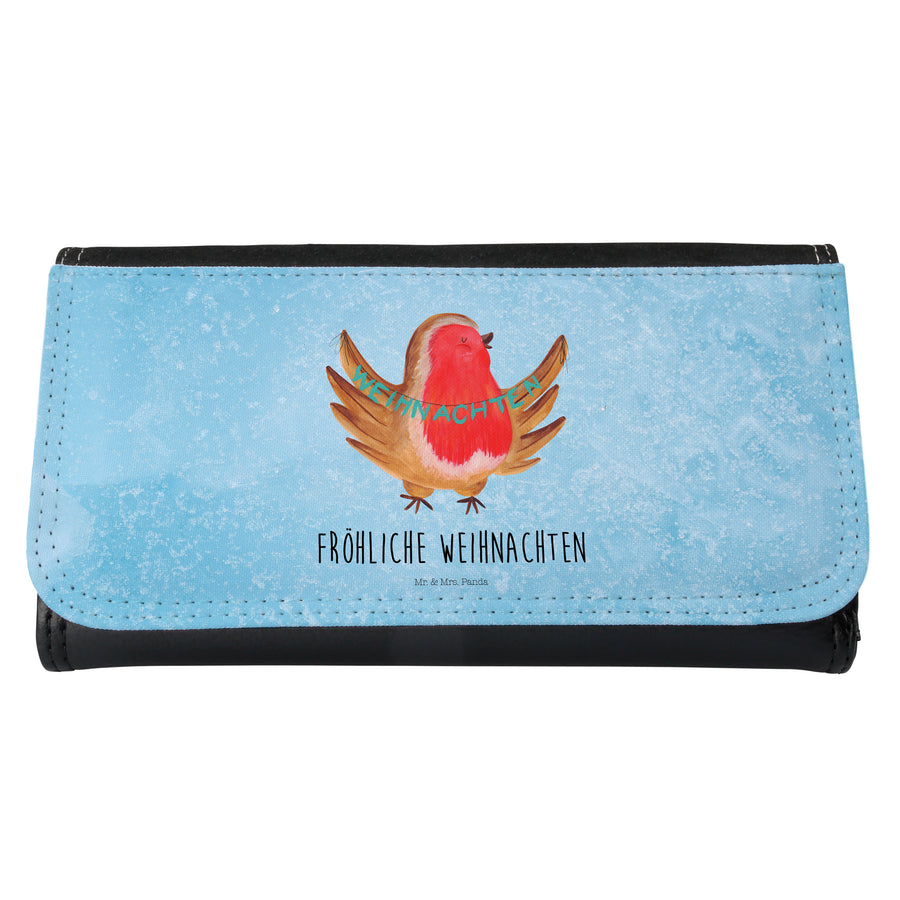 Damen Portemonnaie Rotkehlchen Weihnachten - mit Spruch - Eisblau