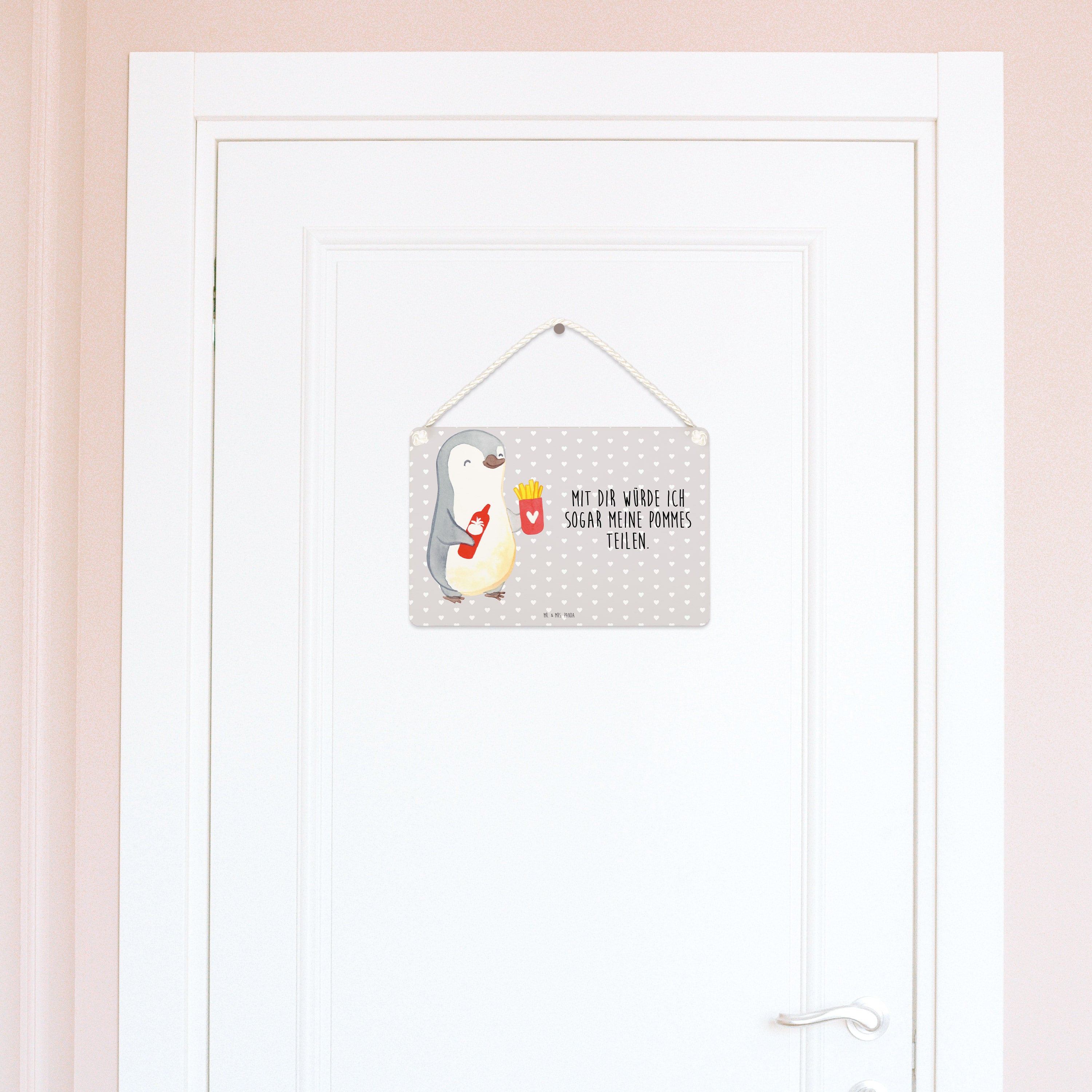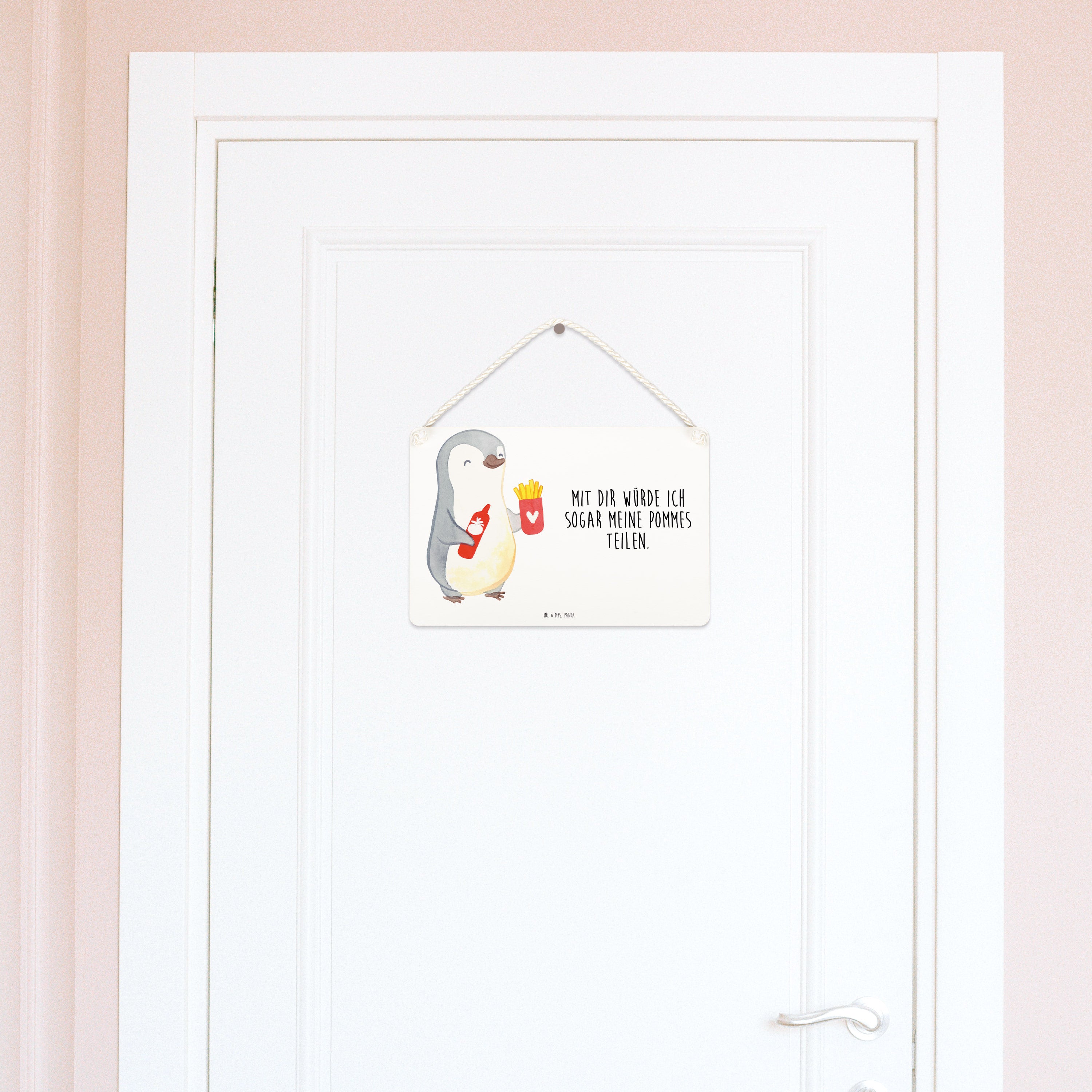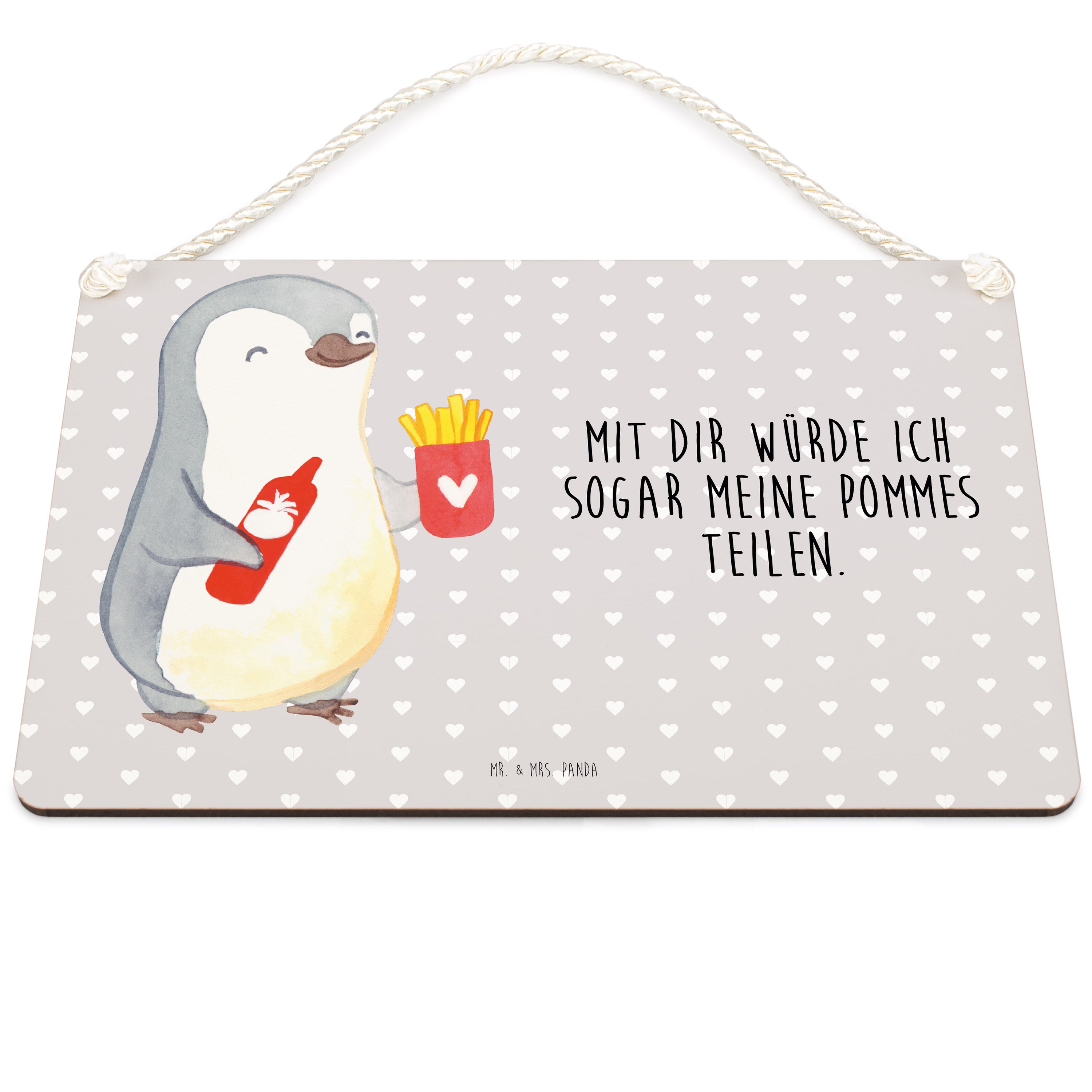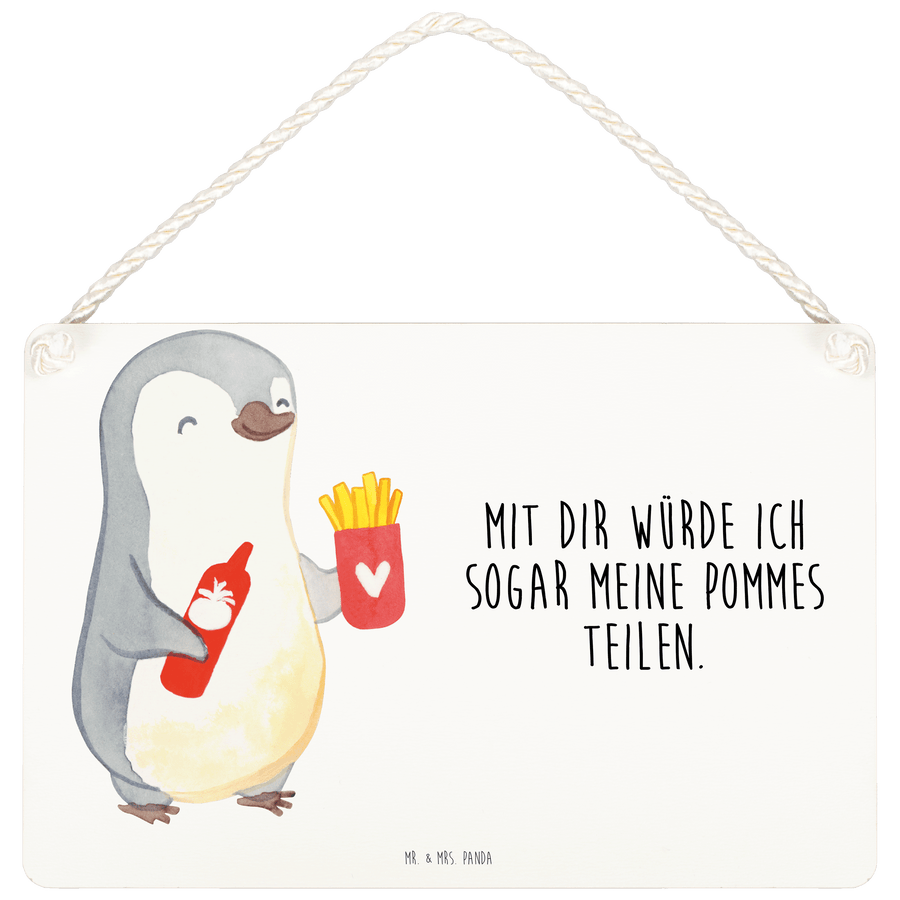 Deko Schild Pinguin Pommes - Weiß - DIN A4