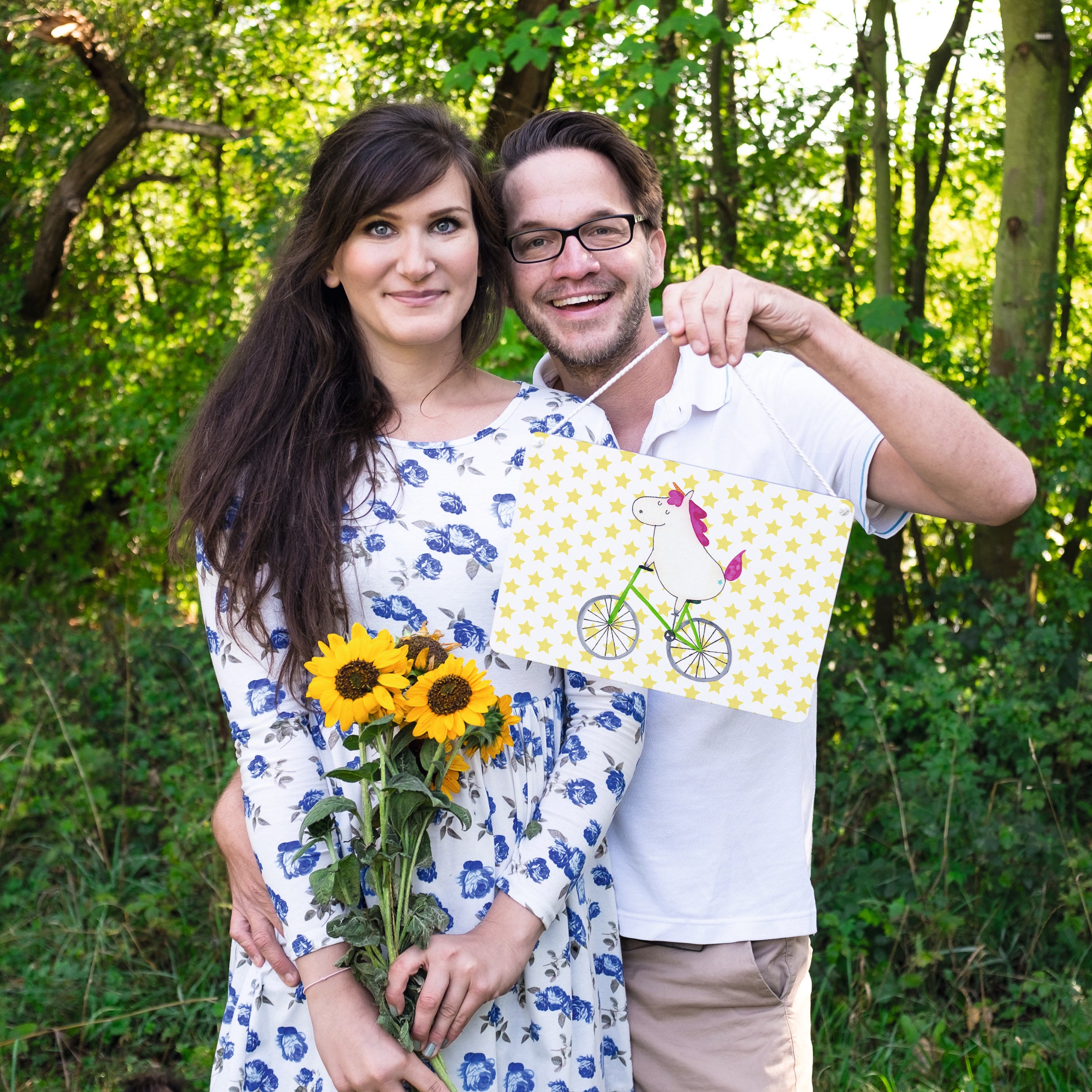 Das Radfahrer-Einhorn zeigt, dass die Welt doch gar nicht so schlecht ist. Die meisten Probleme lösen sich zum Glück in Glitzer und Feenstaub auf. Also das perfekte Motiv, um der Freundin mit Liebeskummer zu sagen: Alles halb so schlimm.