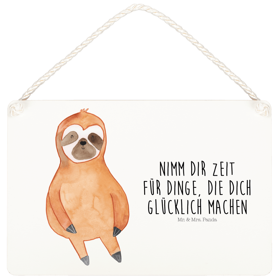 Deko Schild Faultier Zufrieden - DIN A5 - mit Spruch - Weiß