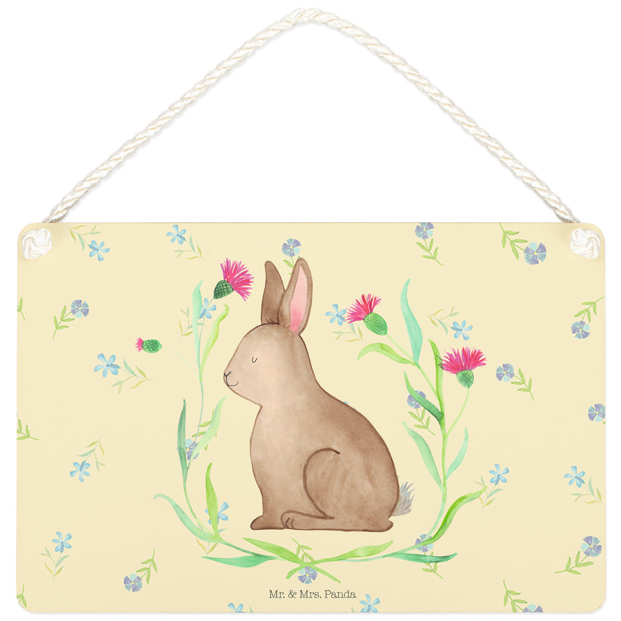 Deko Schild Hase sitzend - ohne Spruch - Blumig
