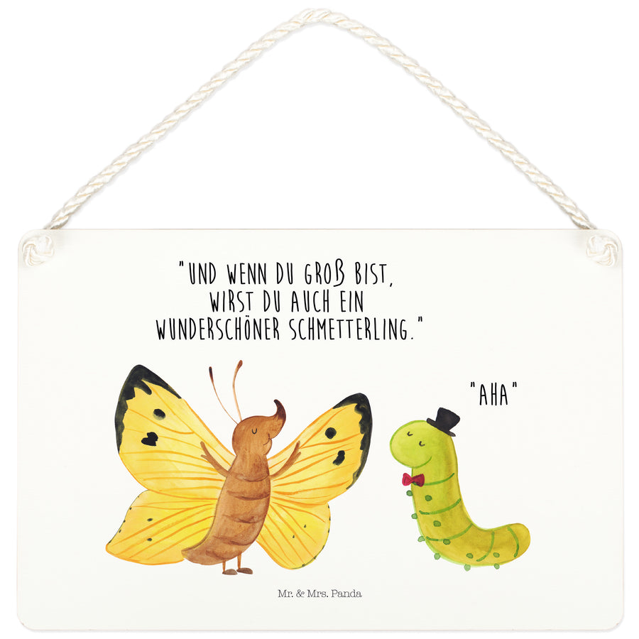 Deko Schild Raupe & Schmetterling - mit Spruch - Weiß
