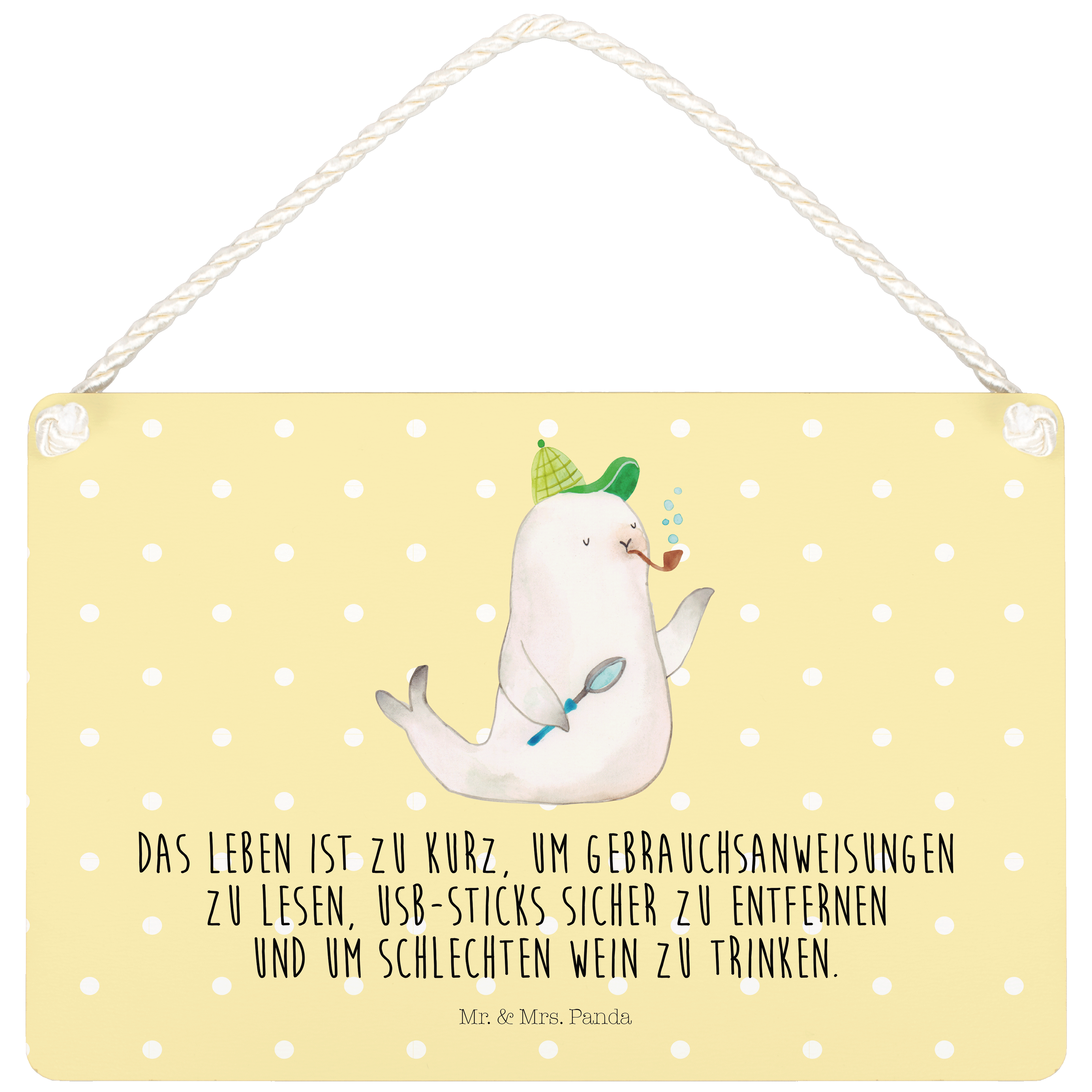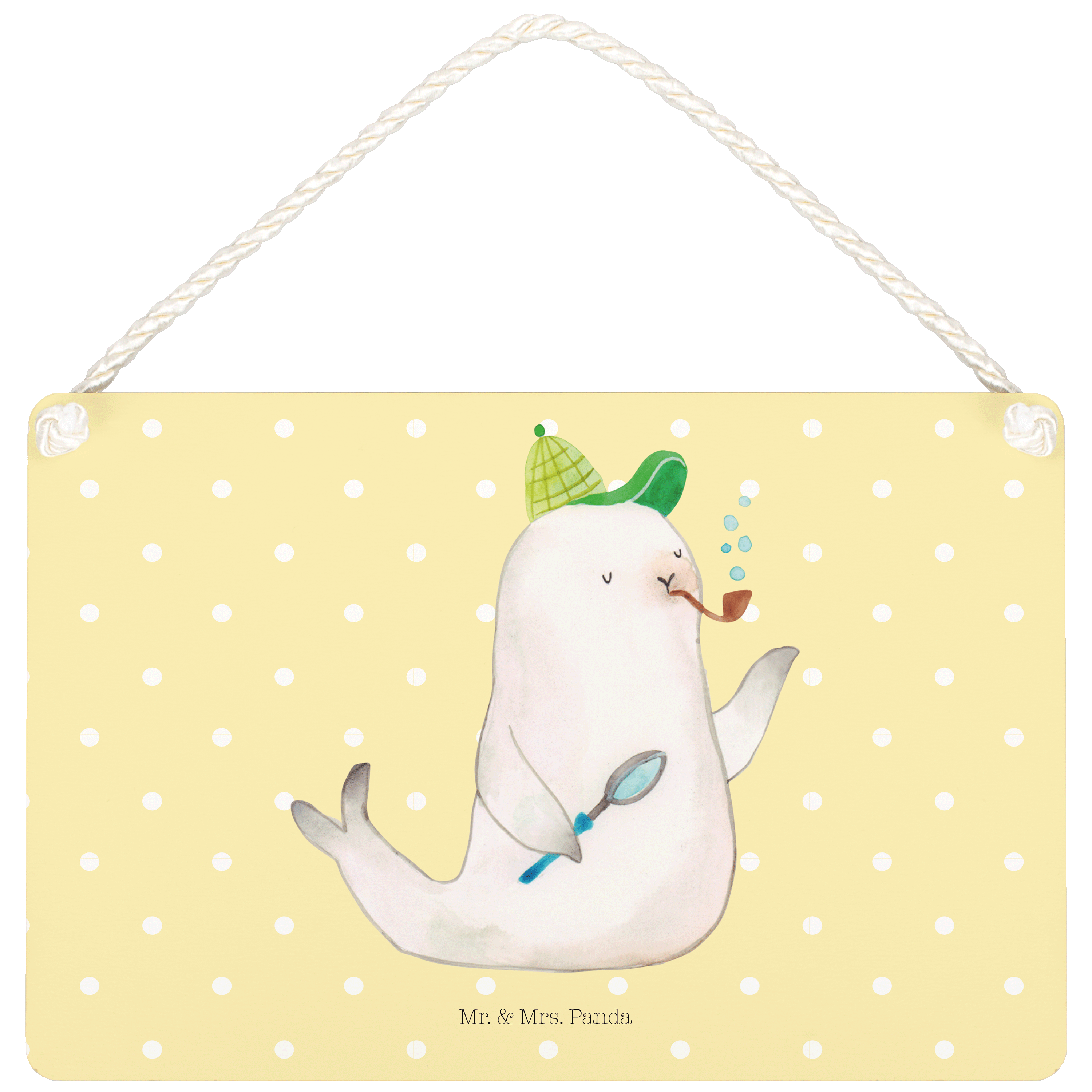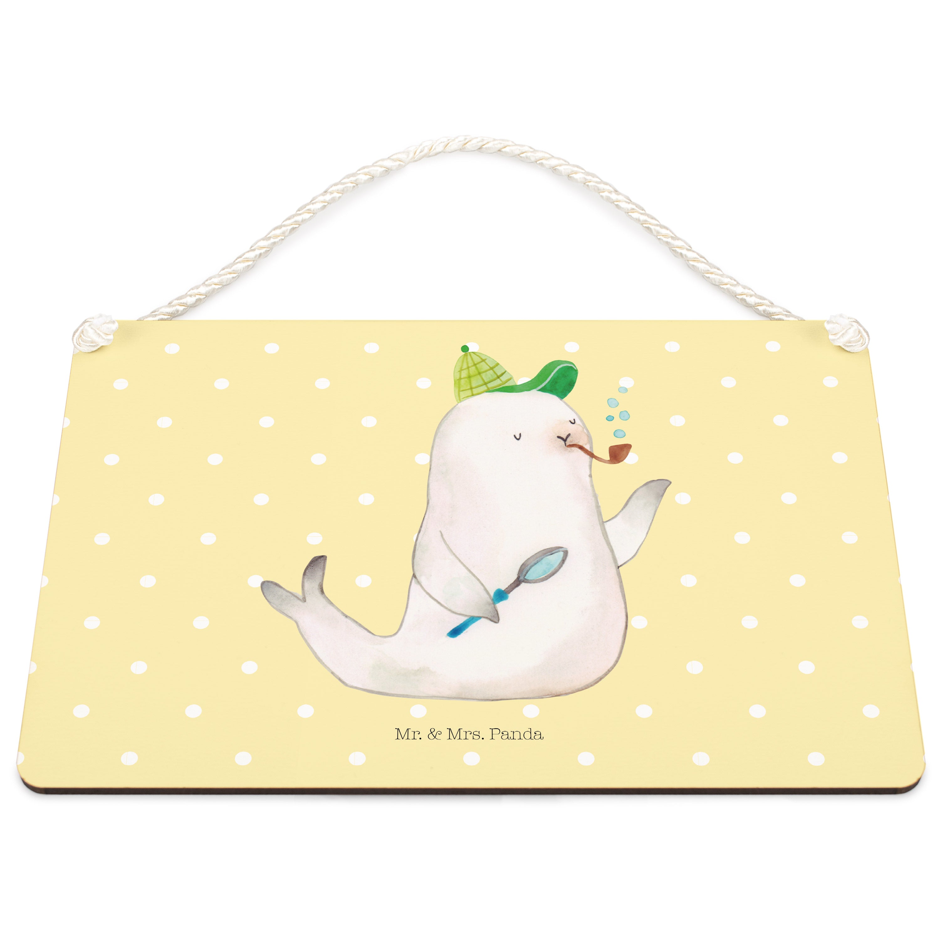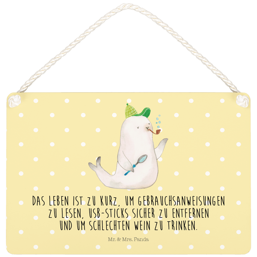 Deko Schild Robbe Sherlock - mit Spruch - Gelb Pastell