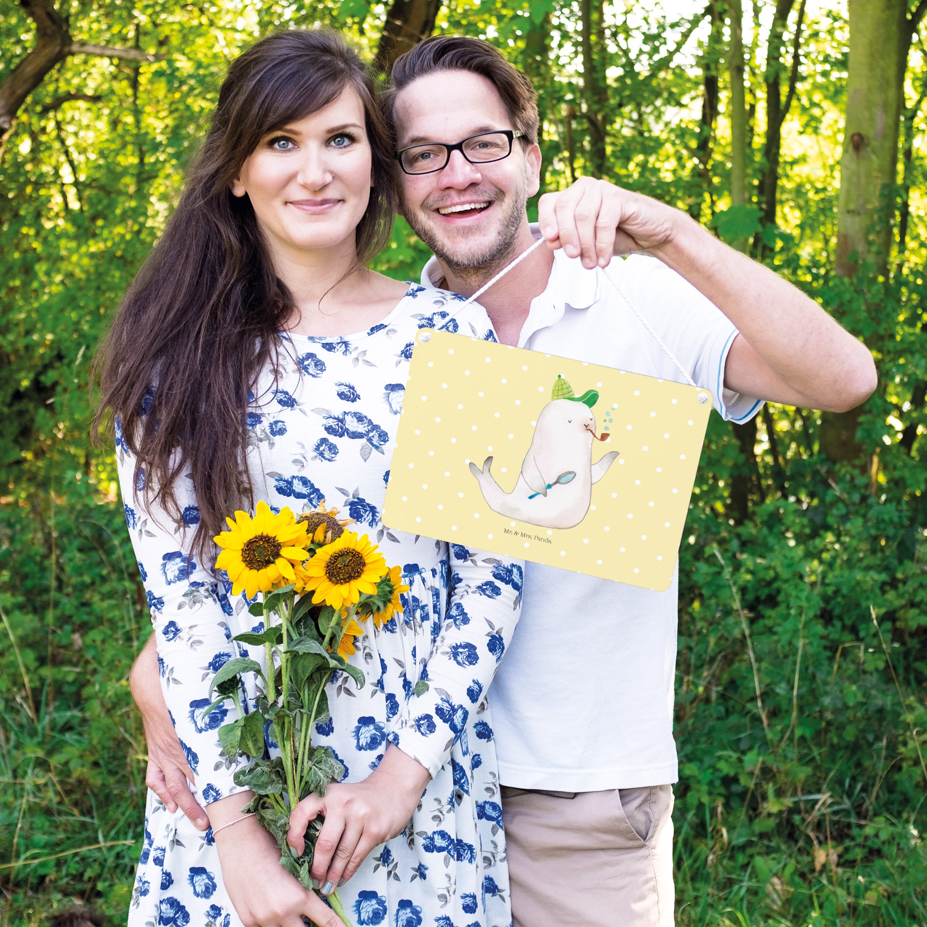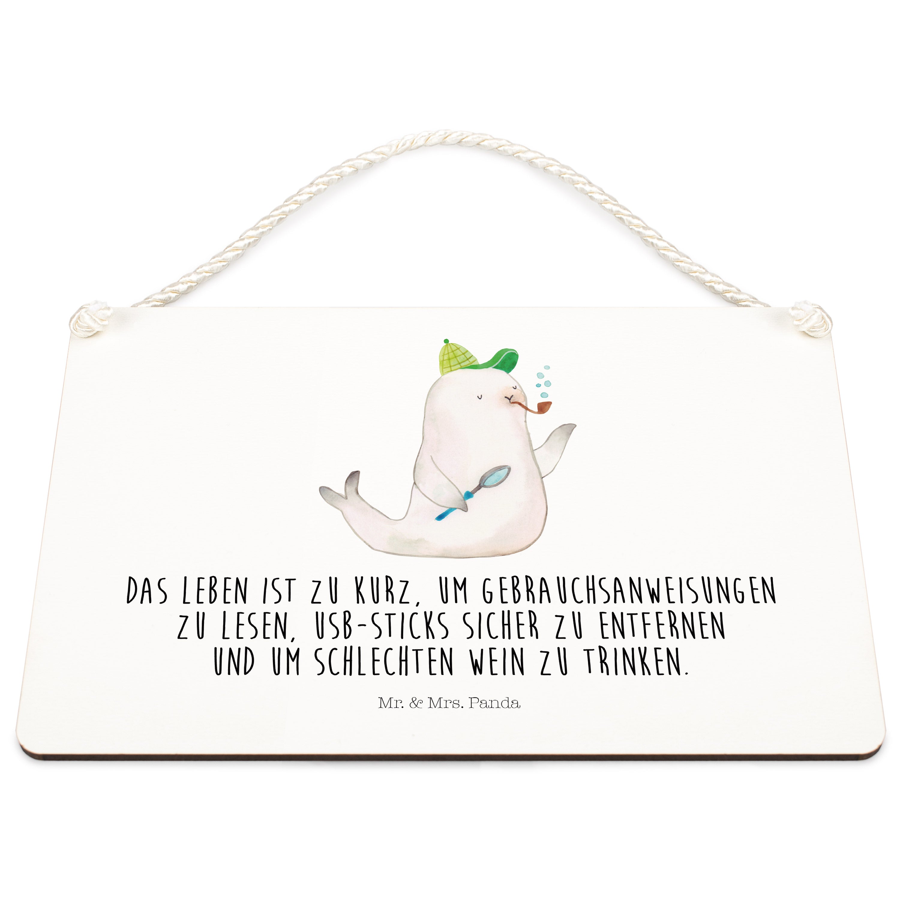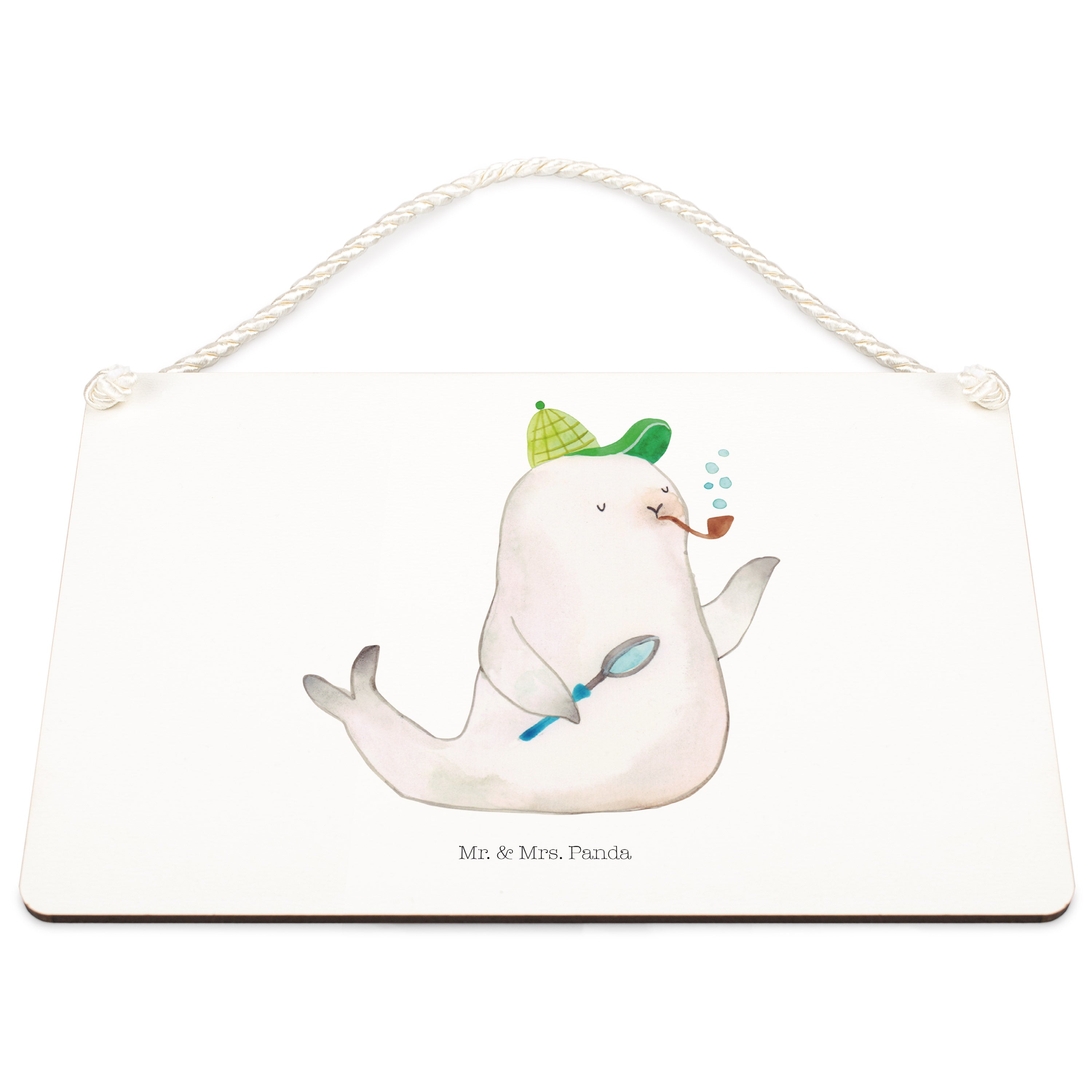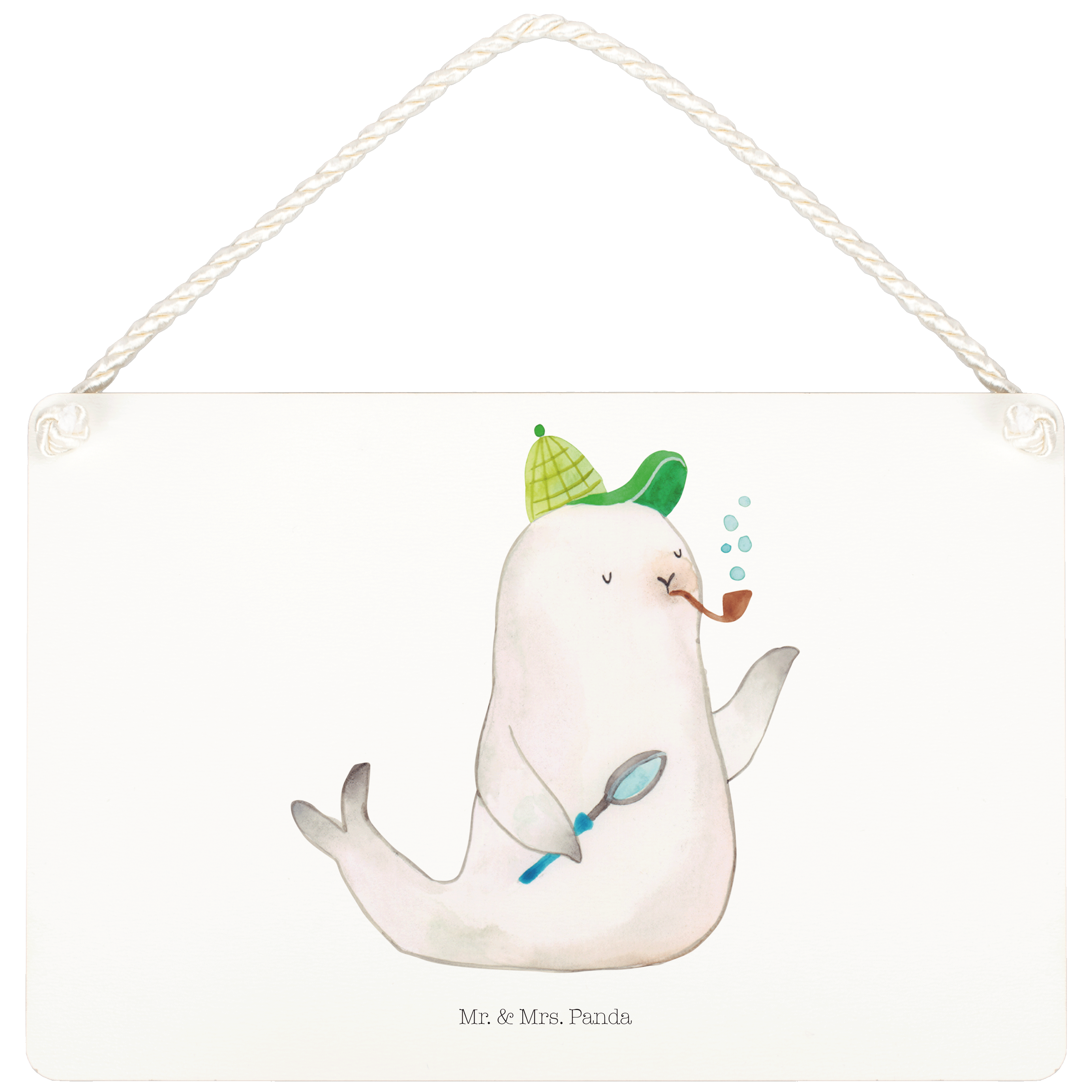 Deko Schild Robbe Sherlock - mit Spruch - Gelb Pastell