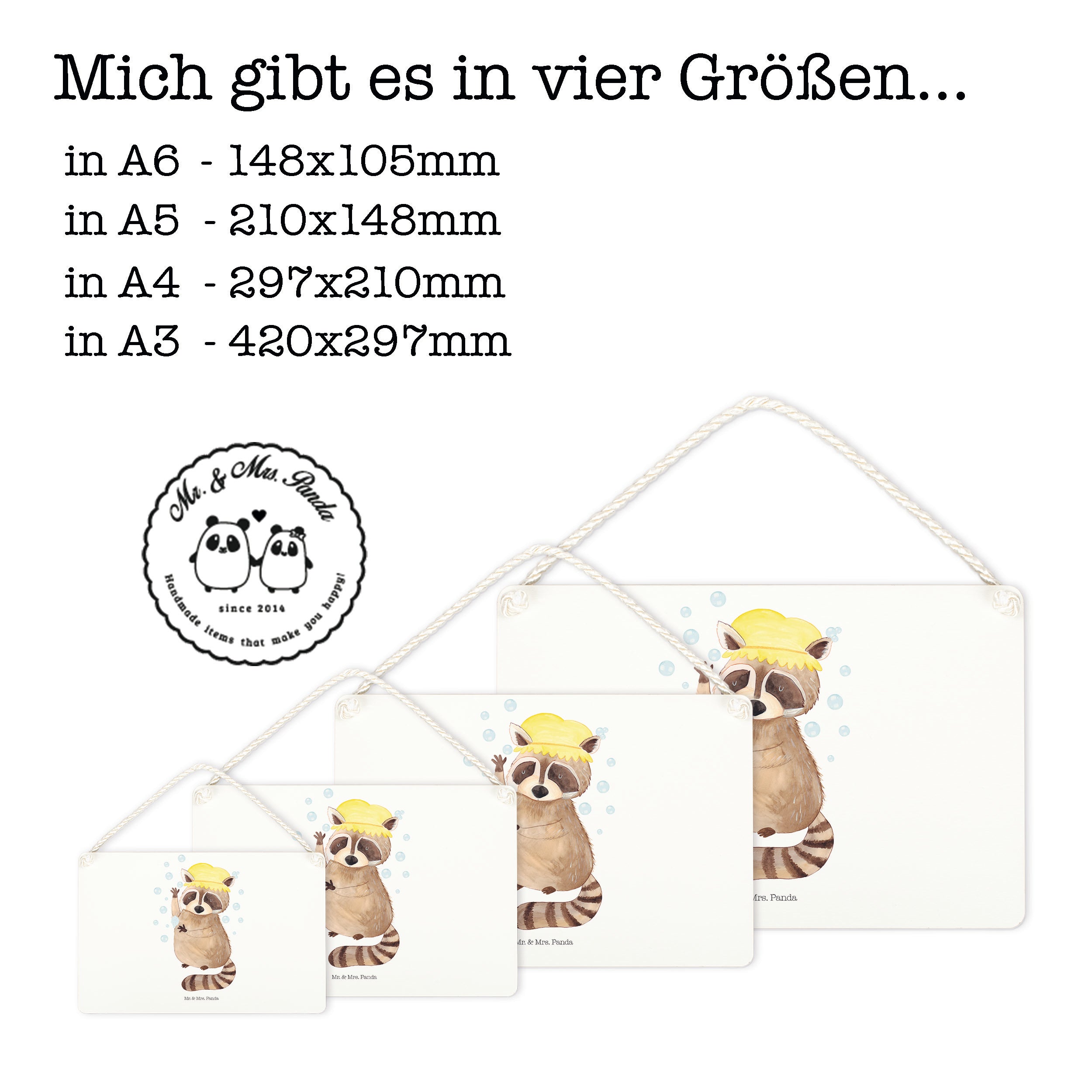 Deko Schild Waschbär - DIN A5 - mit Spruch - Weiß