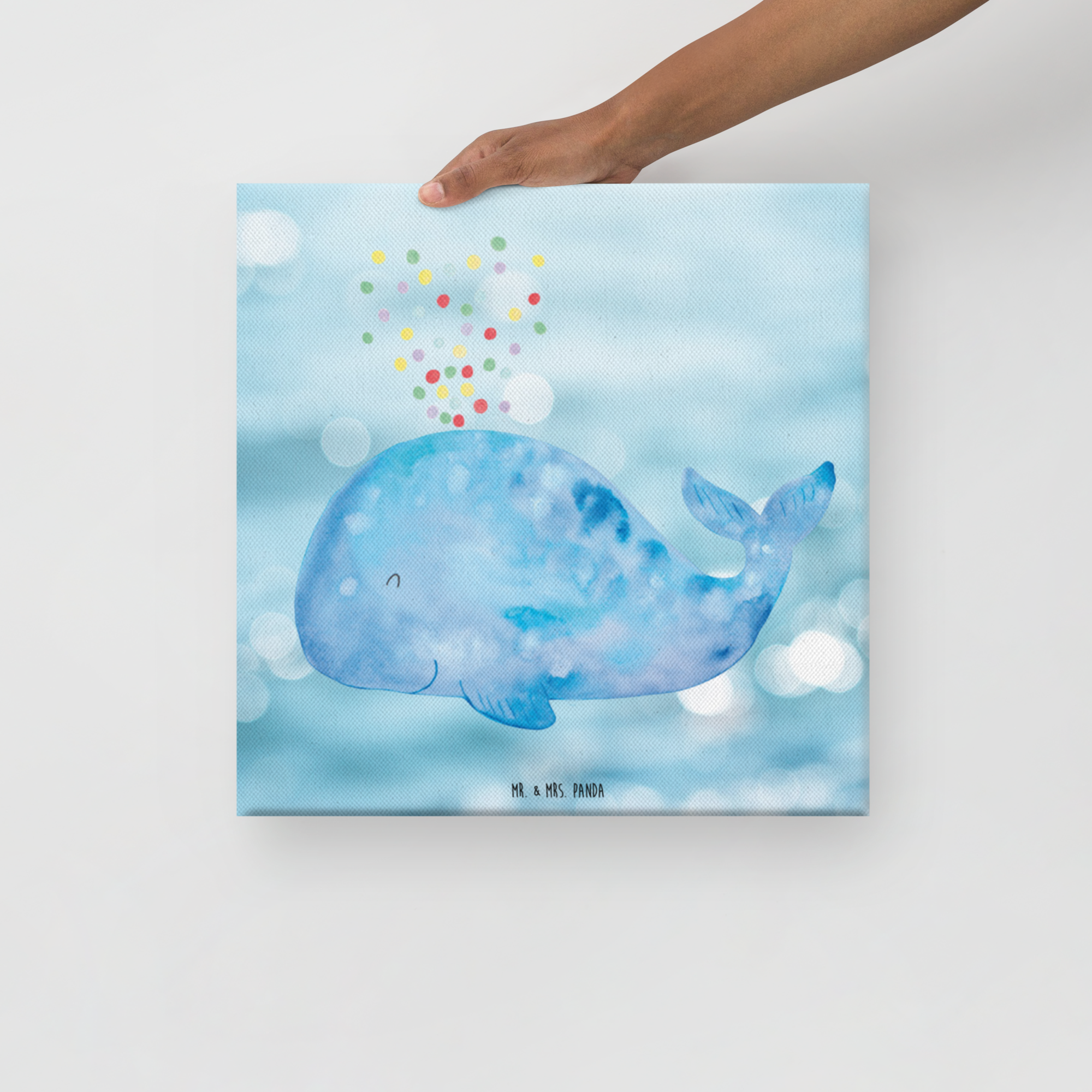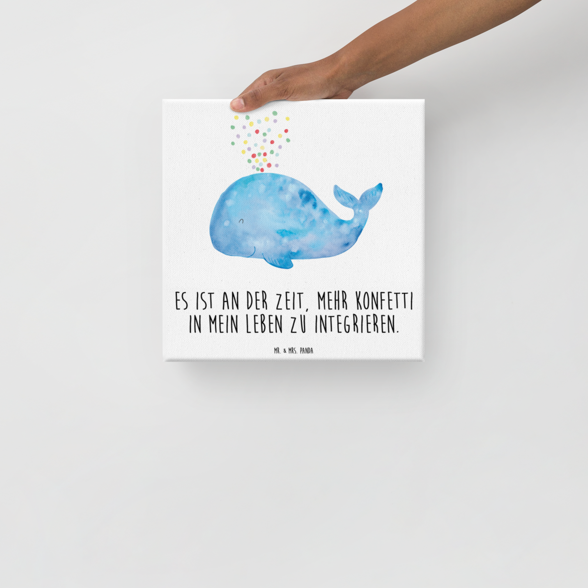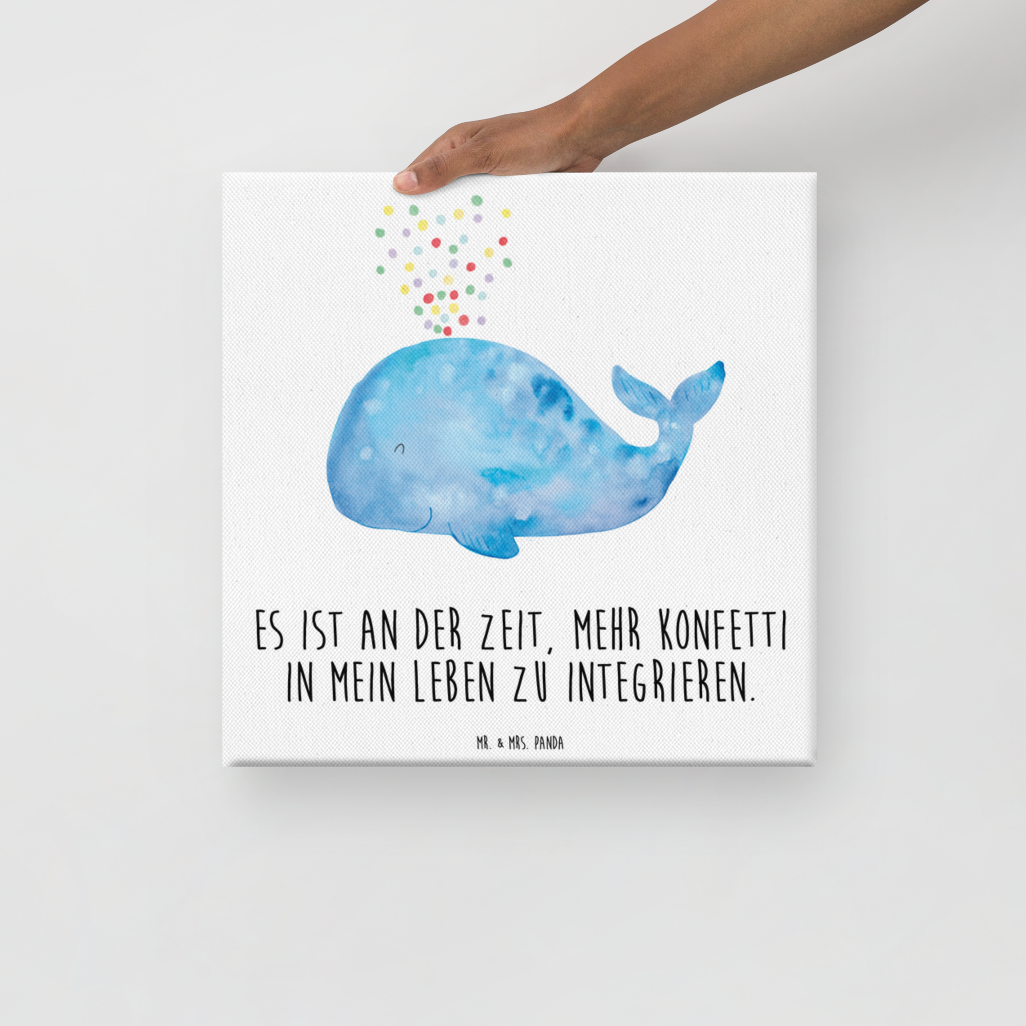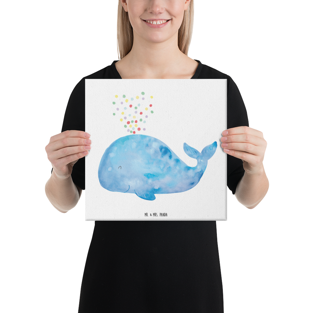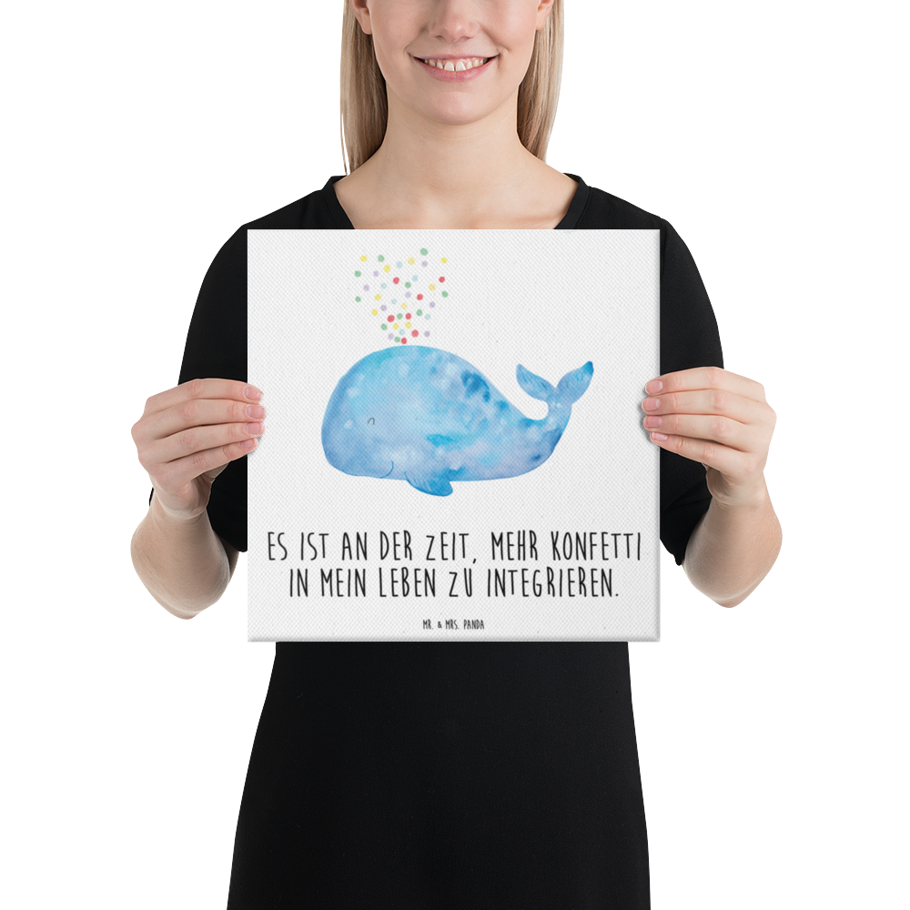 Leinwand Bild Wal Konfetti - 40 x 40 cm - mit Spruch