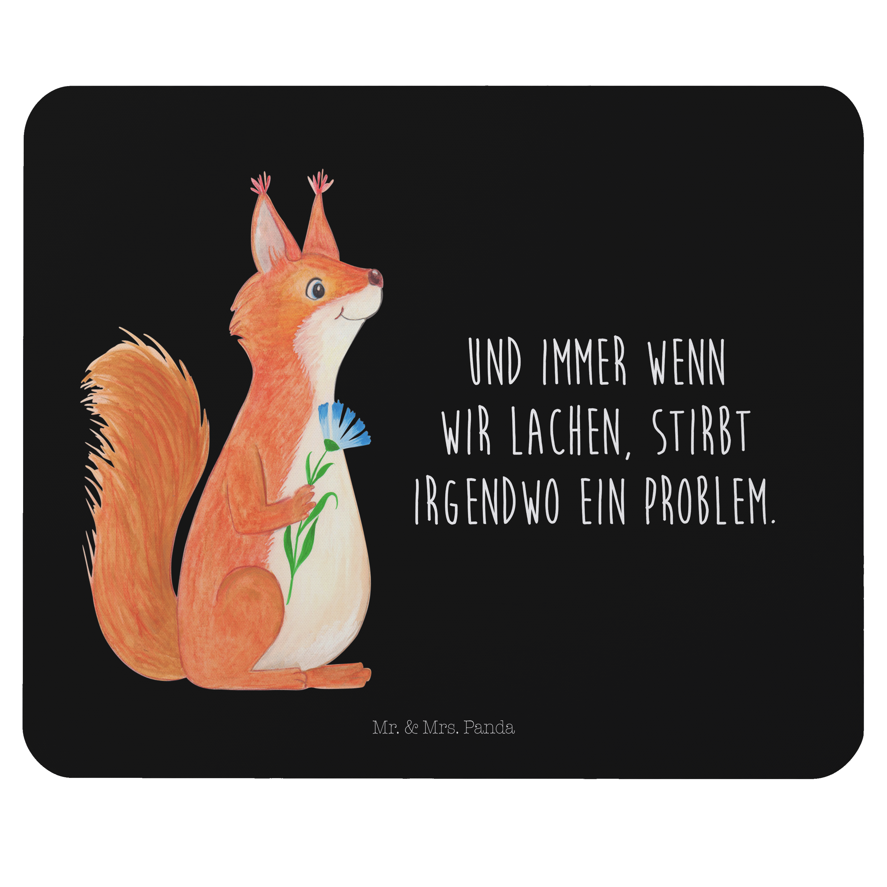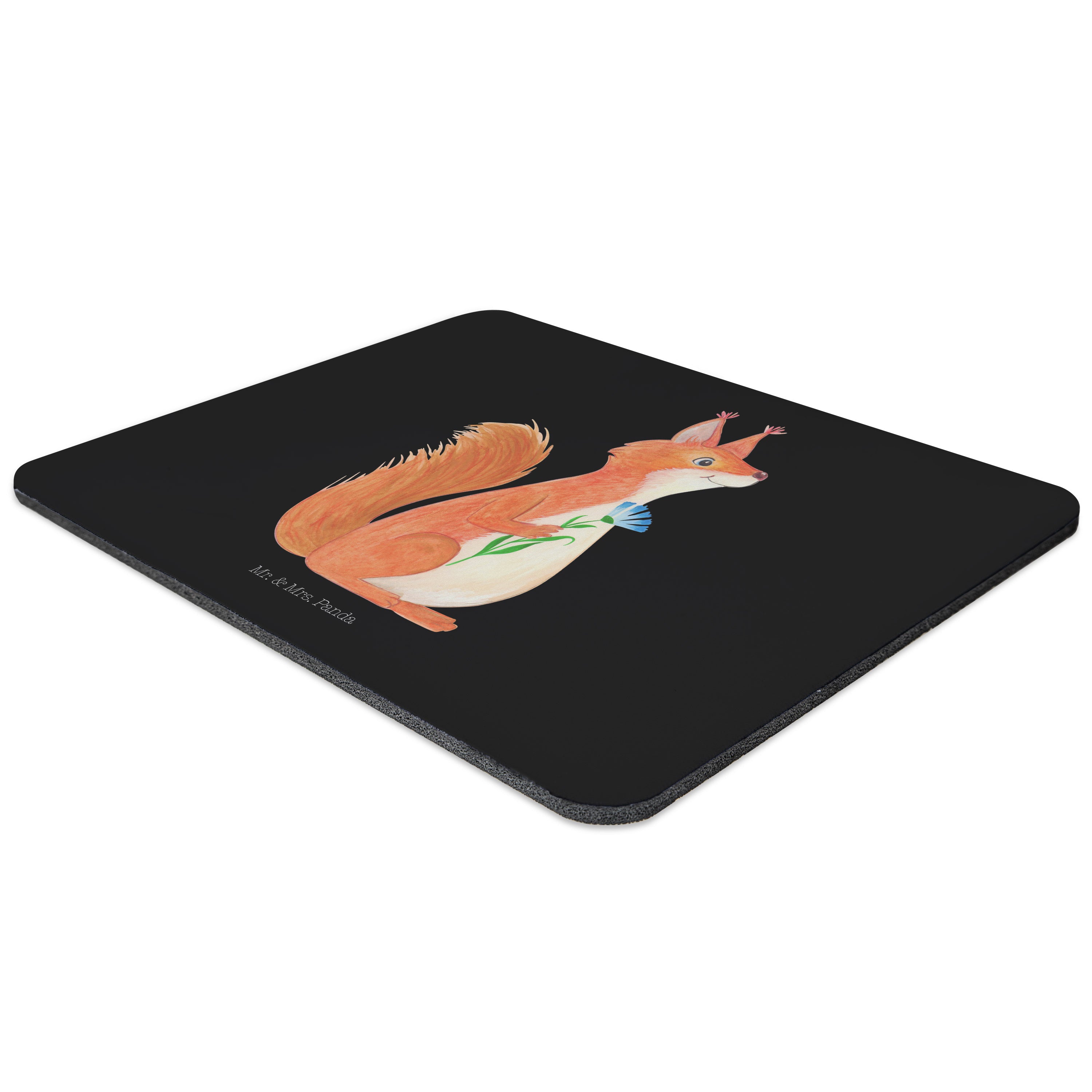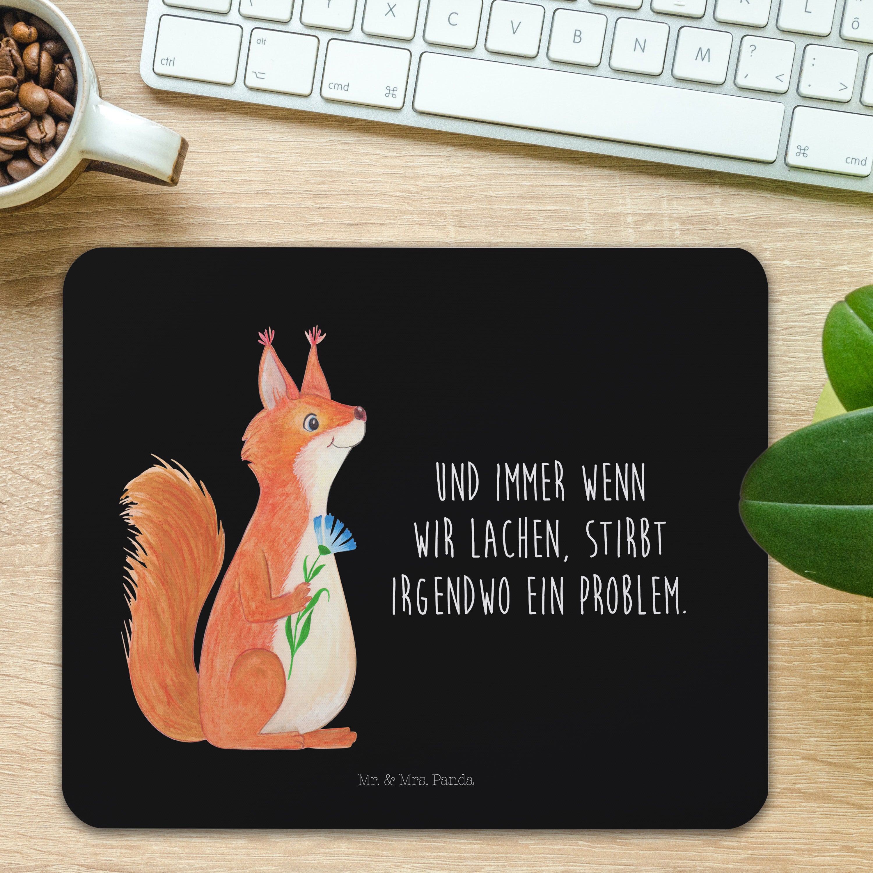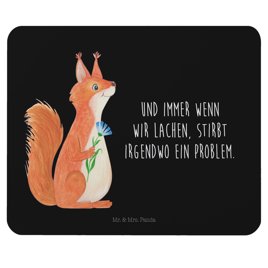 Mauspad Eichhörnchen Blume - mit Spruch - Schwarz