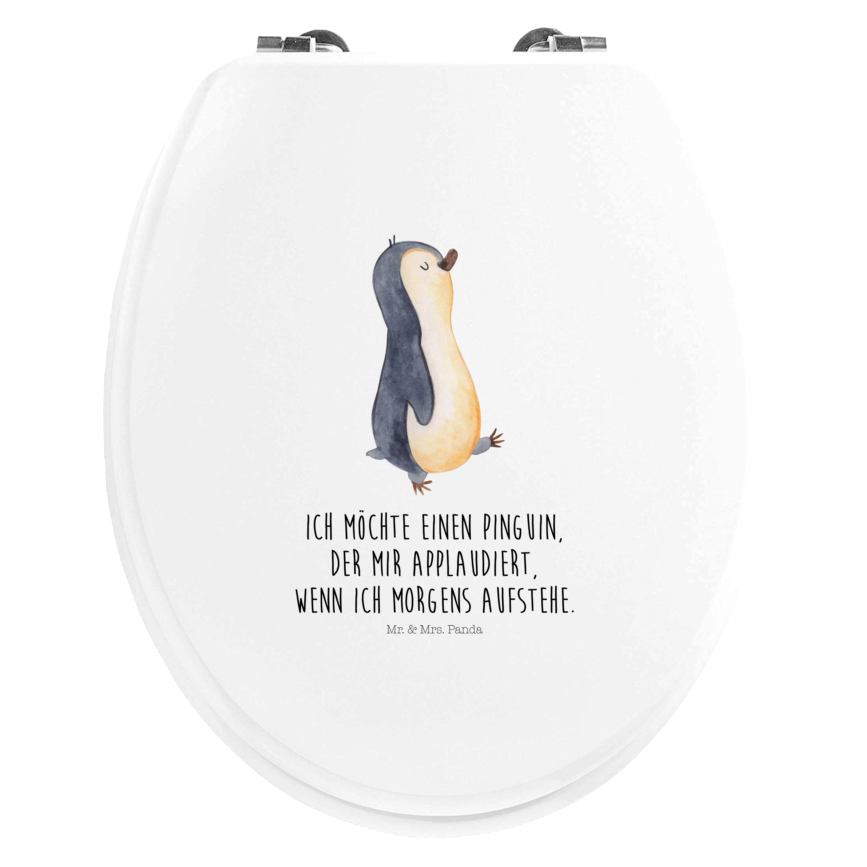 Motiv WC Sitz Pinguin marschierend - mit Spruch - Transparent