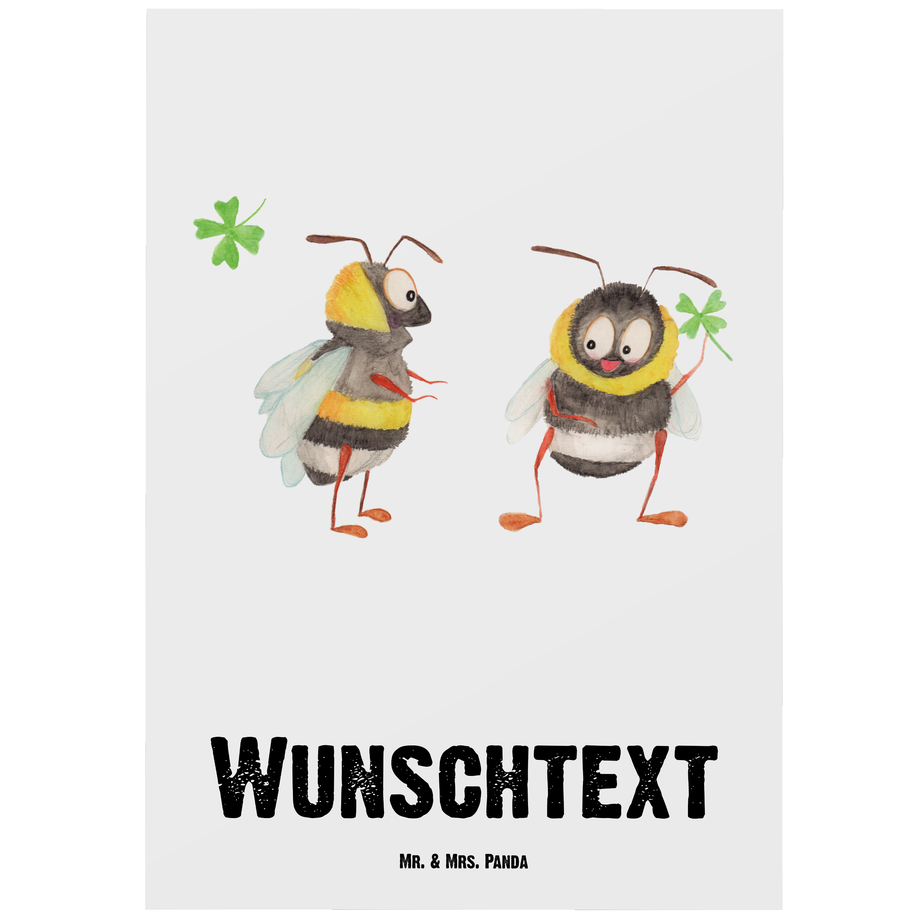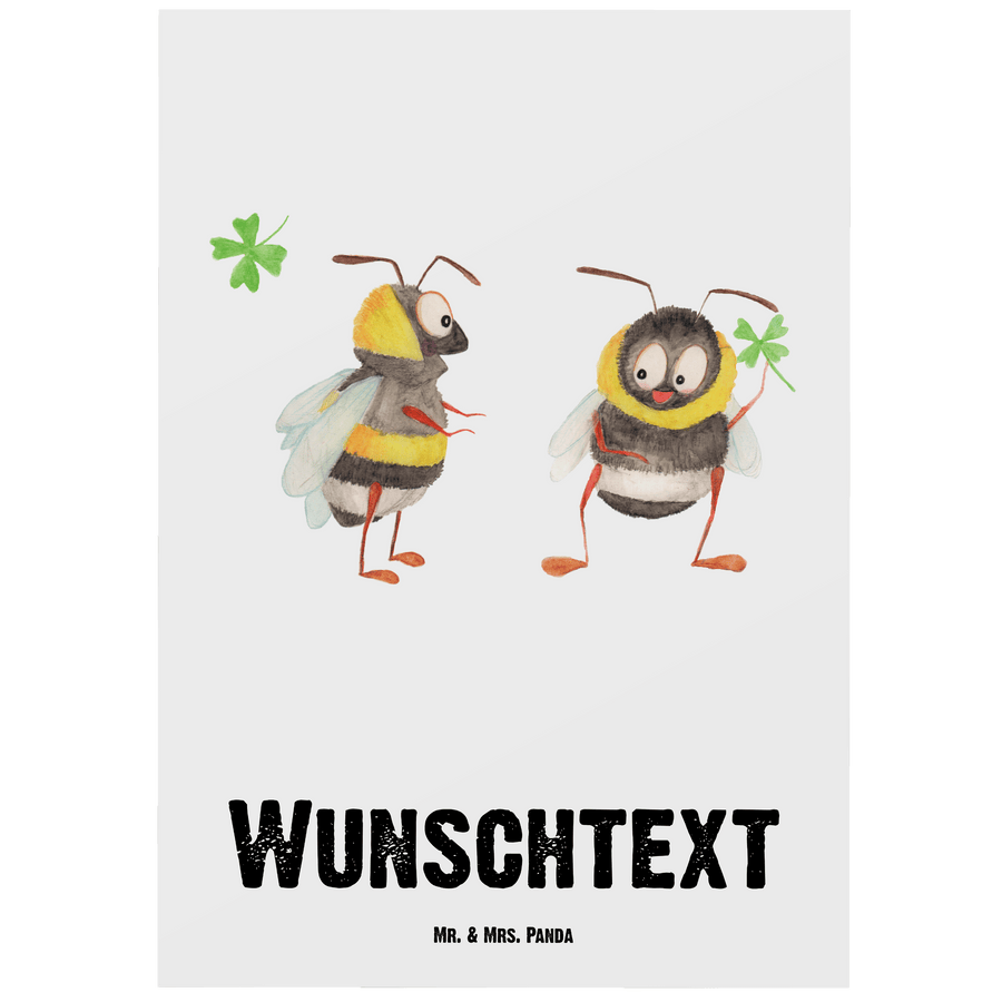 Personalisierte Postkarte Hummeln mit Kleeblatt Postkarte mit Namen, Postkarte bedrucken, Postkarte mit Wunschtext, Postkarte personalisierbar, Geschenkkarte mit Namen, Grußkarte mit Namen, Karte mit Namen, Einladung mit Namen, Ansichtskarte mit Namen, Geschenkkarte mit Wunschtext, Grußkarte mit Wunschtext, Karte mit Wunschtext, Einladung mit Wunschtext, Ansichtskarte mit Wunschtext, süße Tiermotive, gute Laune, lustige Sprüche, Tiere, Hummel, Biene, Spruch positiv, Biene Deko, Spruch schön, glücklich sein, glücklich werden, Spruch fröhlich