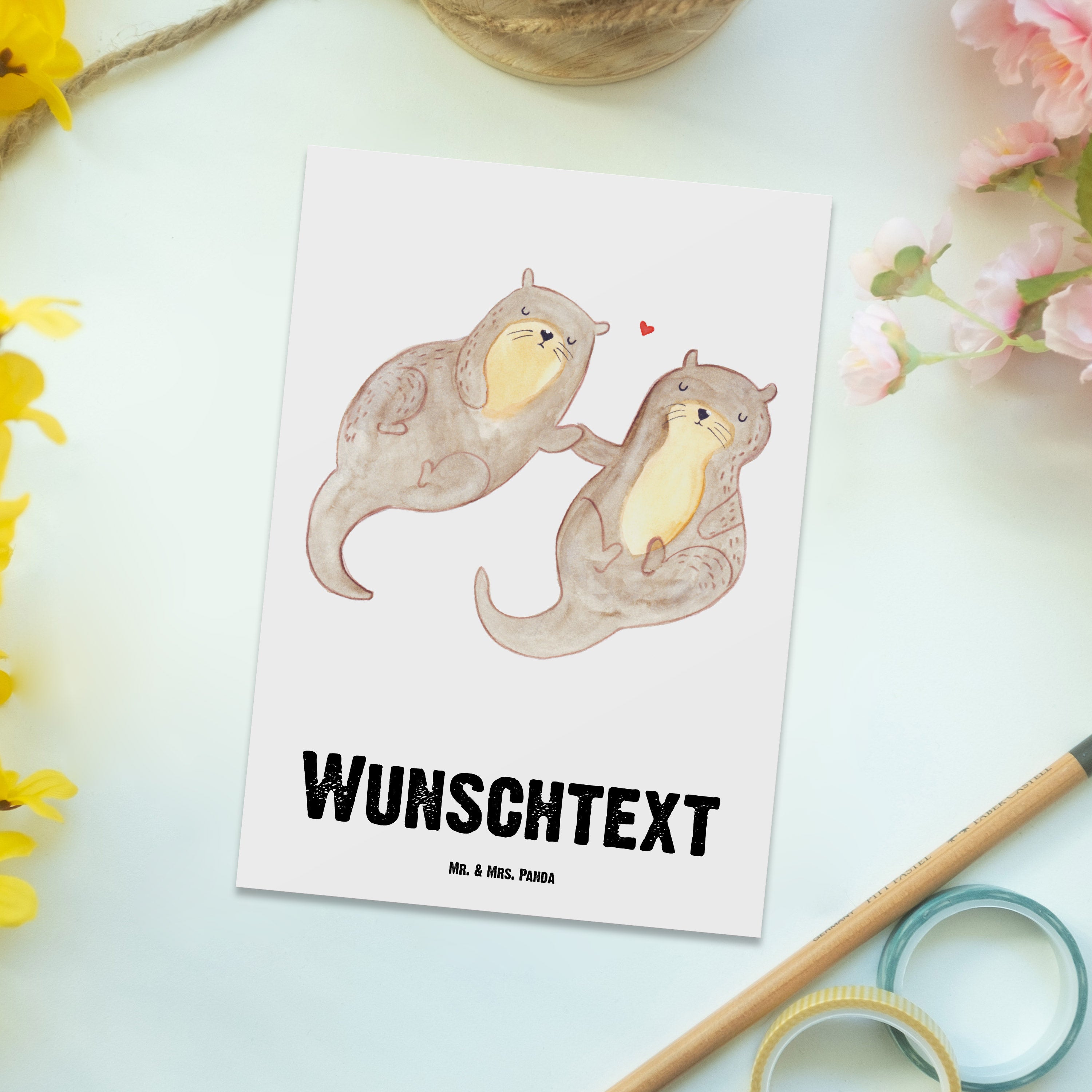 Personalisierte Postkarte Otter händchenhaltend Postkarte mit Namen, Postkarte bedrucken, Postkarte mit Wunschtext, Postkarte personalisierbar, Geschenkkarte mit Namen, Grußkarte mit Namen, Karte mit Namen, Einladung mit Namen, Ansichtskarte mit Namen, Geschenkkarte mit Wunschtext, Grußkarte mit Wunschtext, Karte mit Wunschtext, Einladung mit Wunschtext, Ansichtskarte mit Wunschtext, Otter, Fischotter, Seeotter, Otter Seeotter See Otter