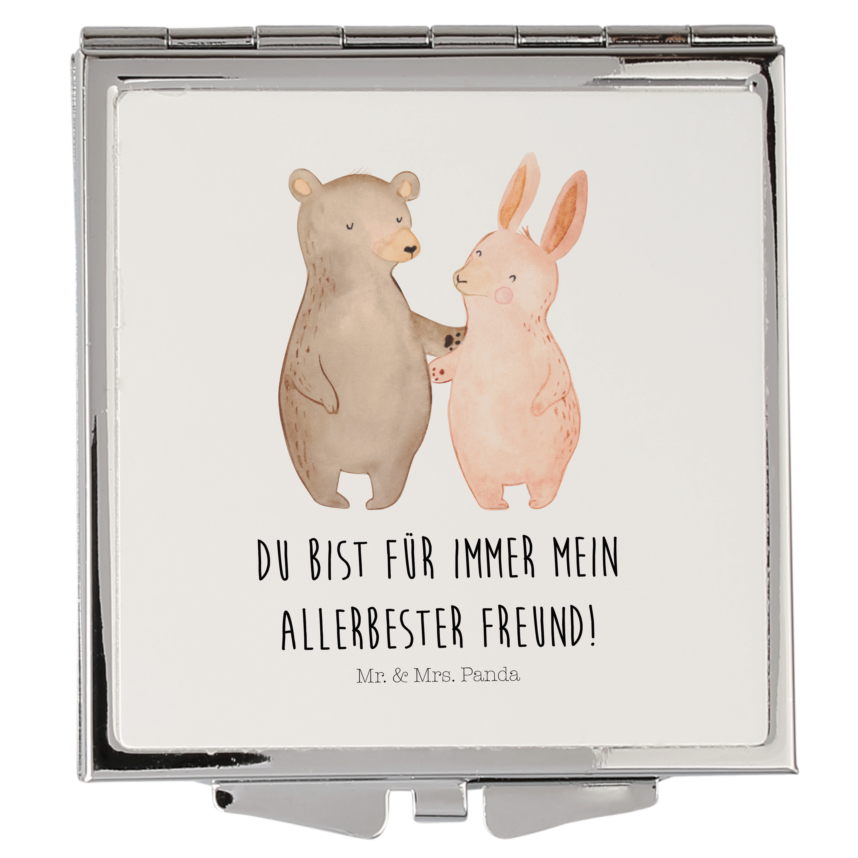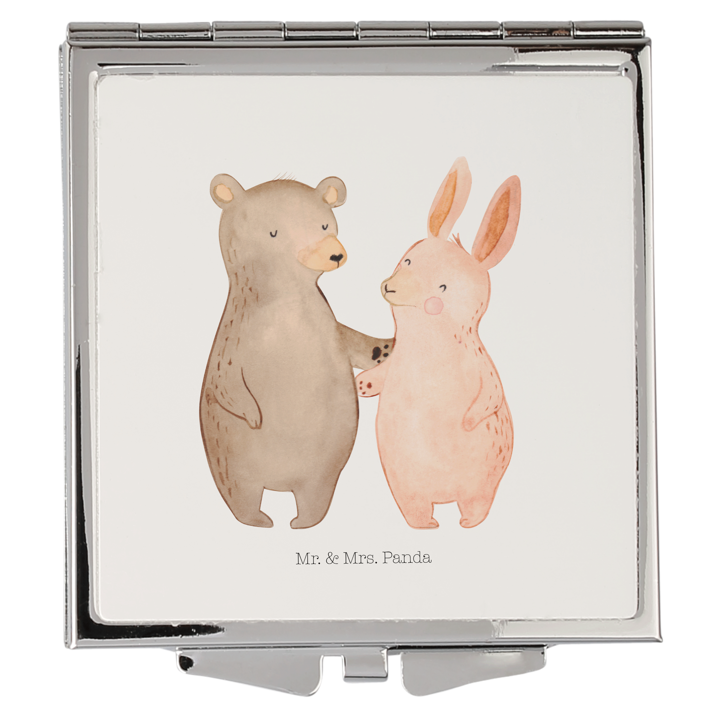 Handtaschenspiegel quadratisch Bär Hase Umarmen Spiegel, Handtasche, Quadrat, silber, schminken, Schminkspiegel, Liebe, Partner, Freund, Freundin, Ehemann, Ehefrau, Heiraten, Verlobung, Heiratsantrag, Liebesgeschenk, Jahrestag, Hocheitstag, Freunde, bester Freund, Hase, Bär, Bärchen, best friends