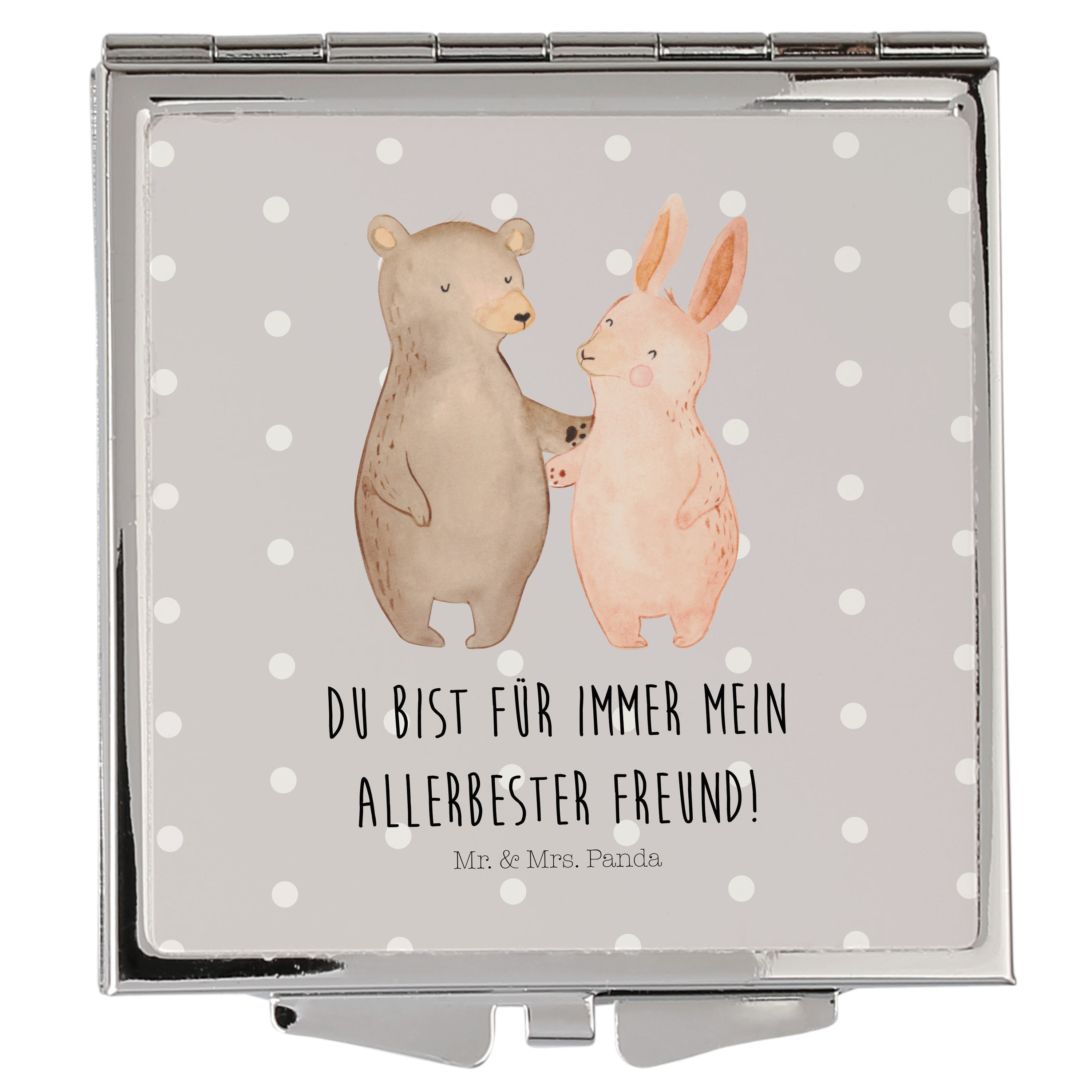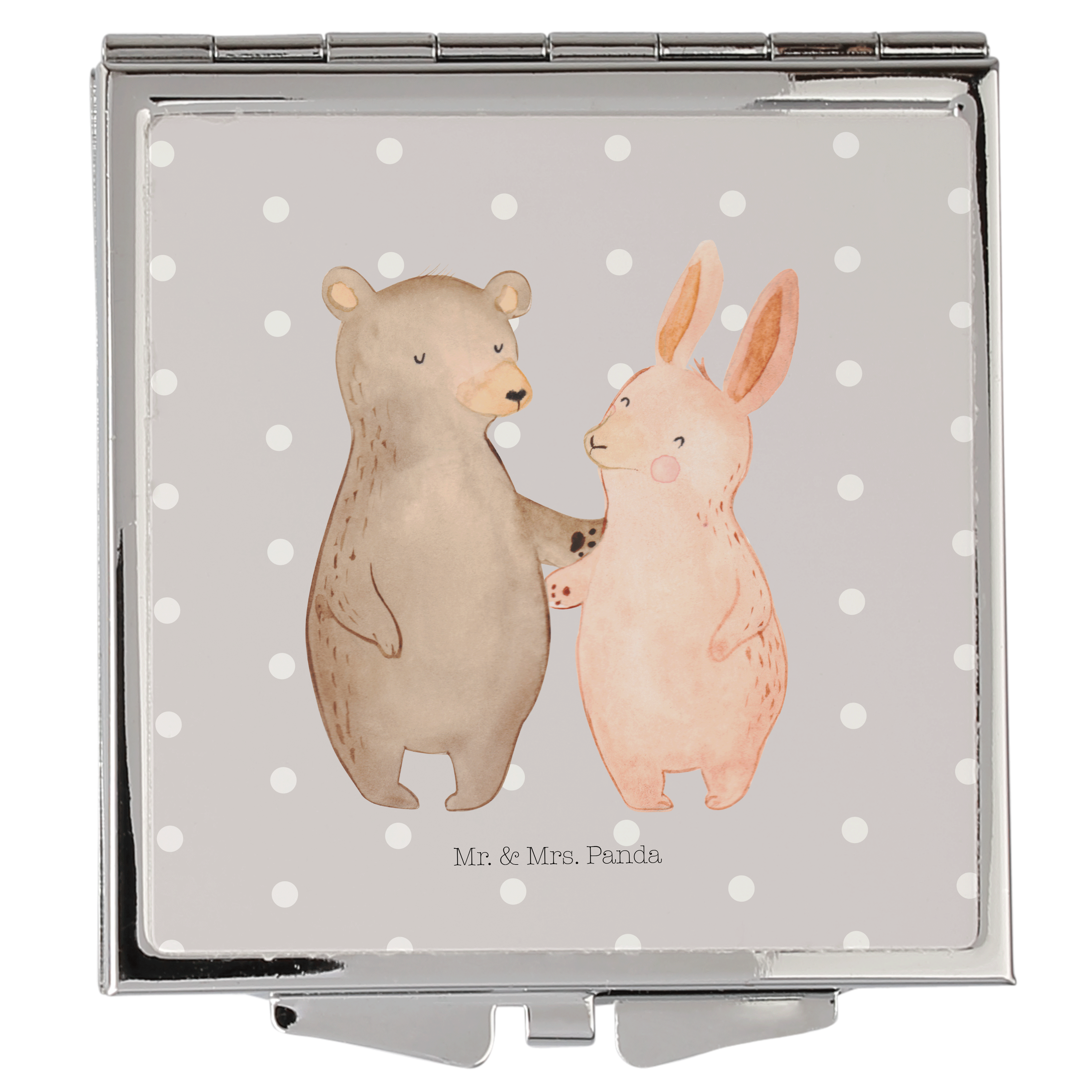 Handtaschenspiegel quadratisch Bär Hase Umarmen - mit Spruch - Grau Pastell
