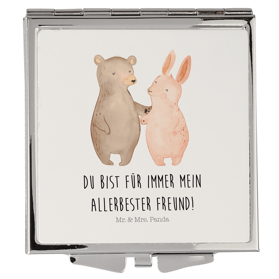 Handtaschenspiegel quadratisch Bär Hase Umarmen - mit Spruch - Weiß
