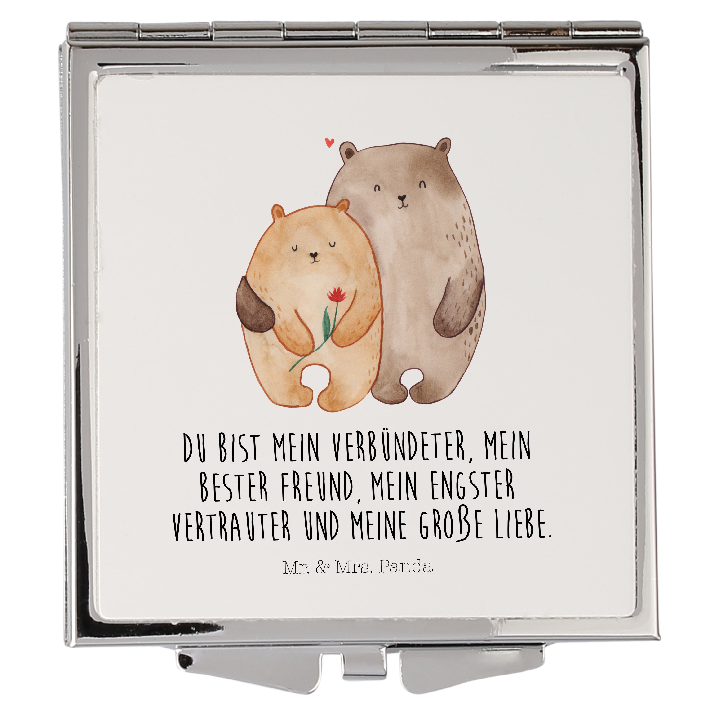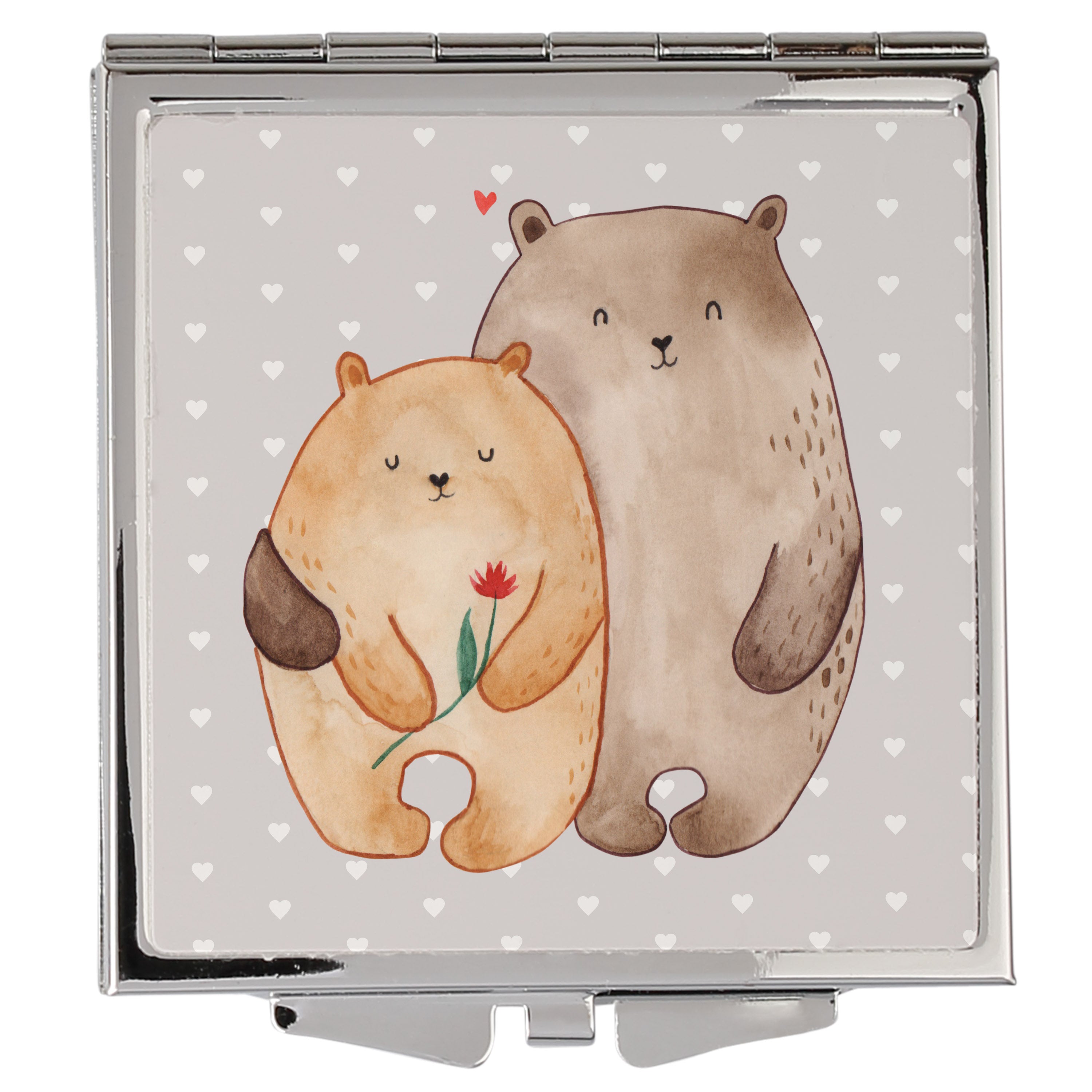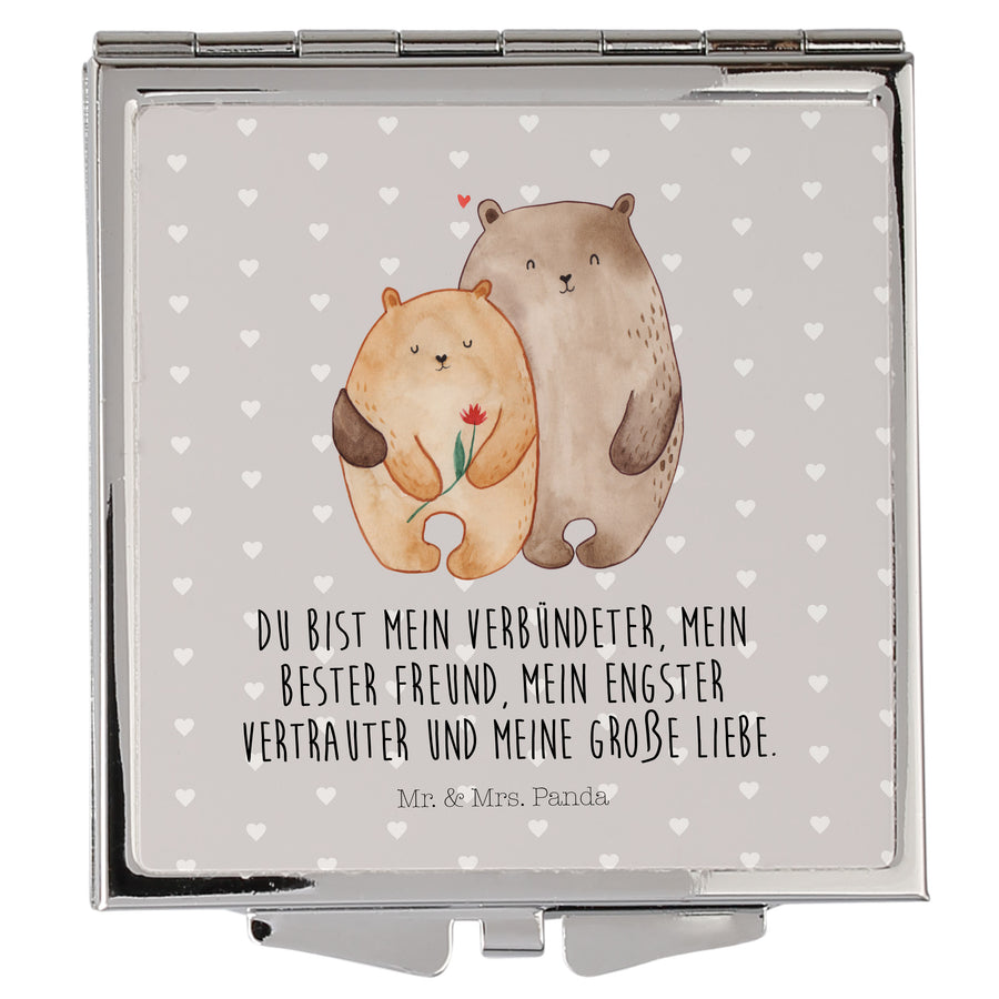 Handtaschenspiegel quadratisch Bären Liebe - mit Spruch - Grau Pastell