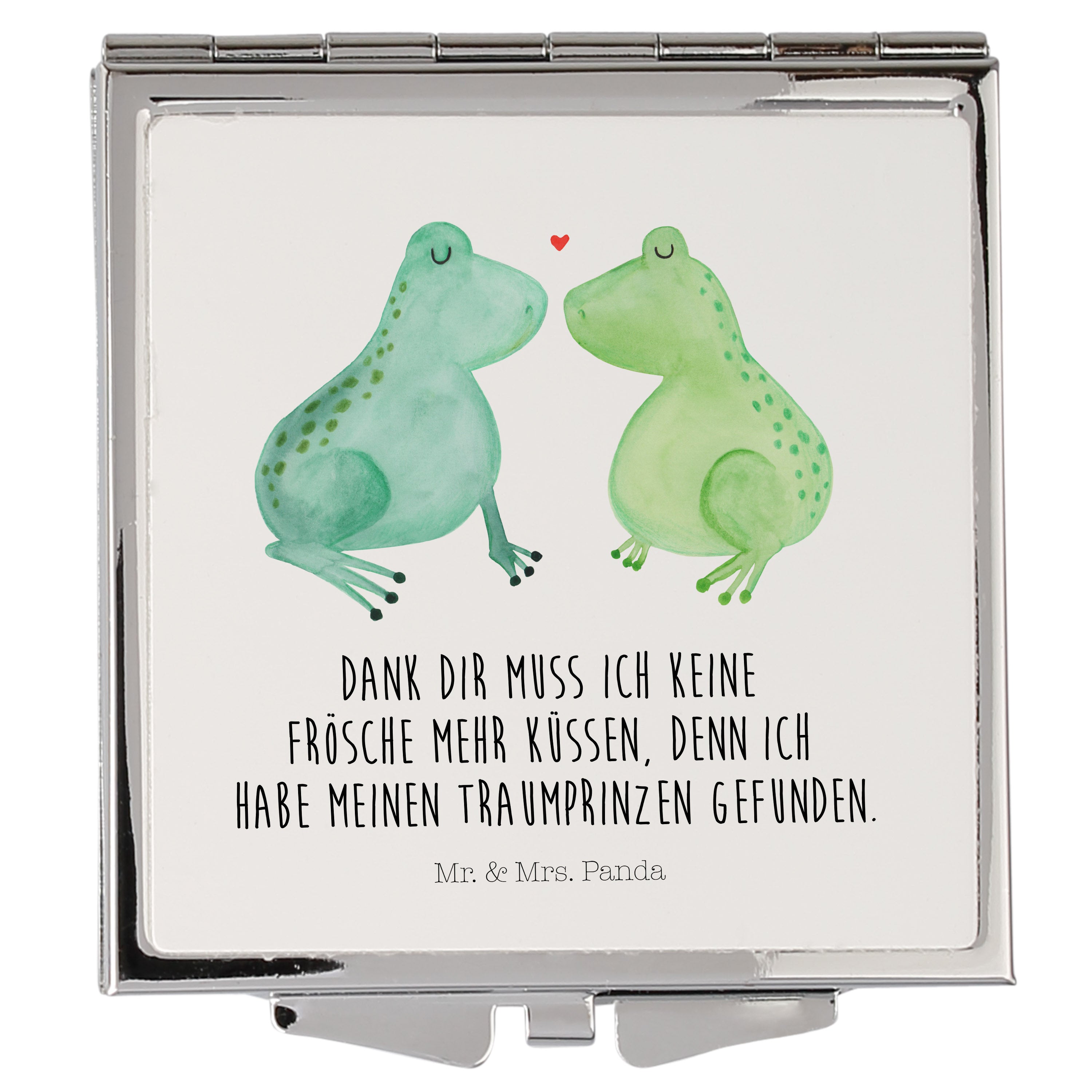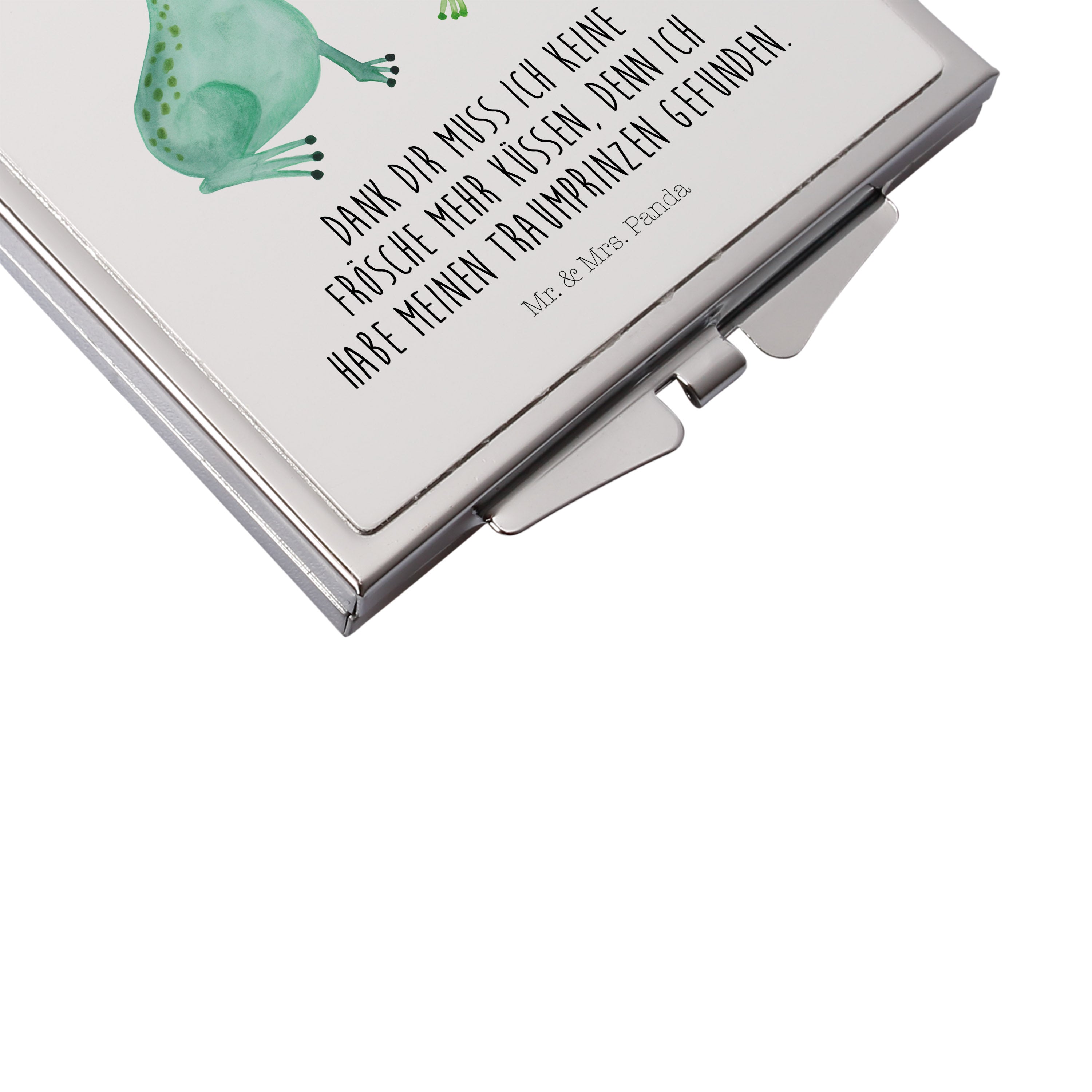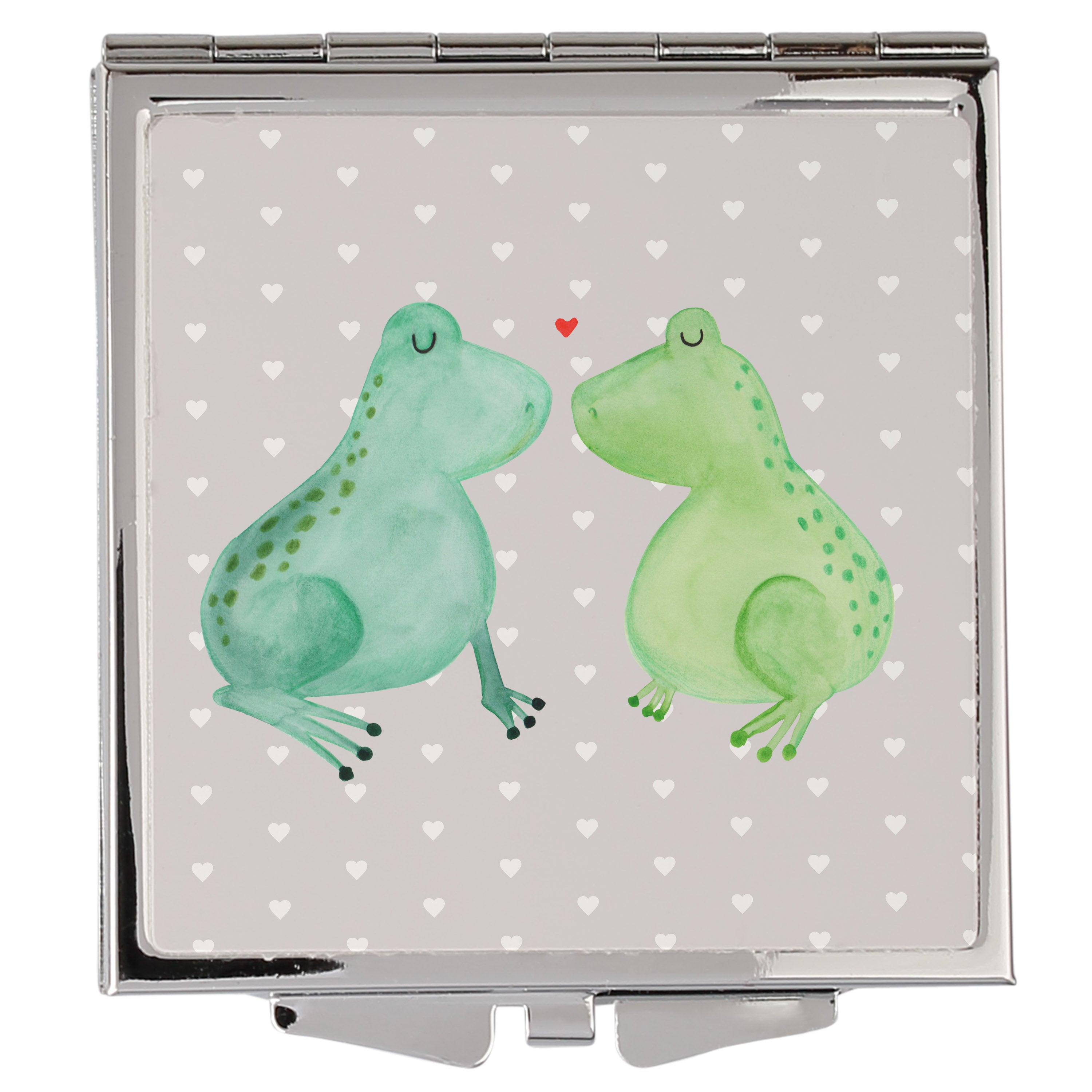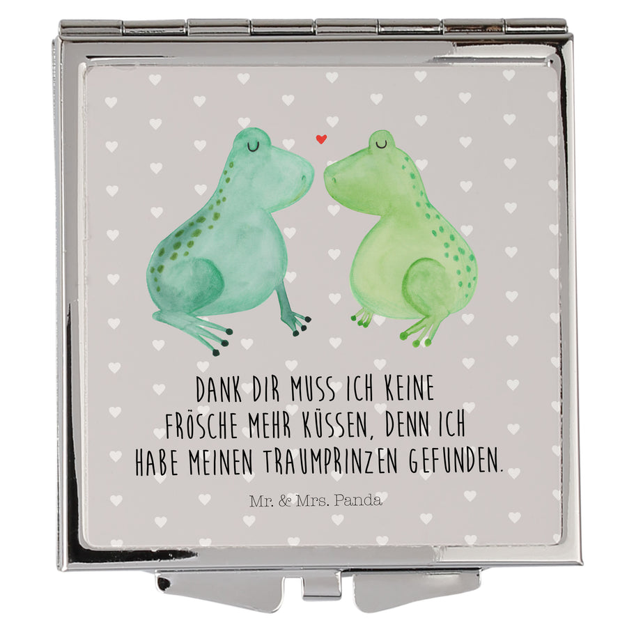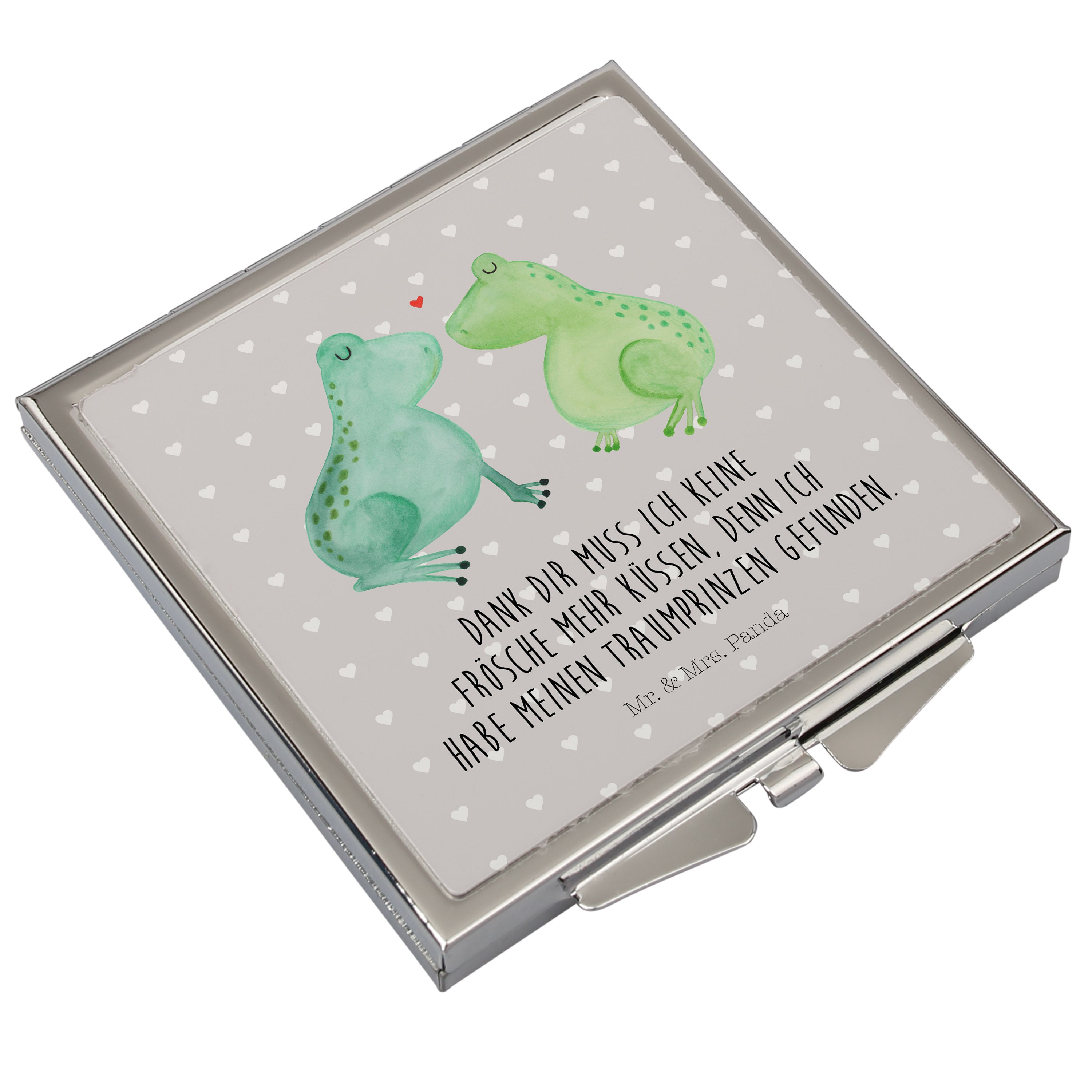Handtaschenspiegel quadratisch Frosch Liebe - mit Spruch - Grau Pastell