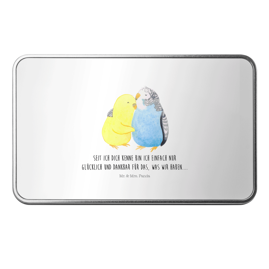 Metalldose rechteckig Wellensittich Liebe - mit Spruch - Weiß