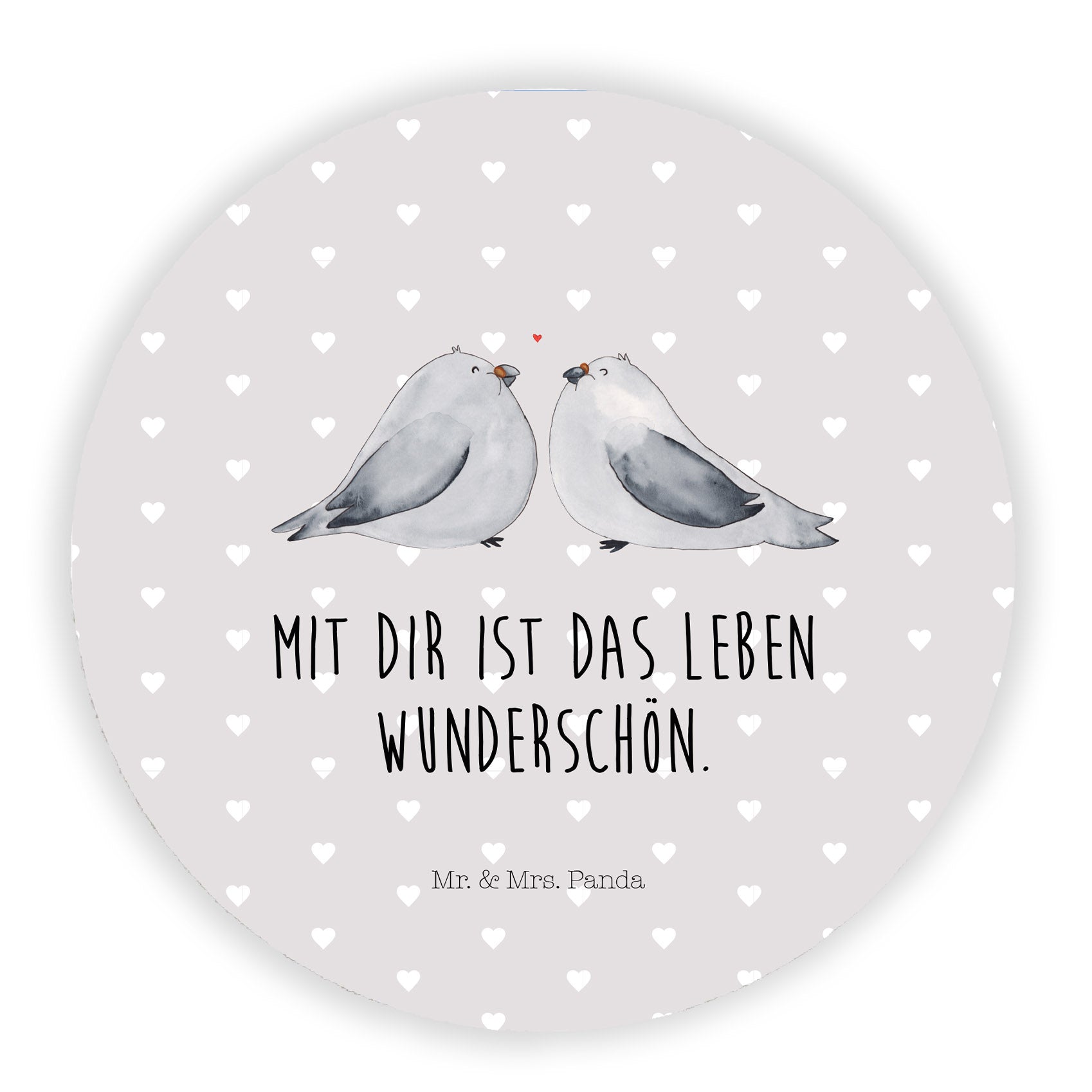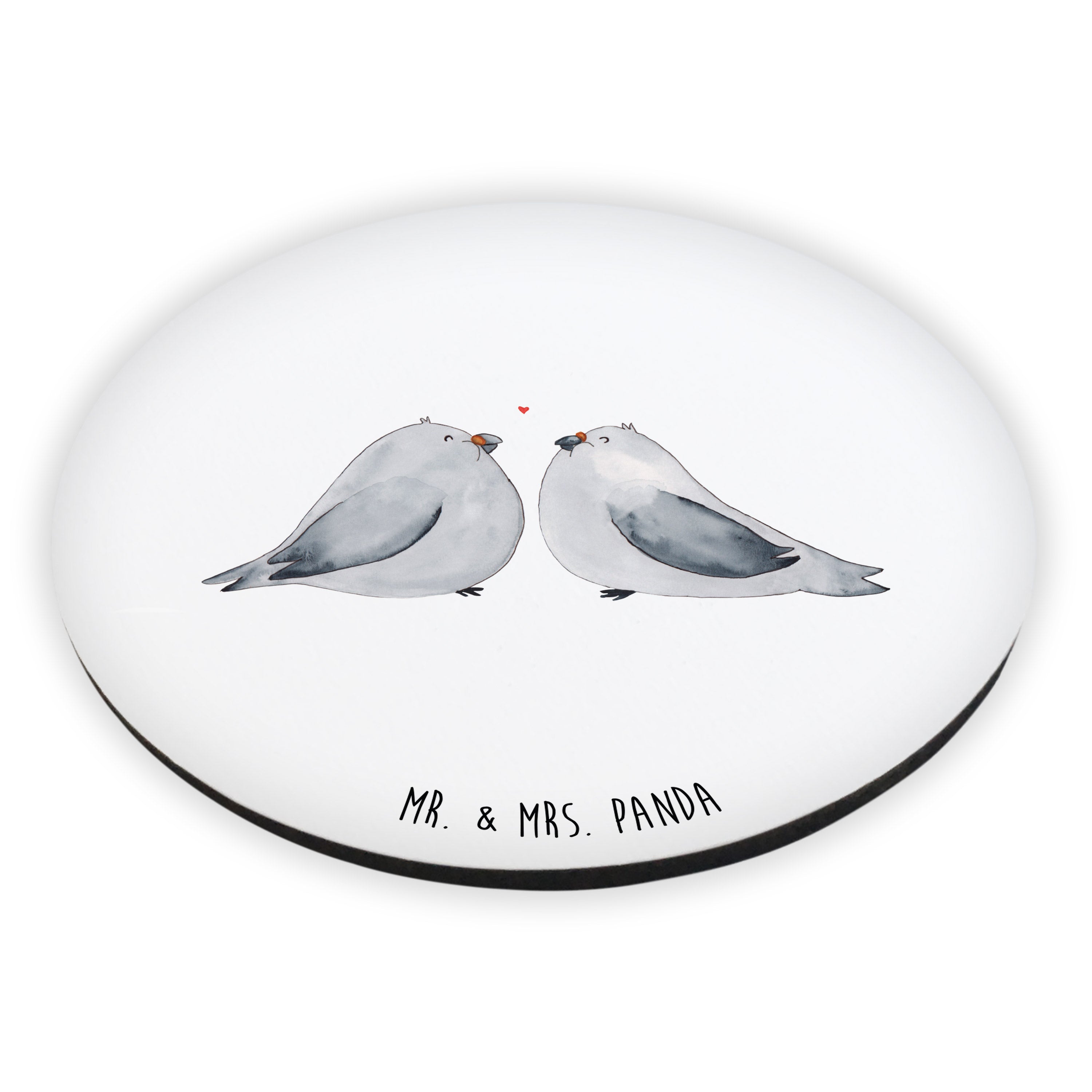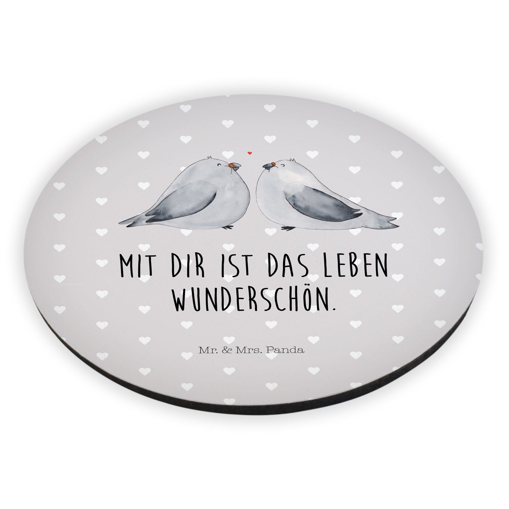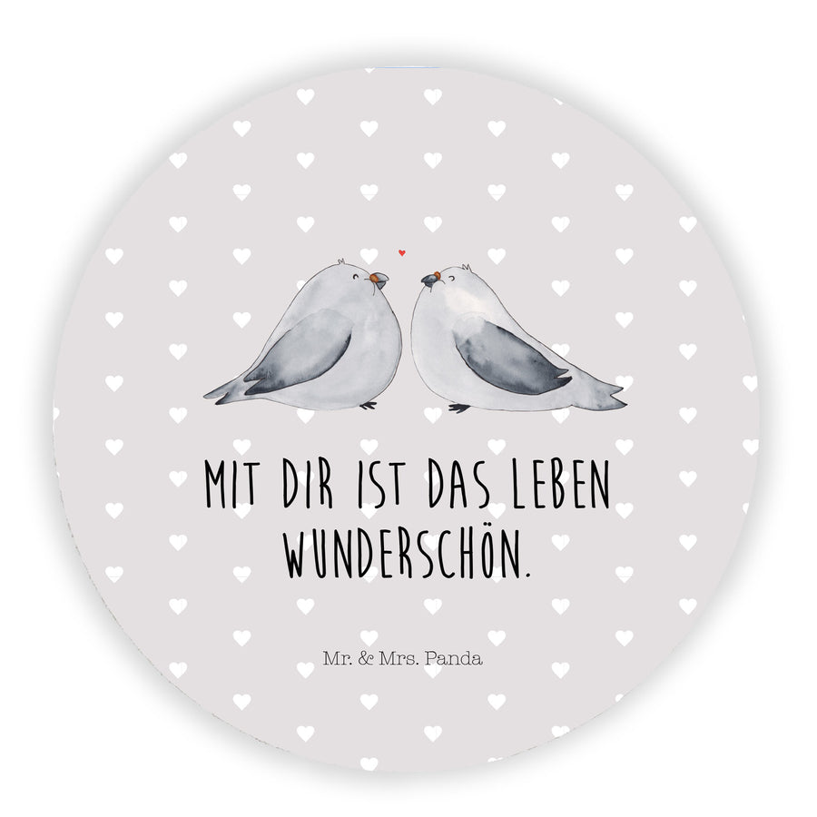 Rund Magnet Turteltauben Liebe - mit Spruch - Grau Pastell