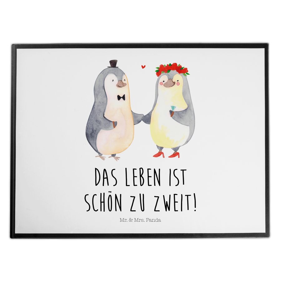 Schreibtischunterlage Pinguin Heirat - mit Spruch - Weiß