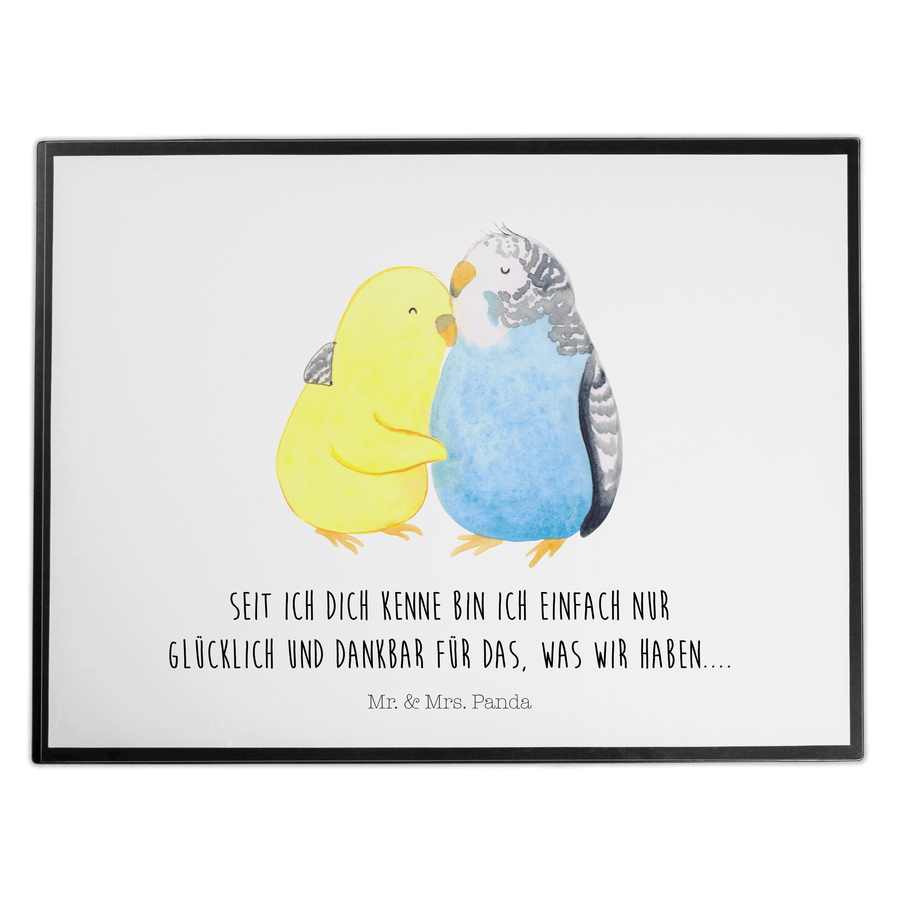 Schreibtischunterlage Wellensittich Liebe - mit Spruch - Weiß