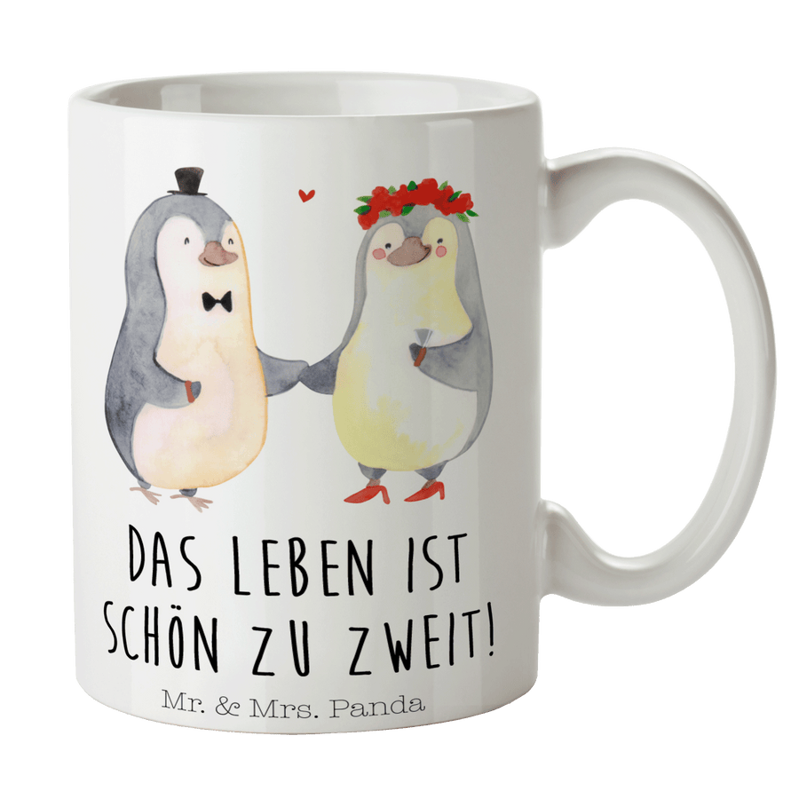 Tasse Pinguin Heirat - mit Spruch - Weiß