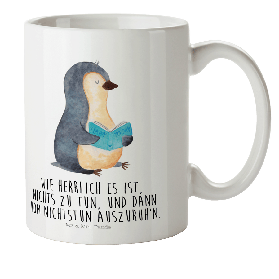 Kindertasse Pinguin Buch - mit Spruch - Weiß