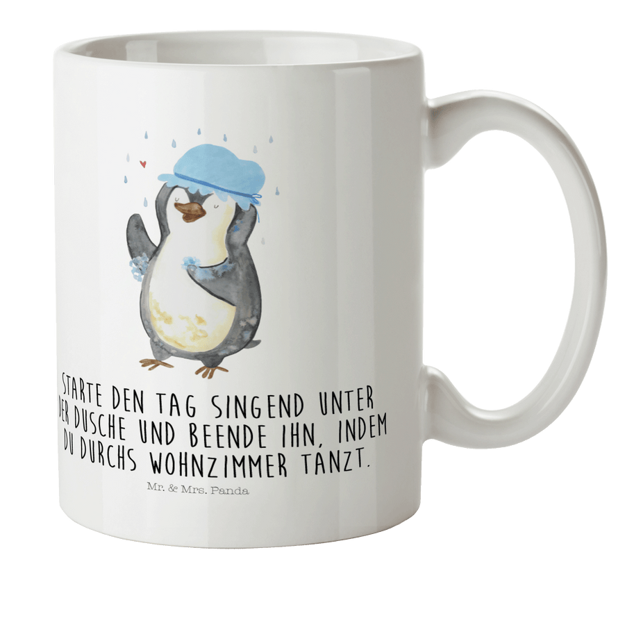 Kindertasse Pinguin duscht - mit Spruch - Weiß