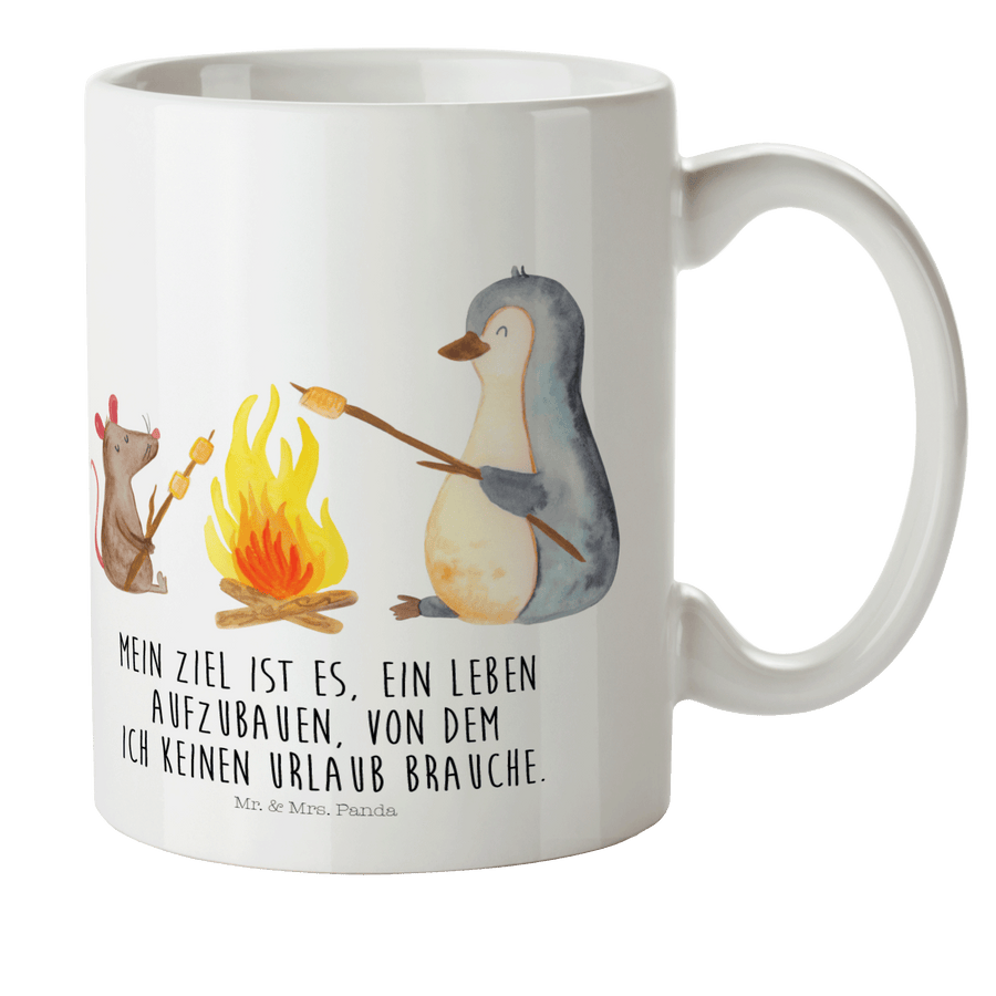 Kindertasse Pinguin Lagerfeuer - mit Spruch - Weiß