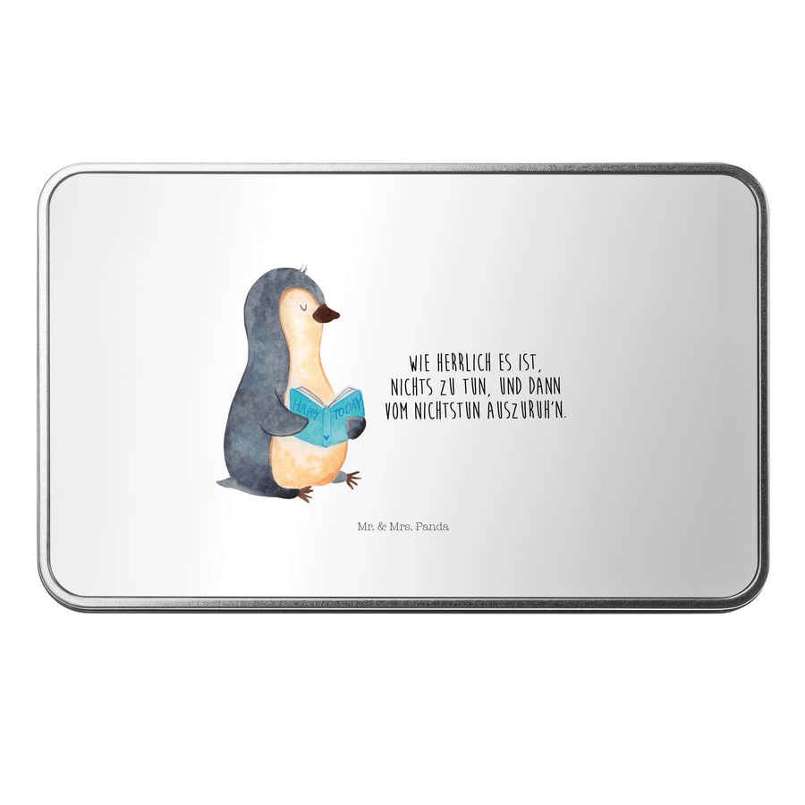 Metalldose rechteckig Pinguin Buch - mit Spruch - Weiß