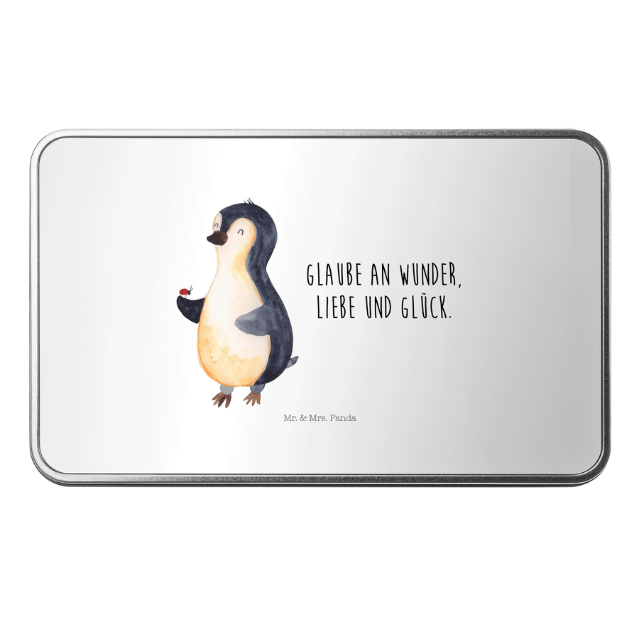 Metalldose rechteckig Pinguin Marienkäfer - mit Spruch - Weiß