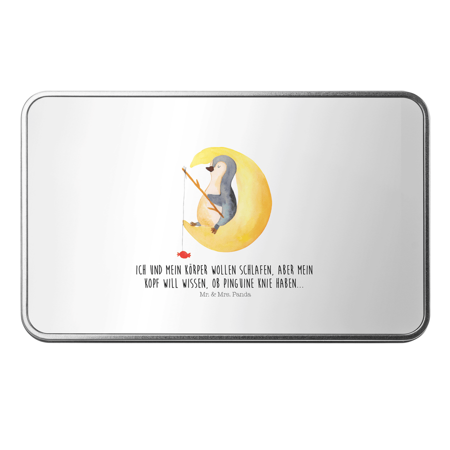 Metalldose rechteckig Pinguin Mond - mit Spruch - Weiß