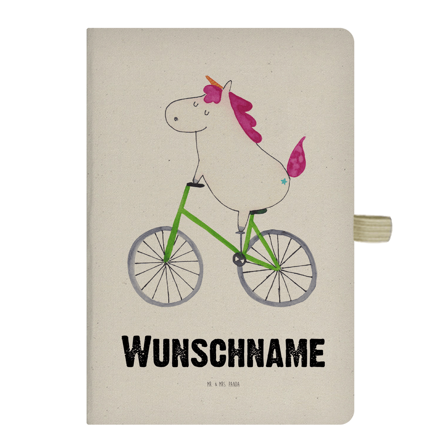 DIN A4 Personalisiertes Notizbuch Einhorn Radfahrer