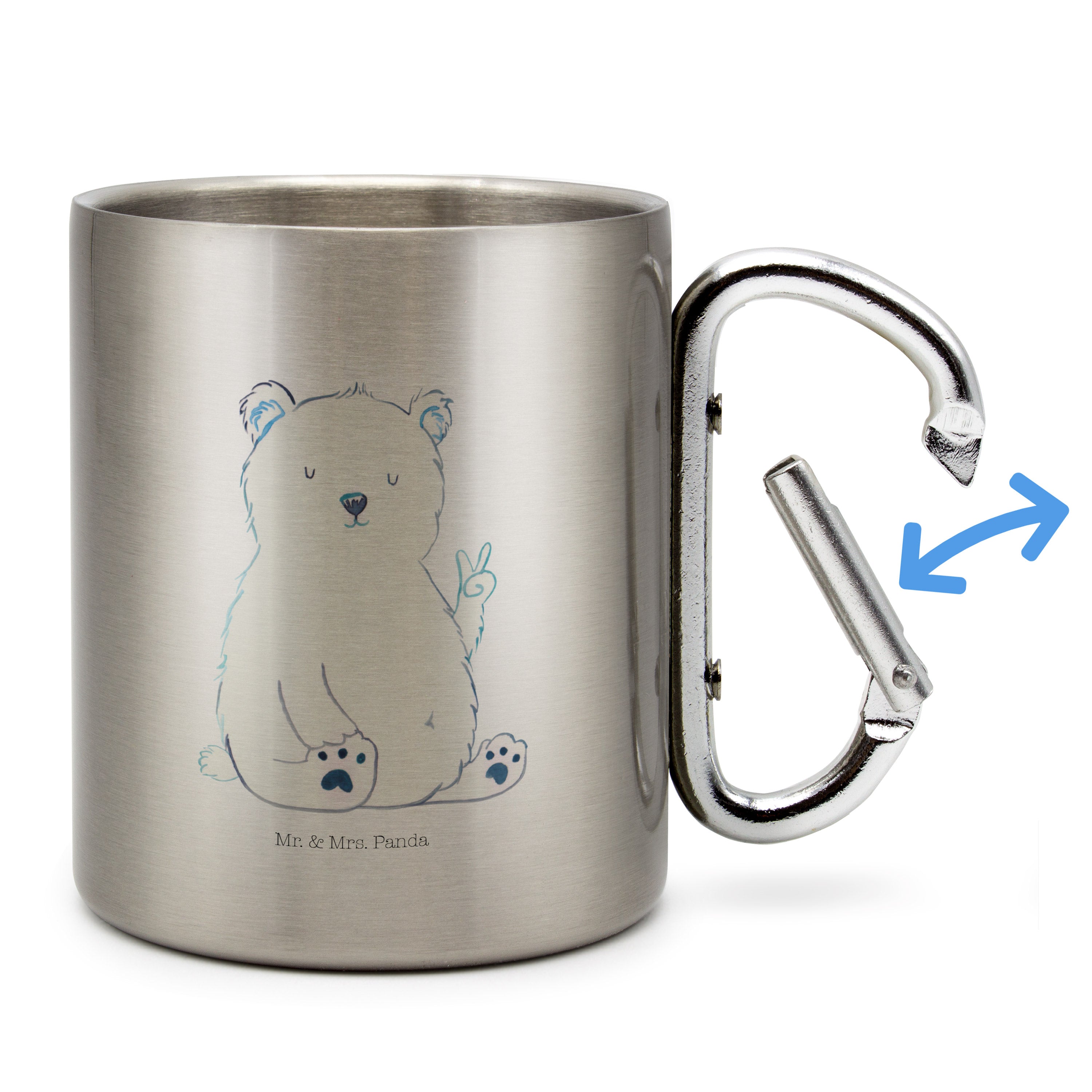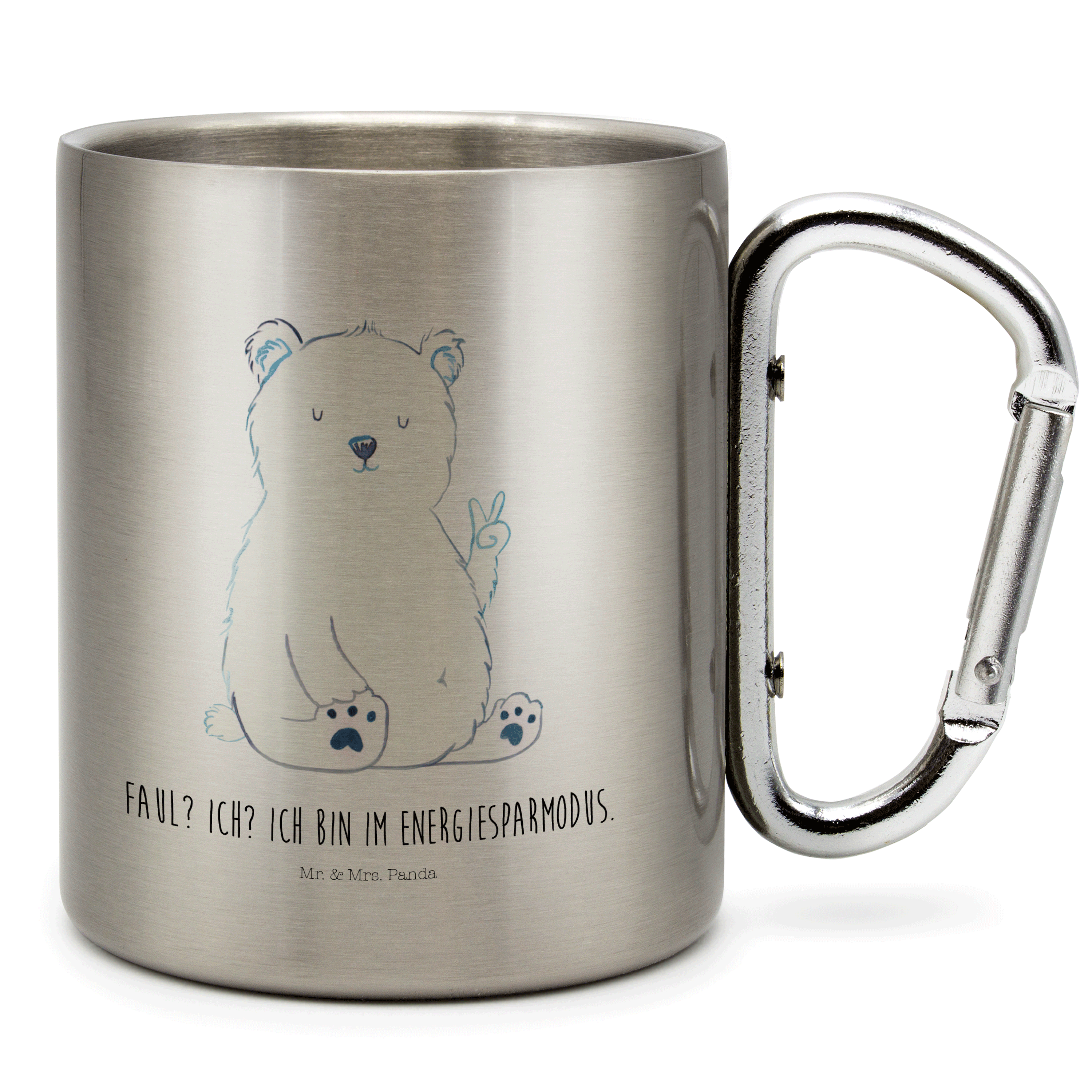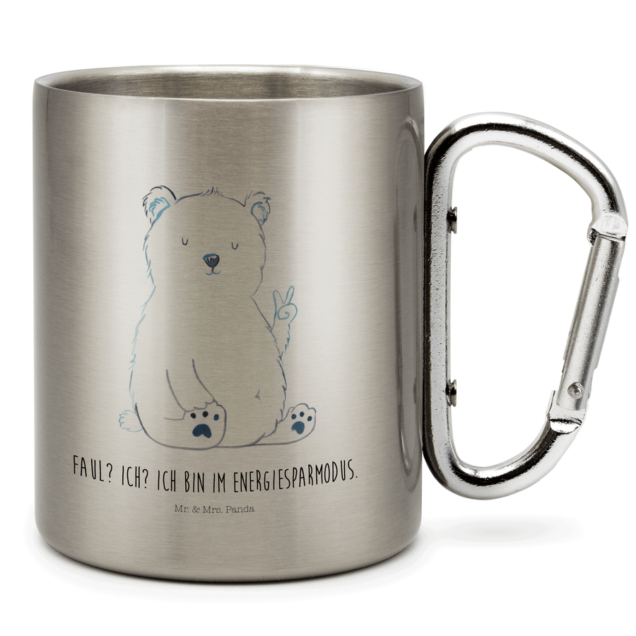 Edelstahlbecher Eisbär Faul Edelstahltasse, Karabiner, Edelstahlbecher, Outdoor, Camping, Tasse, Becher, Bär, Teddy, Teddybär, Eisbär, Nordpol, Faul, Entspannen, Relaxen, Büro, Arbeit, Bürojob, Arbeitsplatz, Homeoffice