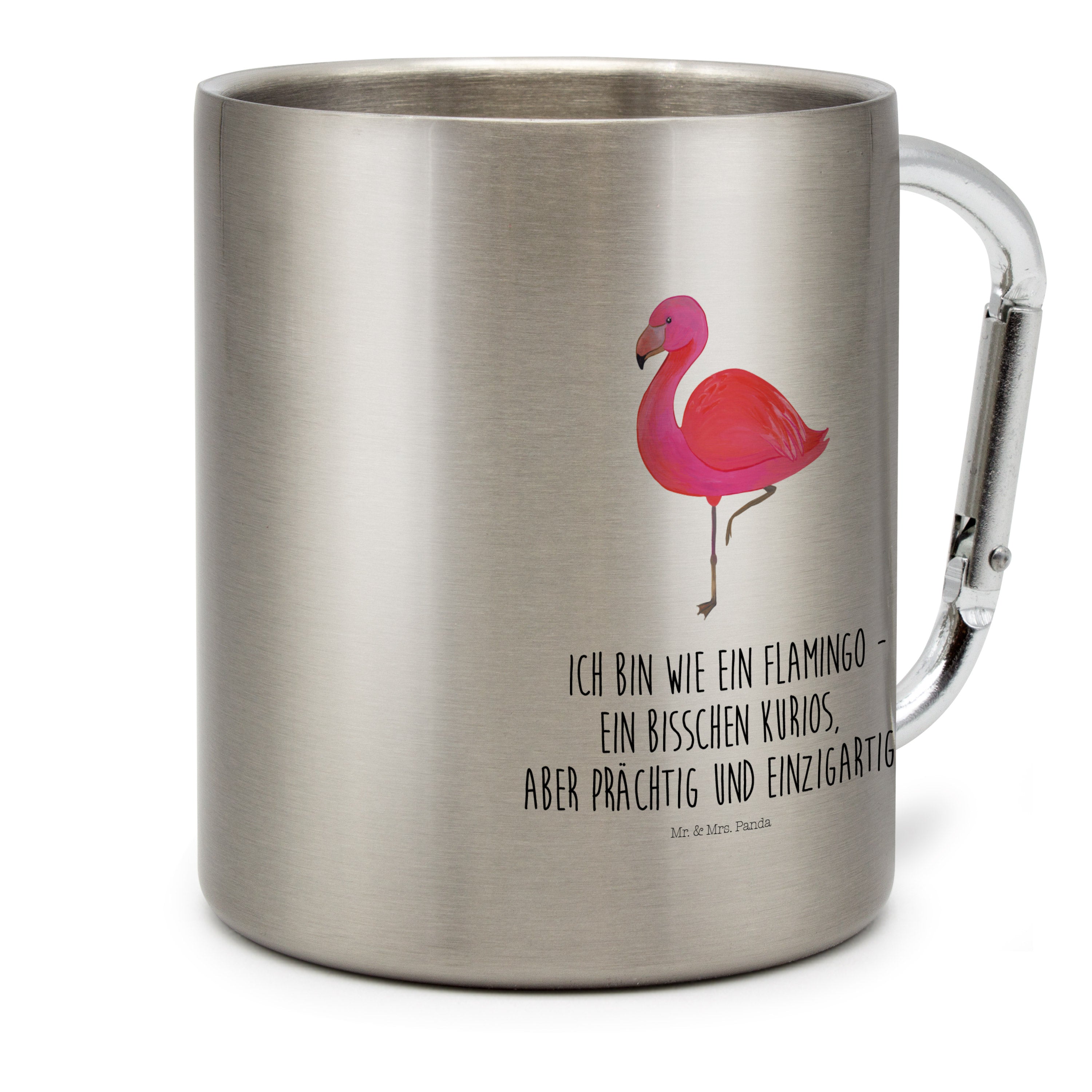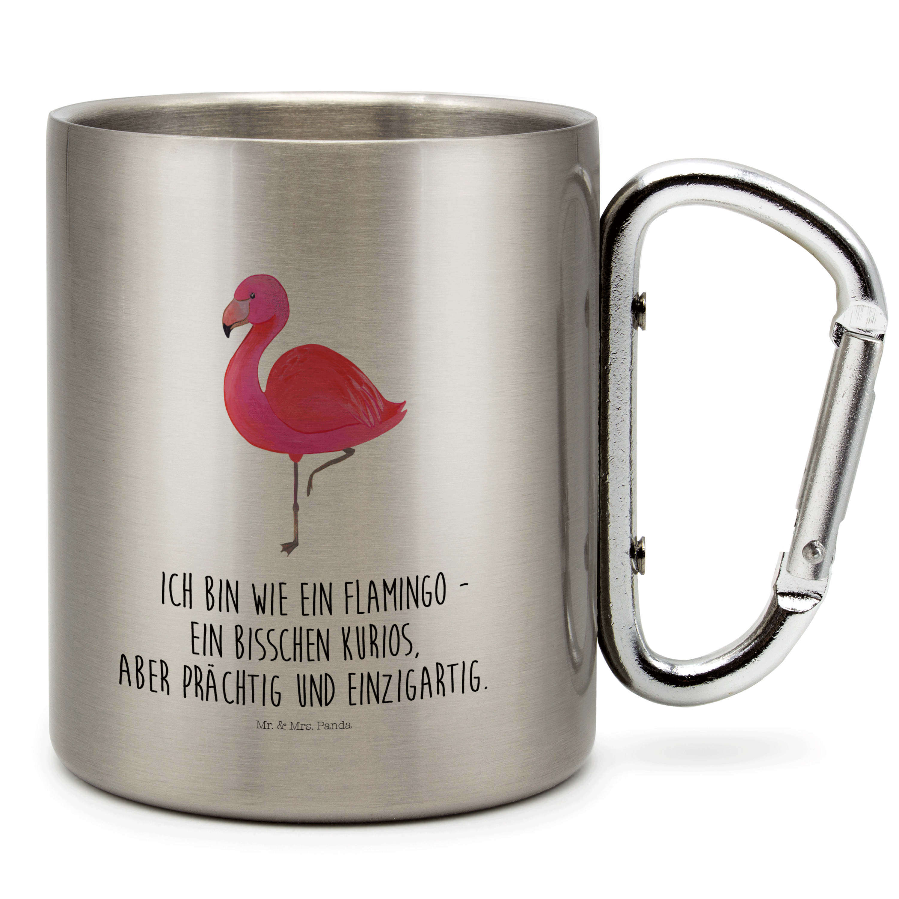 Edelstahlbecher Flamingo classic Edelstahltasse, Karabiner, Edelstahlbecher, Outdoor, Camping, Tasse, Becher, Flamingo, Einzigartig, Selbstliebe, Stolz, ich, für mich, Spruch, Freundin, Freundinnen, Außenseiter, Sohn, Tochter, Geschwister