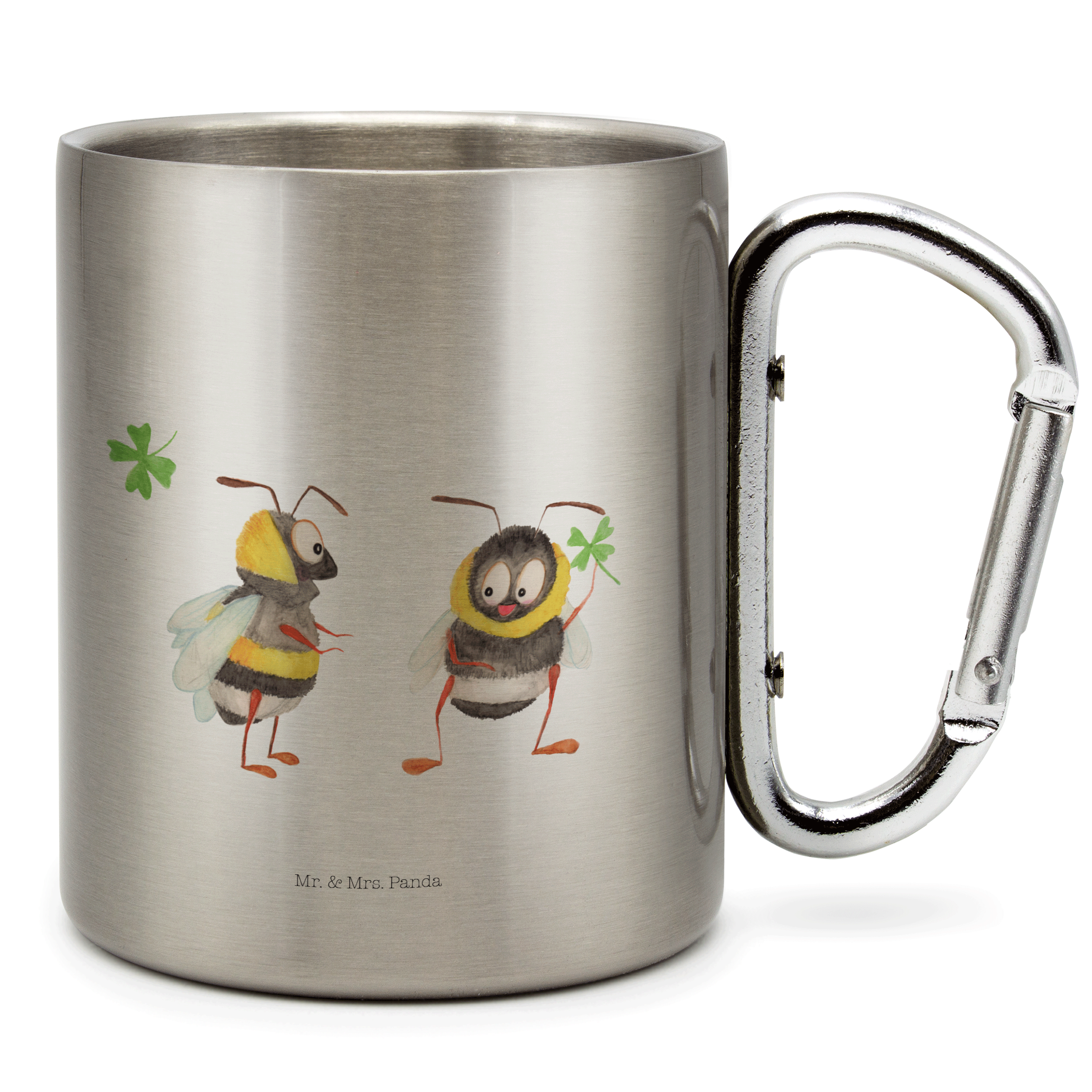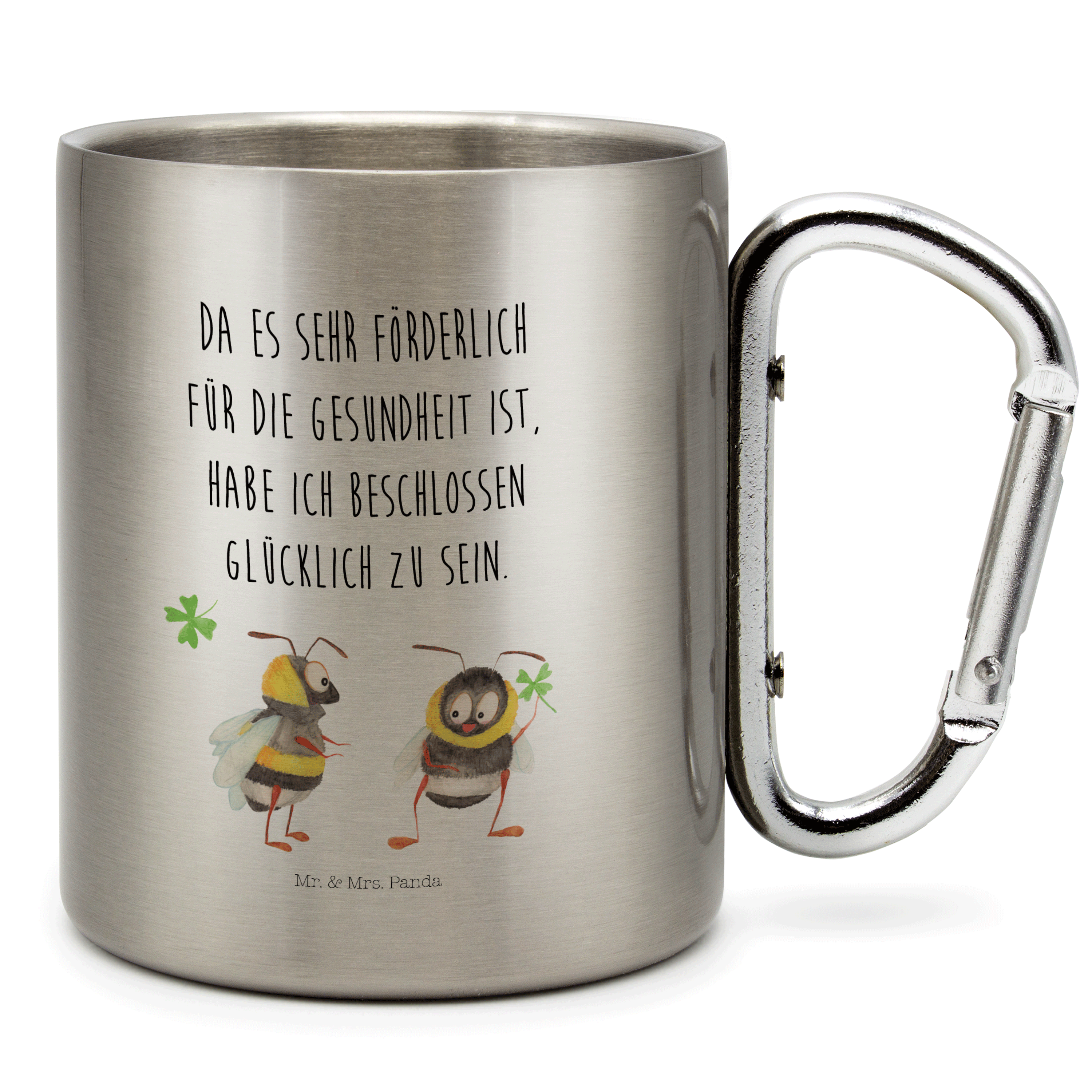 Edelstahlbecher Hummeln mit Kleeblatt - mit Spruch