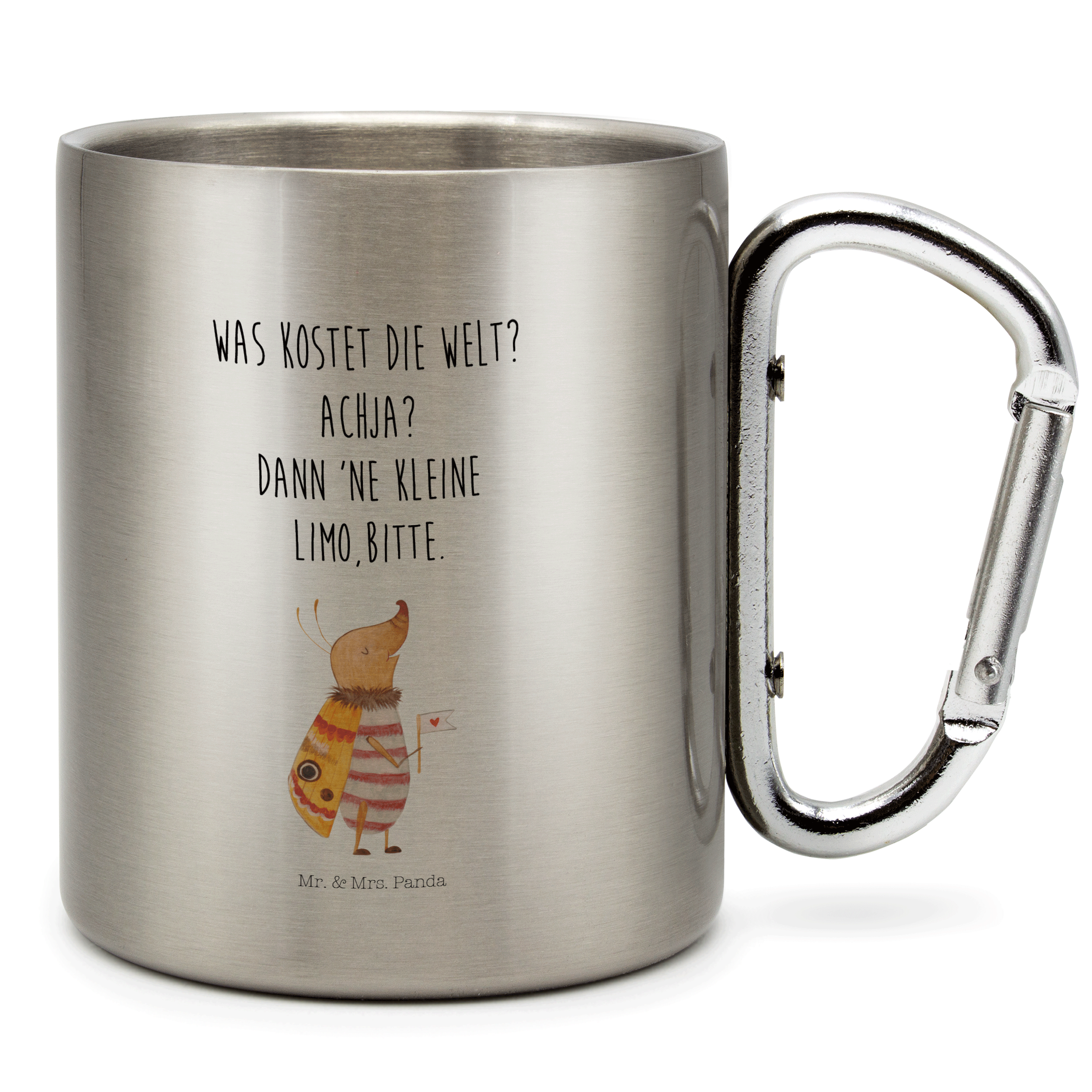 Edelstahlbecher Nachtfalter mit Fähnchen - mit Spruch