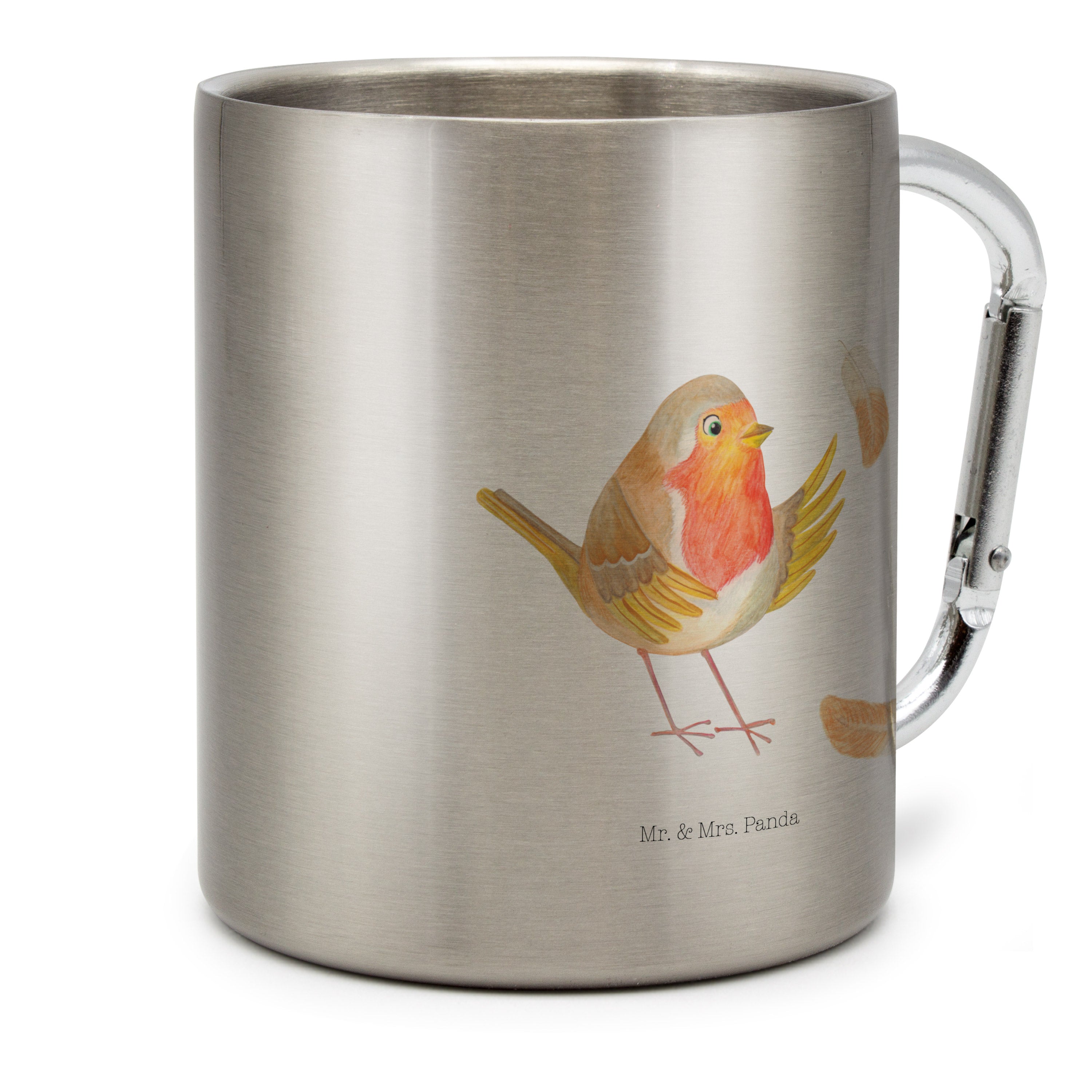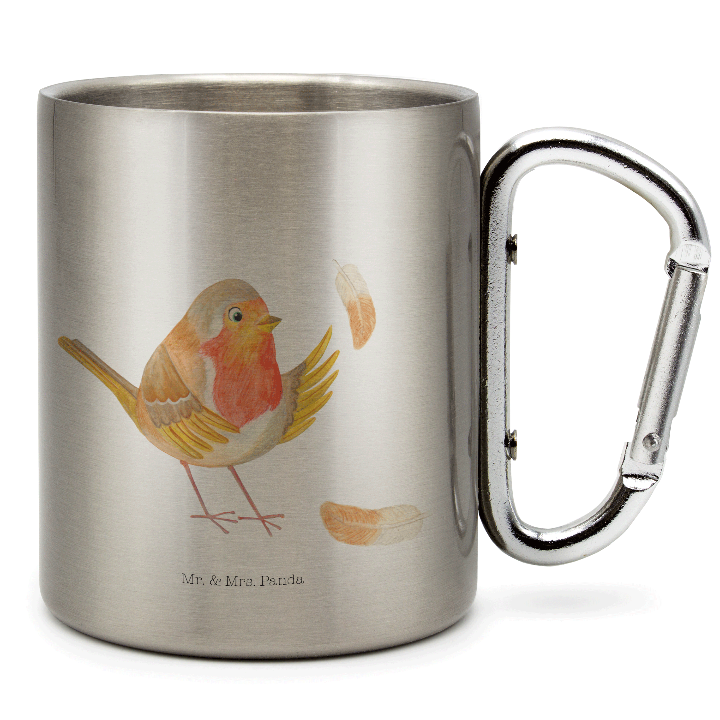 Edelstahlbecher Rotkehlchen mit Federn - mit Spruch