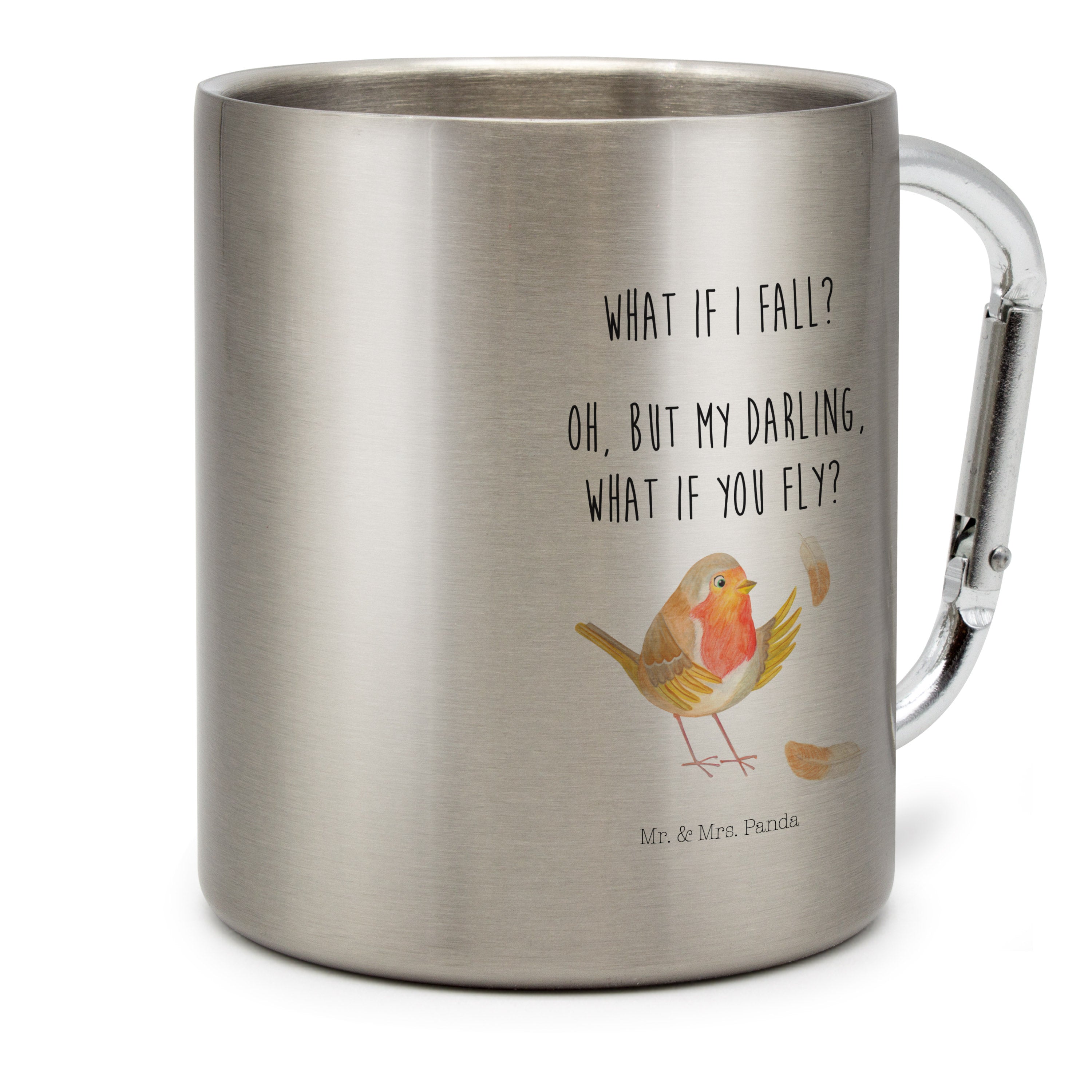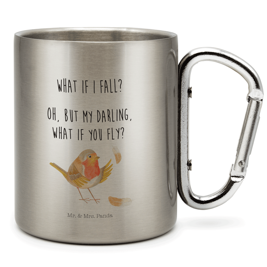 Edelstahlbecher Rotkehlchen mit Federn Edelstahltasse, Karabiner, Edelstahlbecher, Outdoor, Camping, Tasse, Becher, Tiermotive, Gute Laune, lustige Sprüche, Tiere, What if i fall, Rotkehlchen, Spruch Motivation, Spruch Mut, Vogel, Motivation Sprüche, Motivationsbilder, fliegen