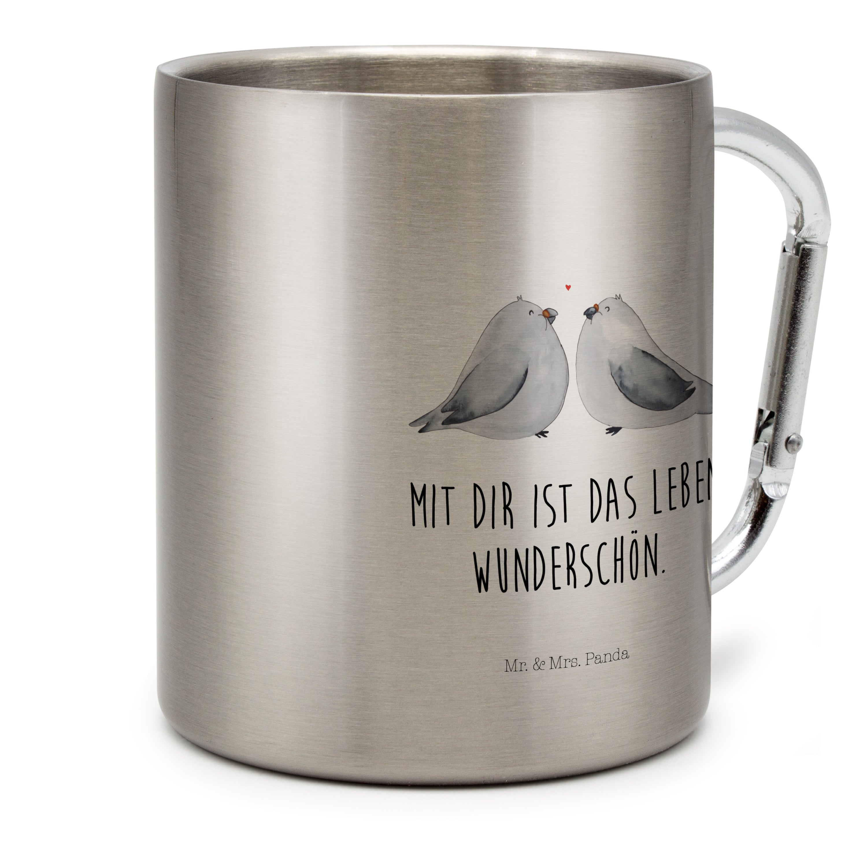 Edelstahlbecher Turteltauben Liebe - mit Spruch