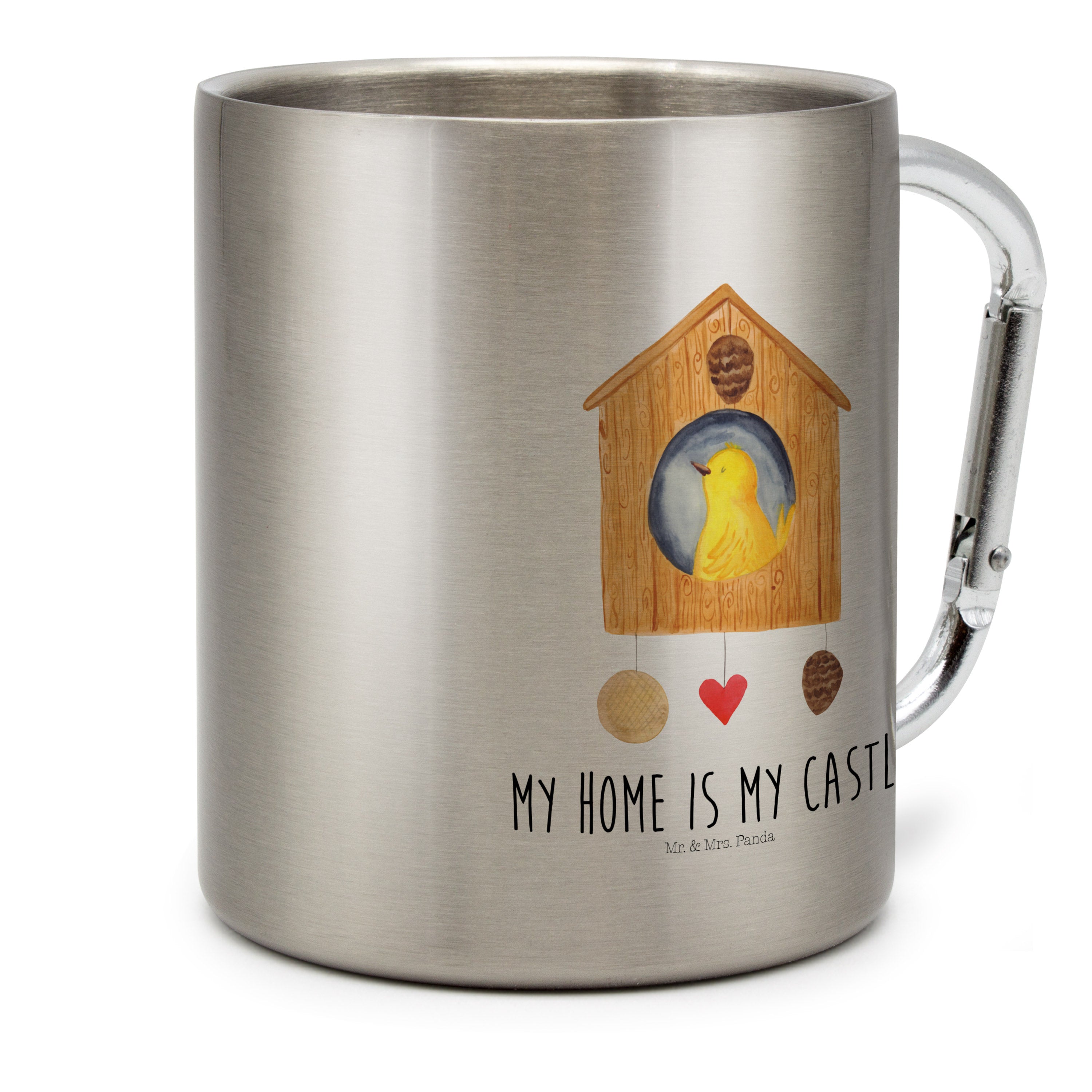 Edelstahlbecher Vogelhaus - mit Spruch