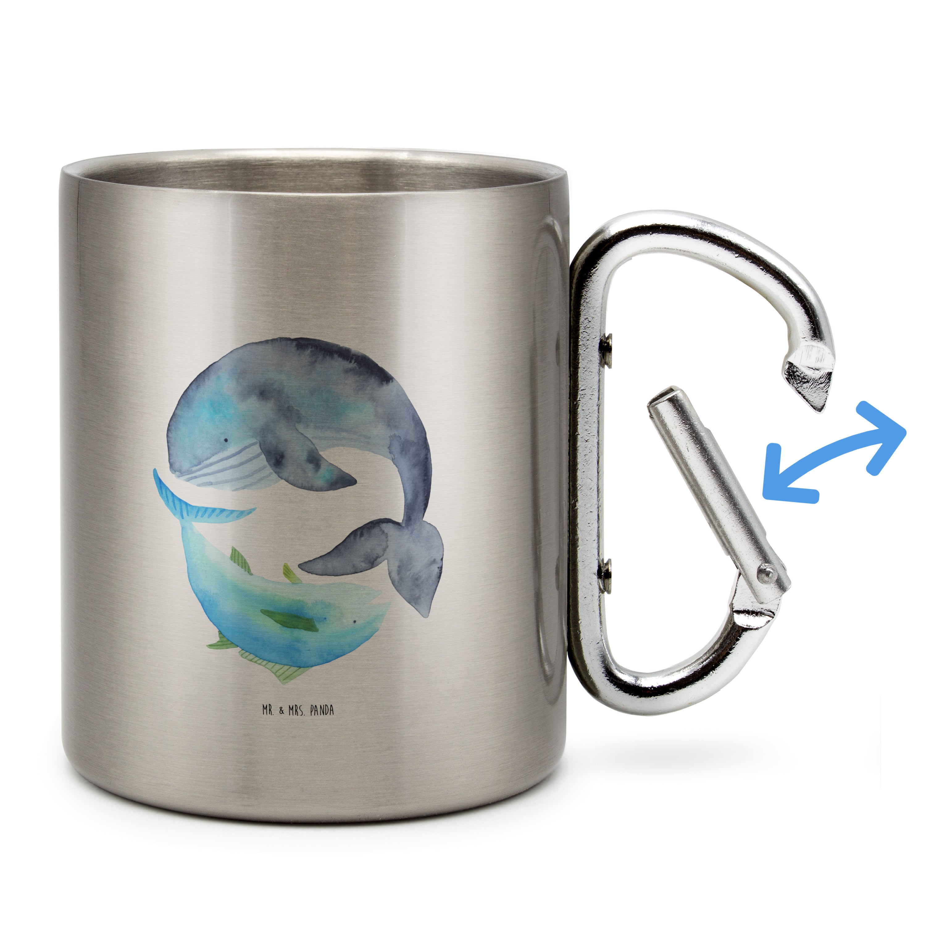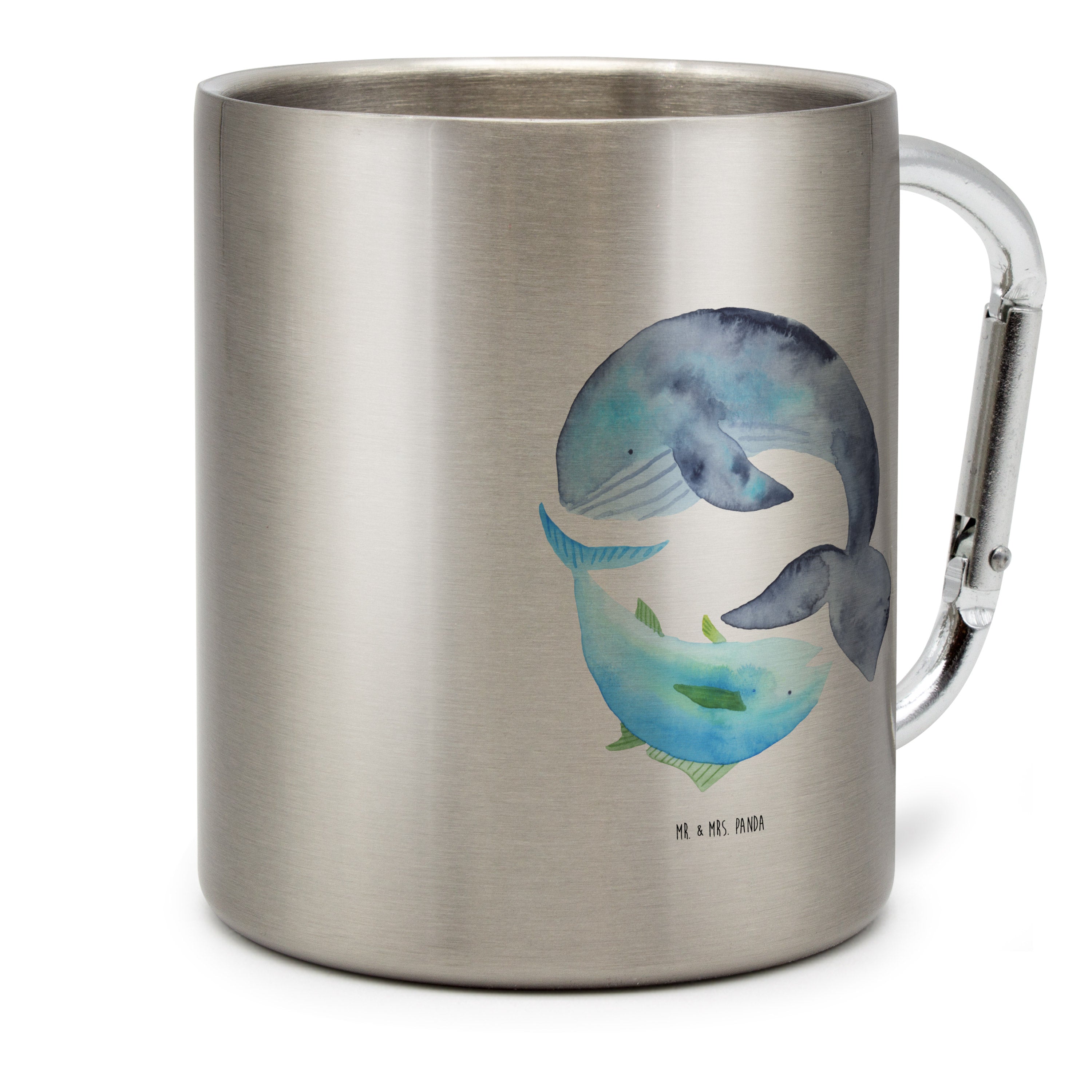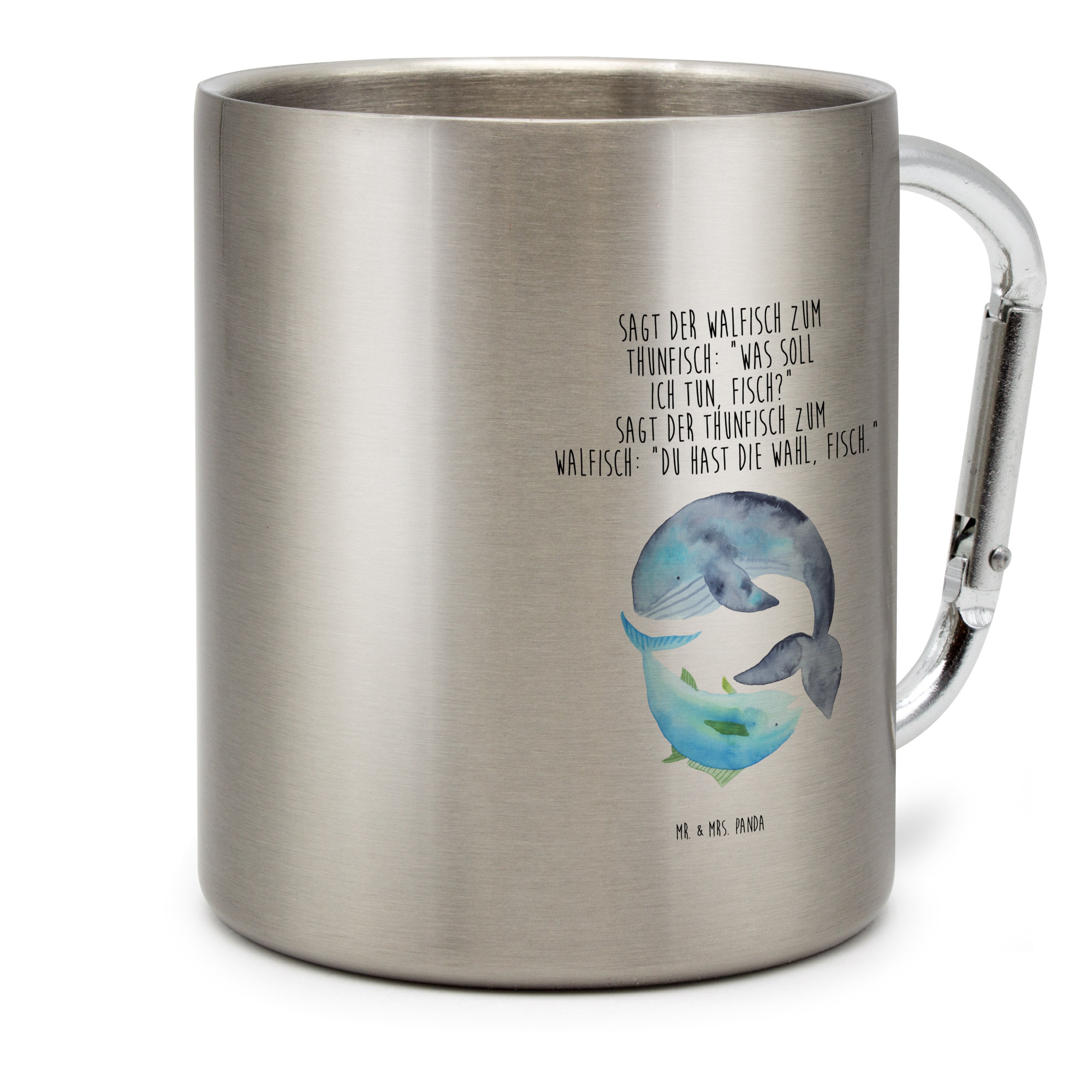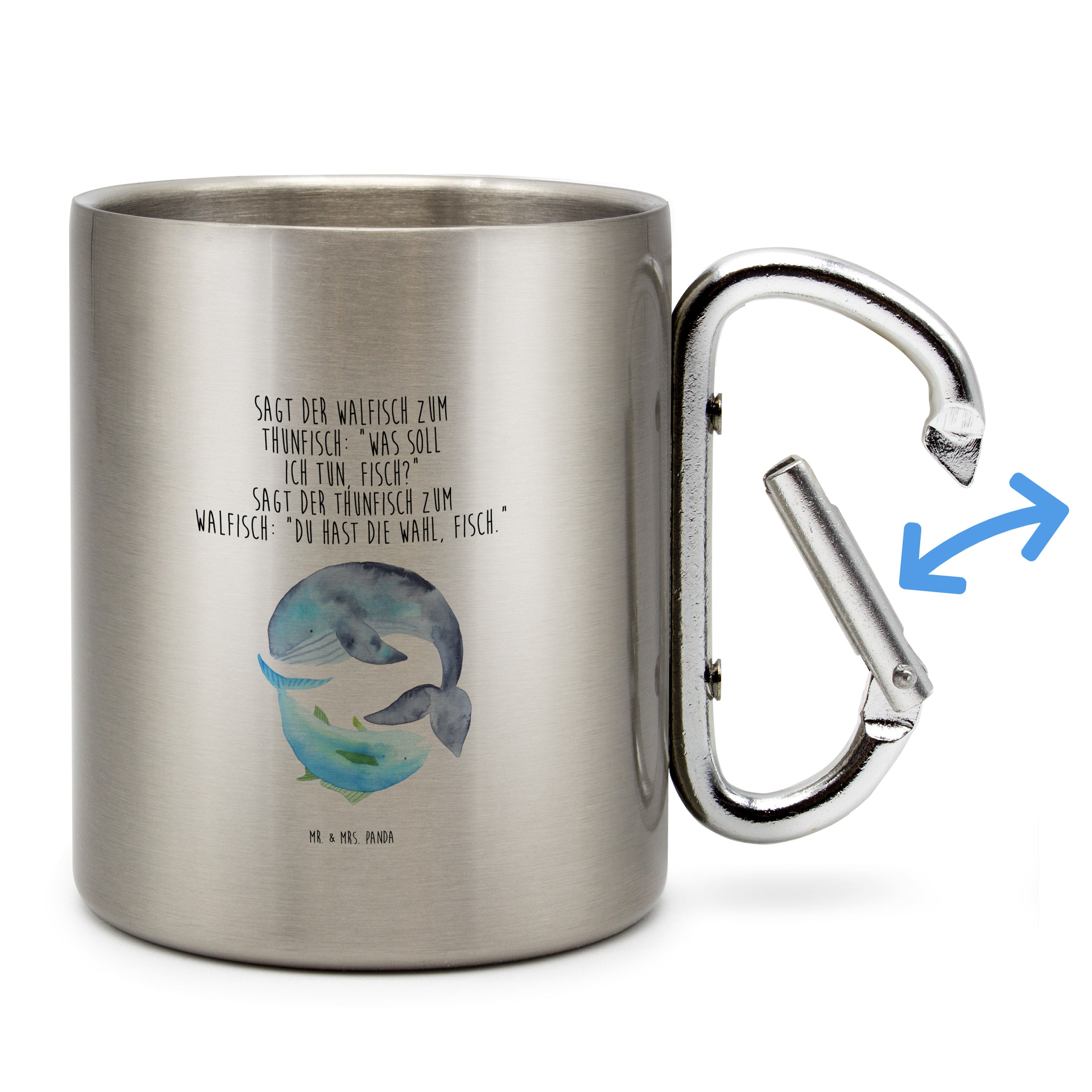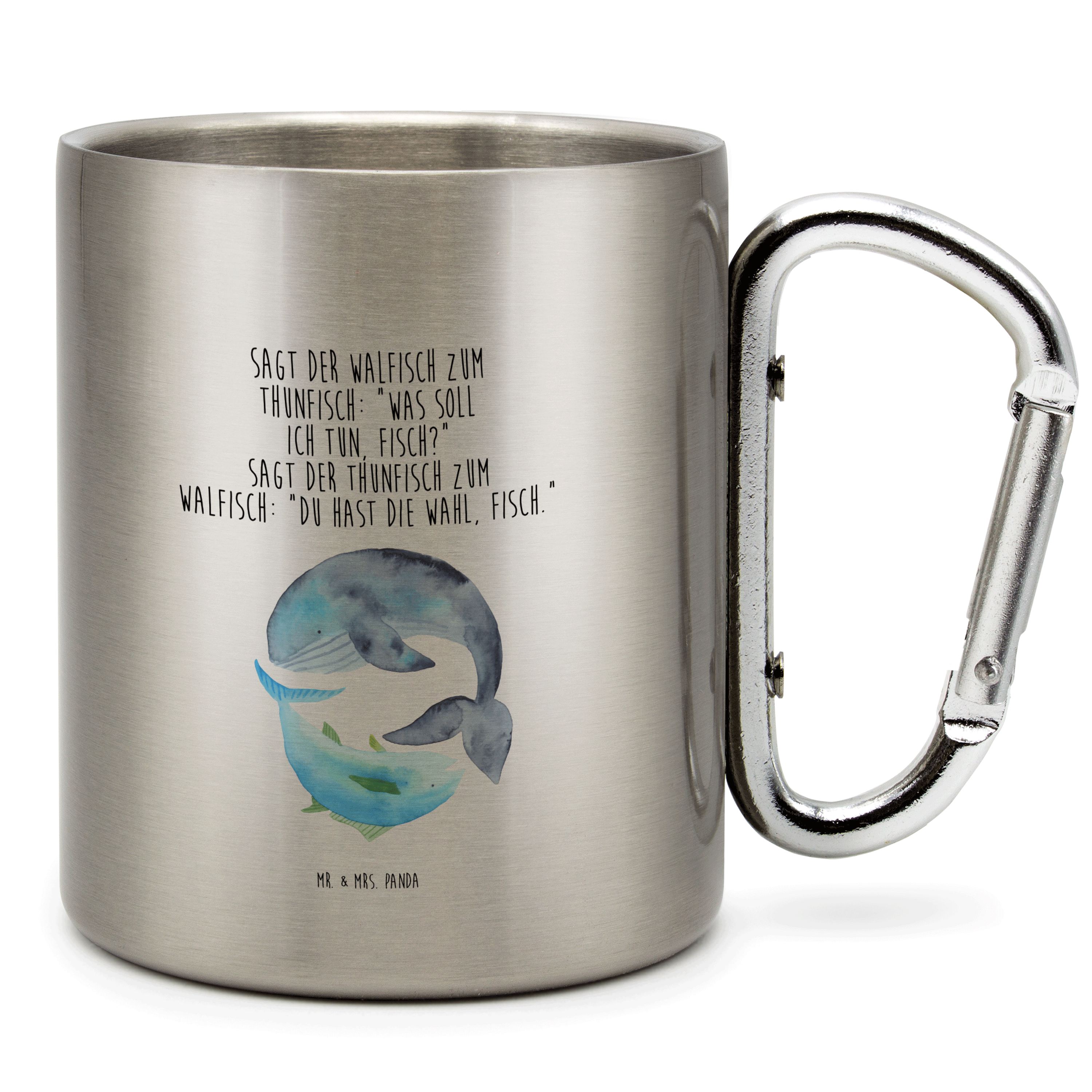 Edelstahlbecher Walfisch & Thunfisch Edelstahltasse, Karabiner, Edelstahlbecher, Outdoor, Camping, Tasse, Becher, Tiermotive, Gute Laune, lustige Sprüche, Tiere, Wal, Wahl, Tunfisch, Wortwitz lustig, Spruch lustig, Flachwitz, Witz, Spruch des Tages, Flachwitz Geschenk