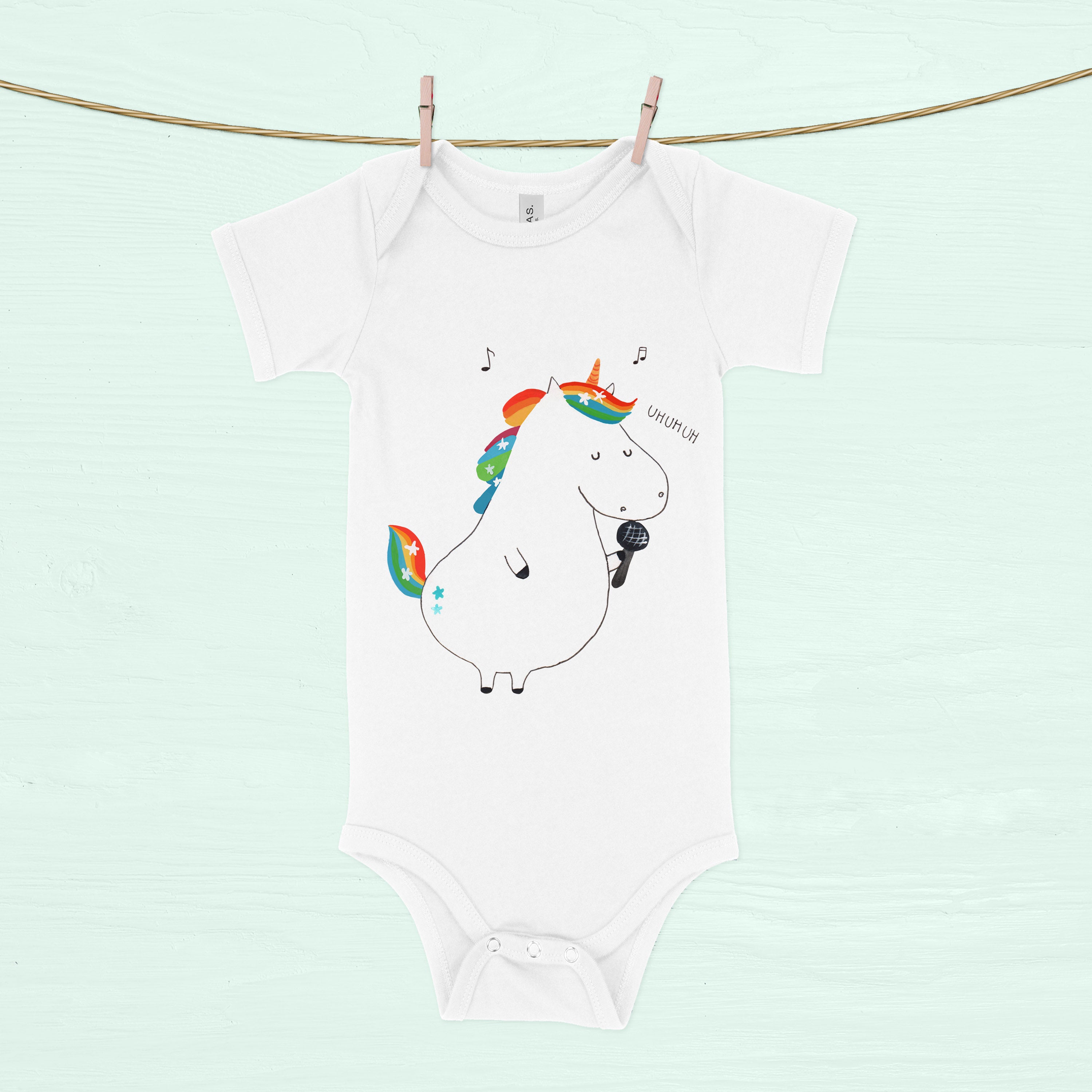 Organic Baby Body Einhorn Sänger - 1. - 3. Monat - mit Spruch - Heather Grey