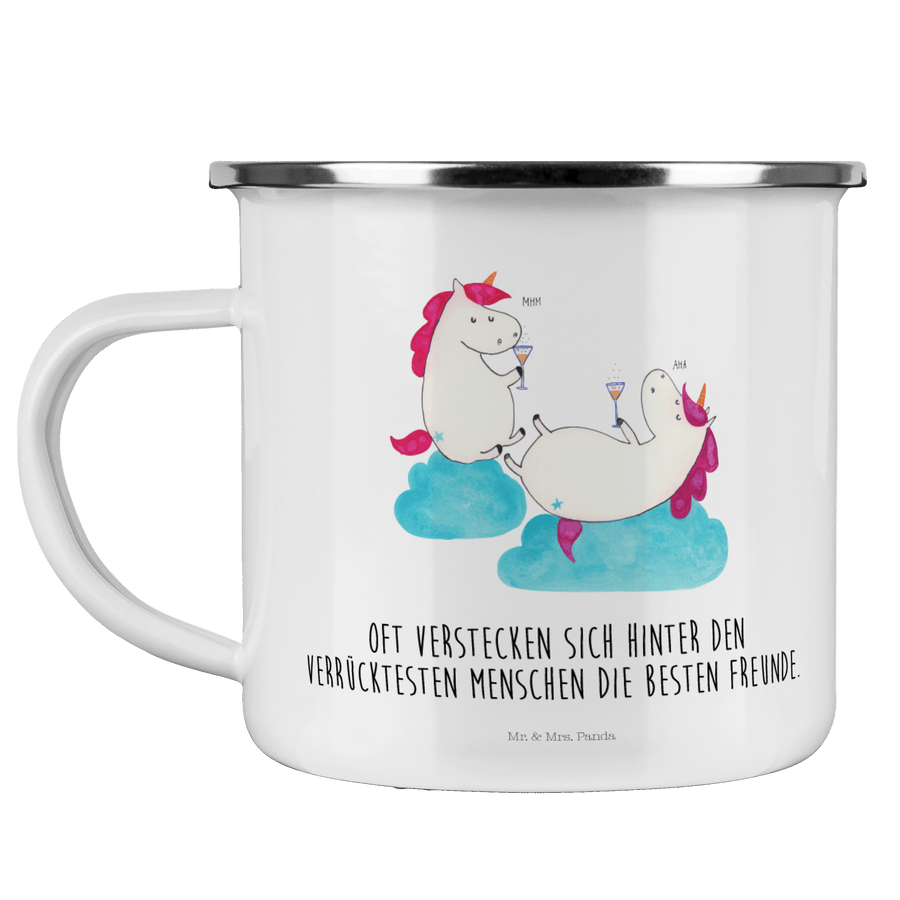 Camping Emaille Tasse Einhörner Sekt - mit Spruch - Weiß