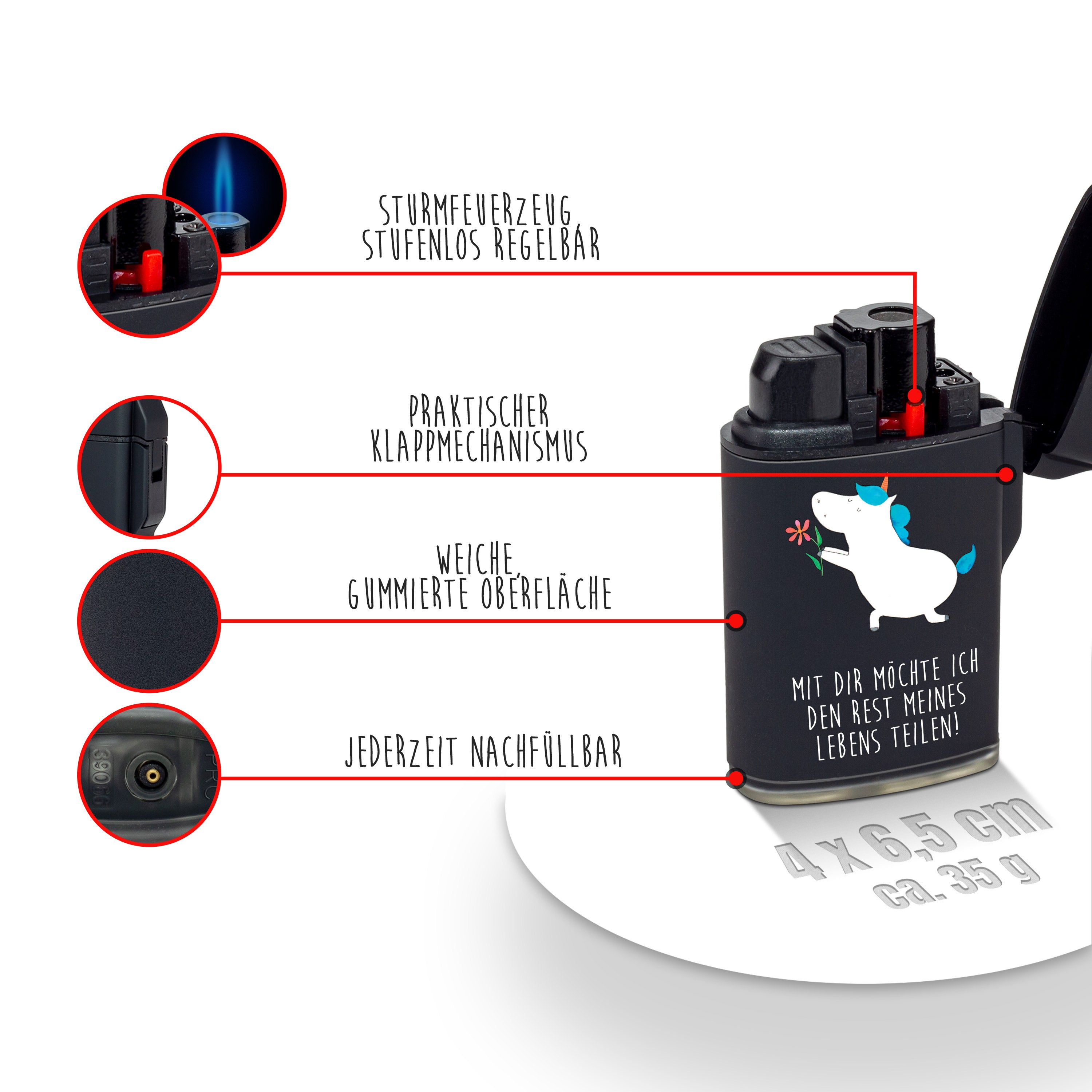 Feuerzeug Einhorn Blume - mit Spruch