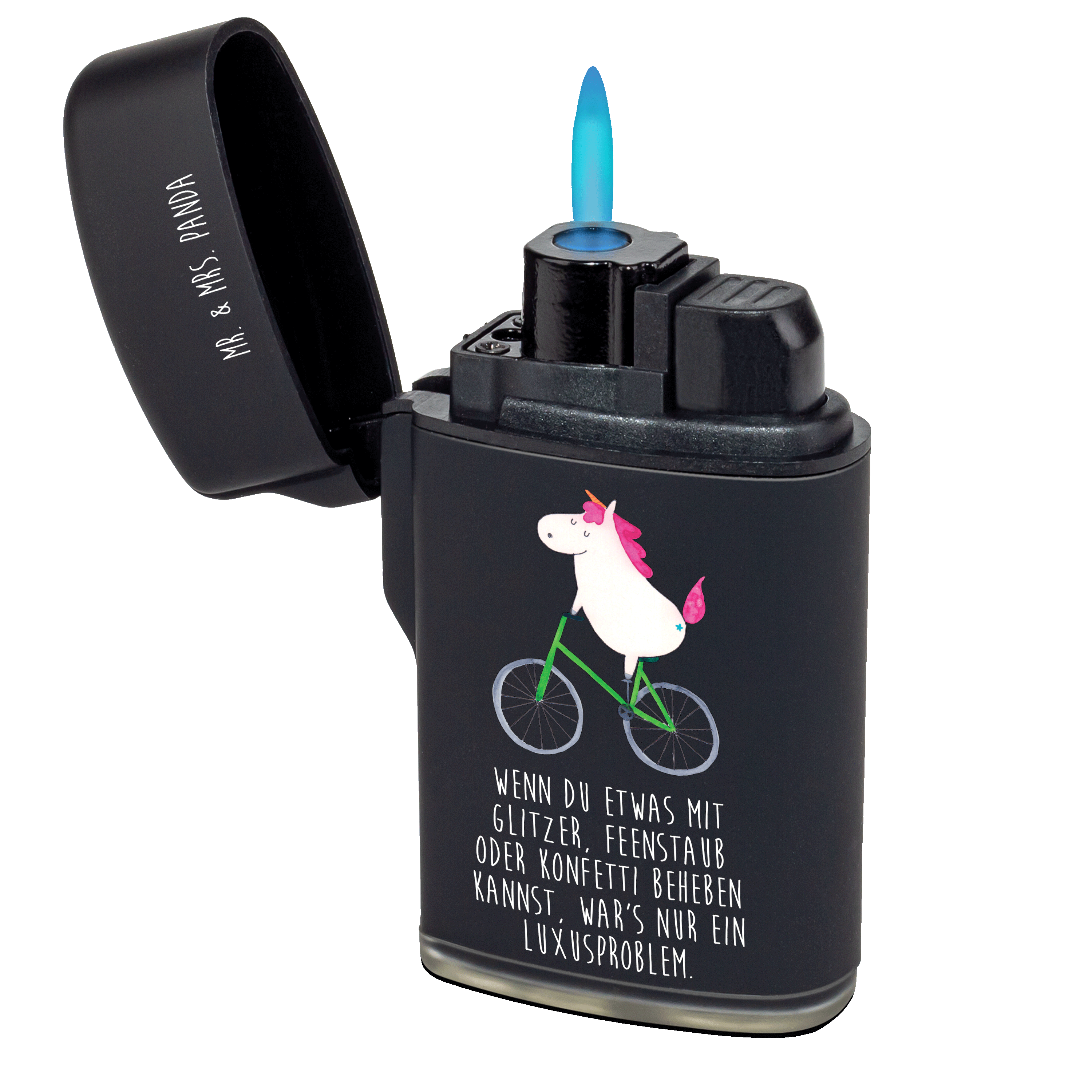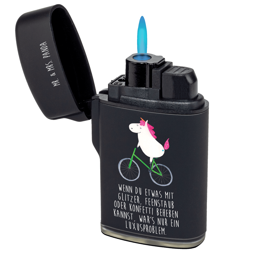 Feuerzeug Einhorn Radfahrer - mit Spruch